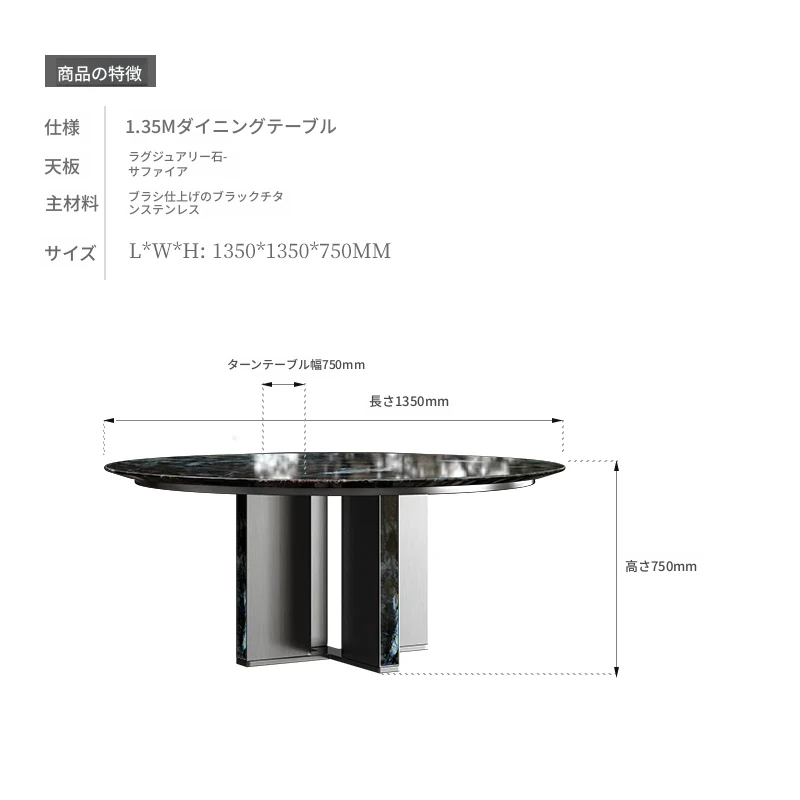 【天然ラグジュアリー石サファイア】1.35メートルダイニングテーブル(回転盤付き)