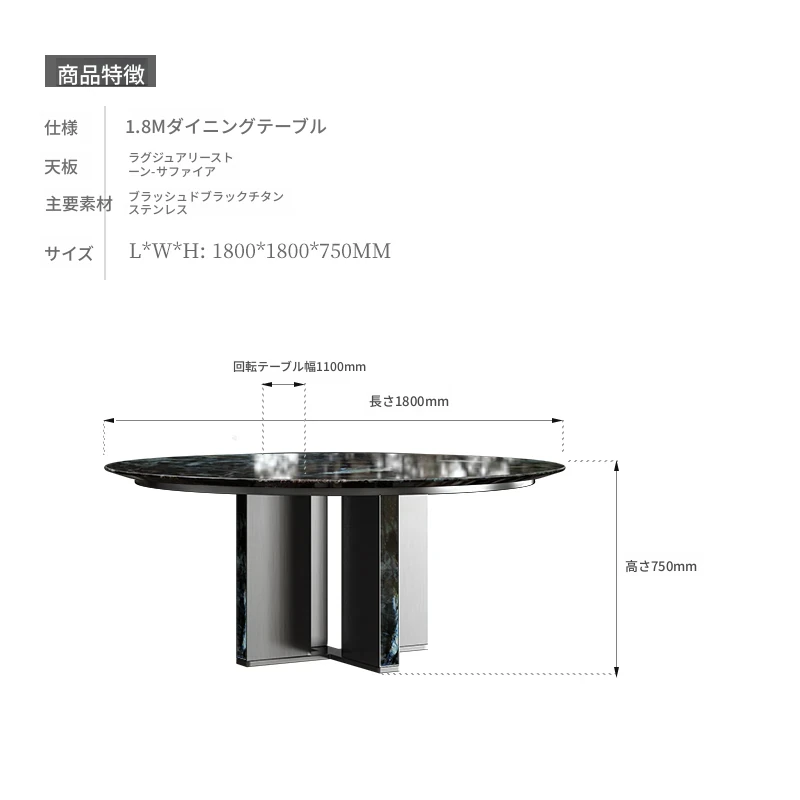 【天然ラグジュアリー石サファイア】1.80メートルダイニングテーブル(回転盤付き)