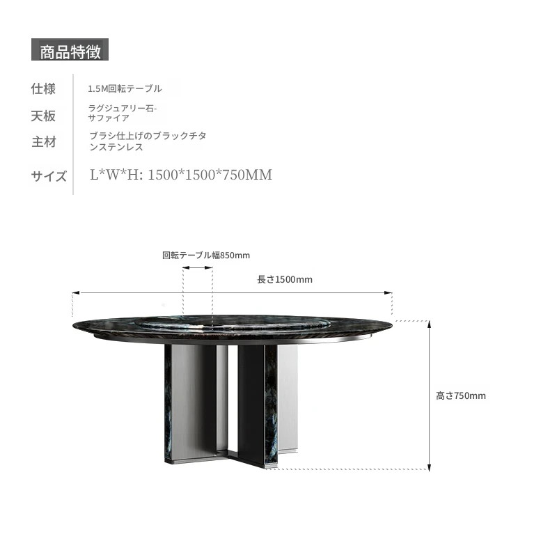【天然ラグジュアリー石サファイア】1.50メートルダイニングテーブル(回転盤付き)