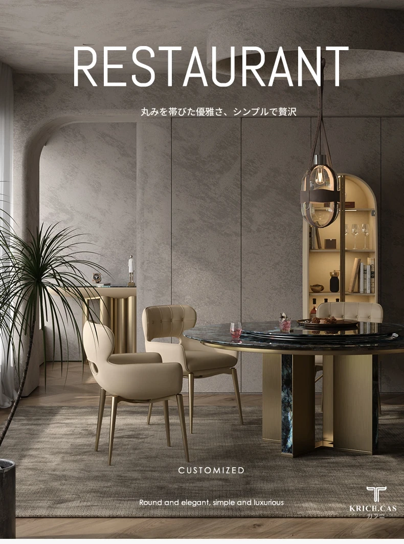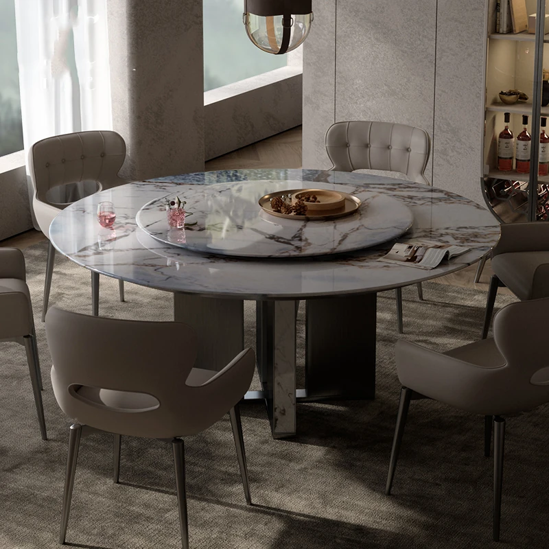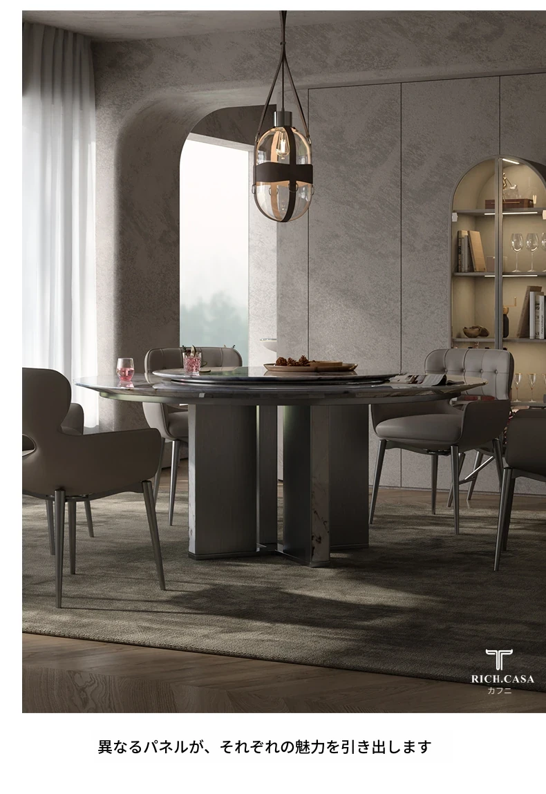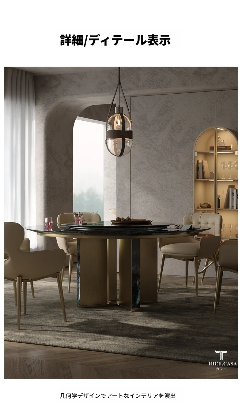 高級感溢れる天然大理石のラウンドサファイア食卓 - モダンでシンプルなデザイン、別荘にぴったりの高品質ダイニング家具。あなたの食事空間を一新する贅沢な選択!