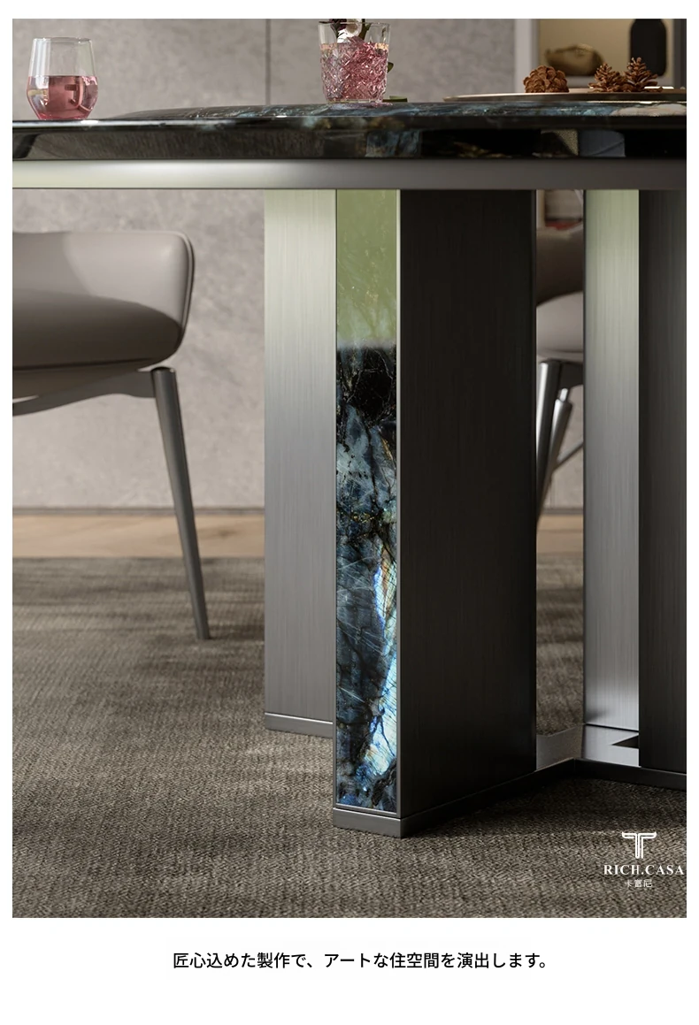 【天然ラグジュアリー石サファイア】1.80メートルダイニングテーブル(回転盤なし)