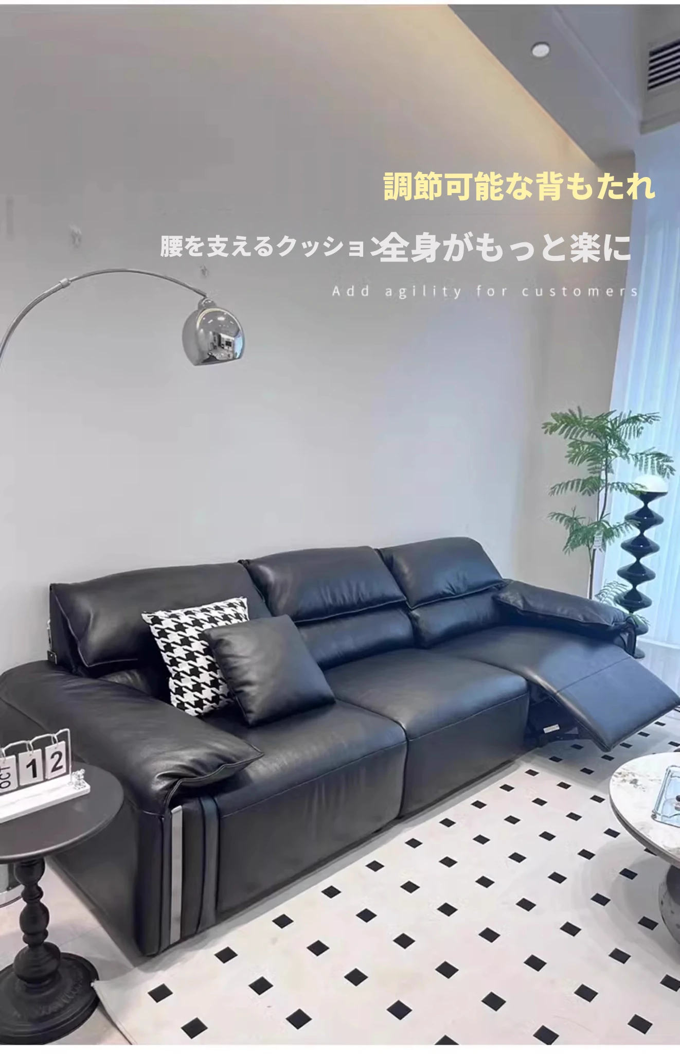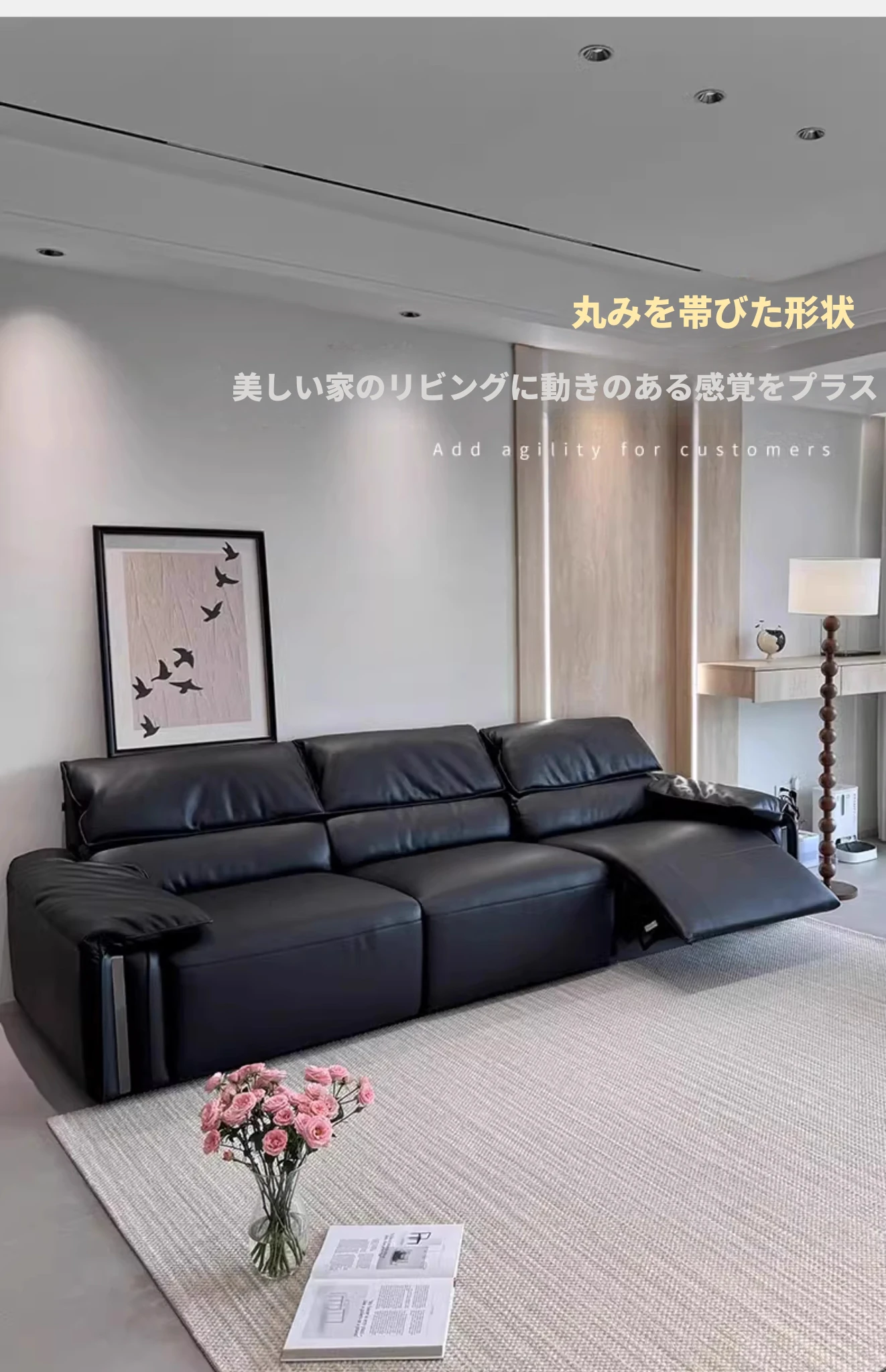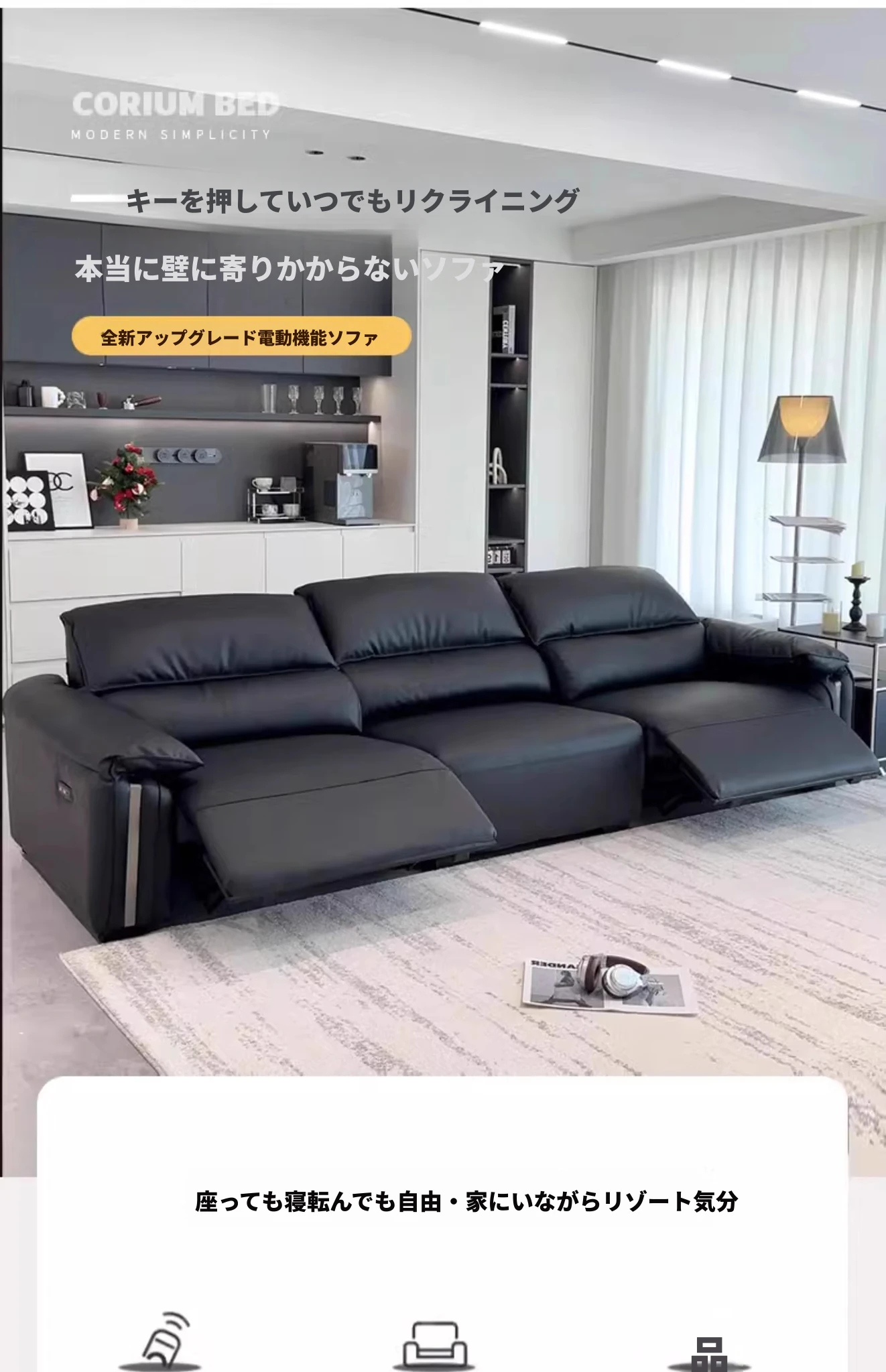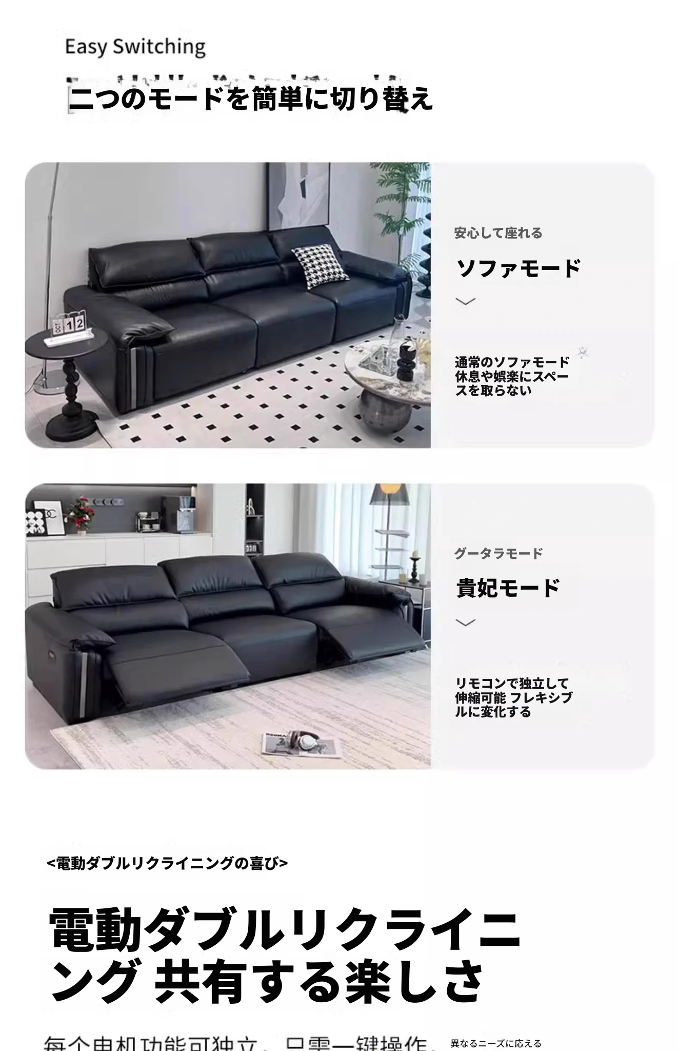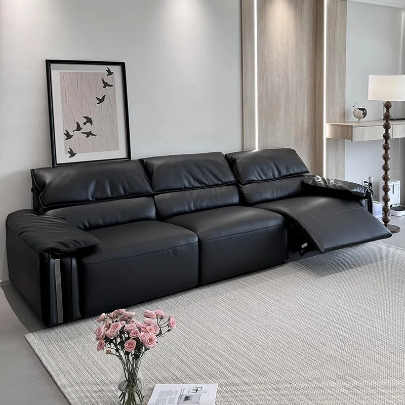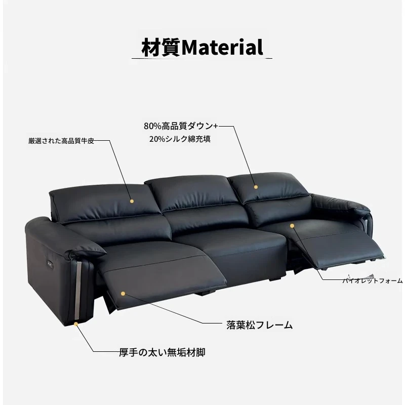 エレガントな象耳デザインの電動本革ソファ - リビングにぴったりな高級イタリアンミニマリズム!一流の牛革を使用し、快適なファーストクラスの座り心地を実現。