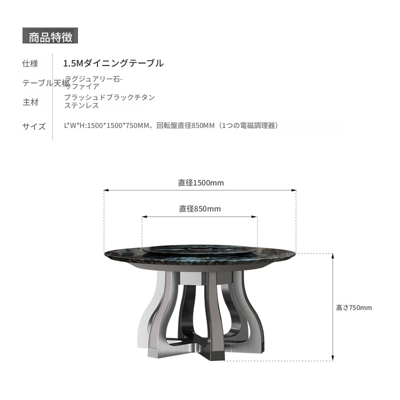 【天然ラグジュアリー石サファイア】1.50mダイニングテーブル(ブラックチタン合金)