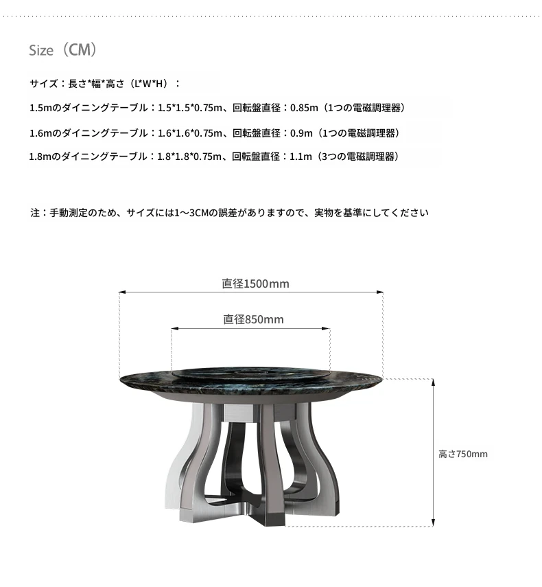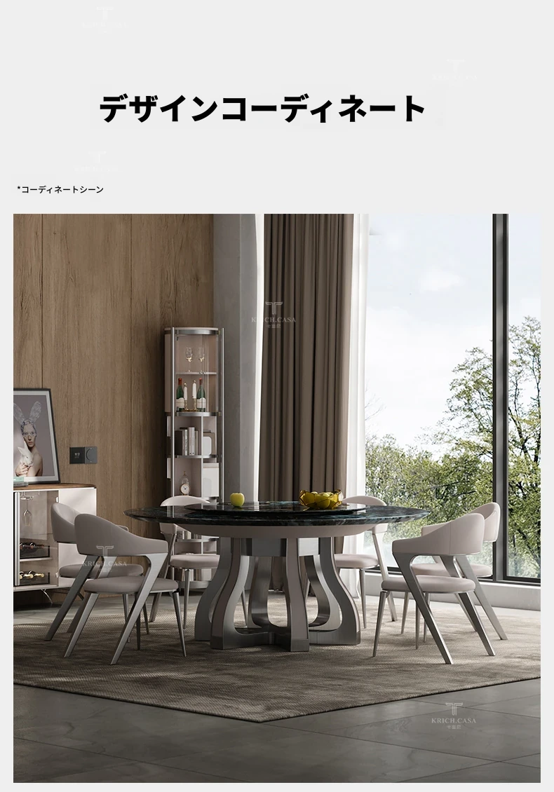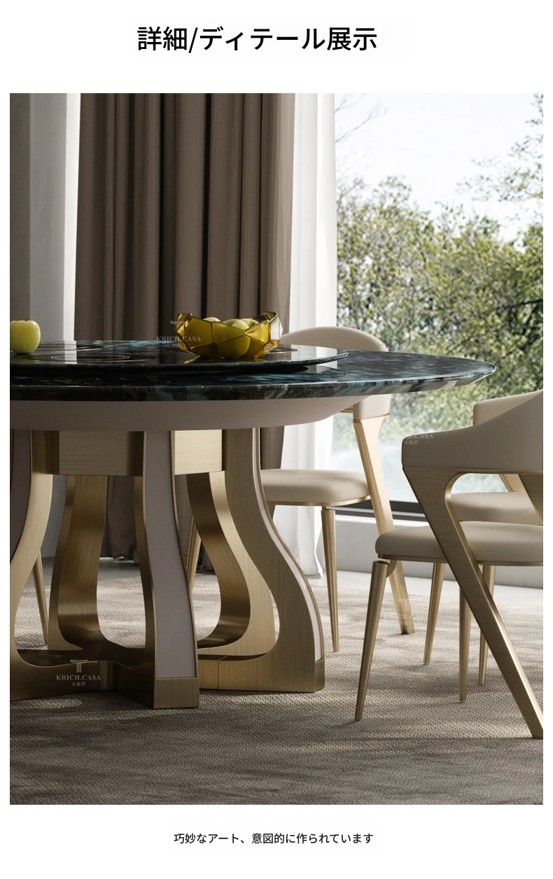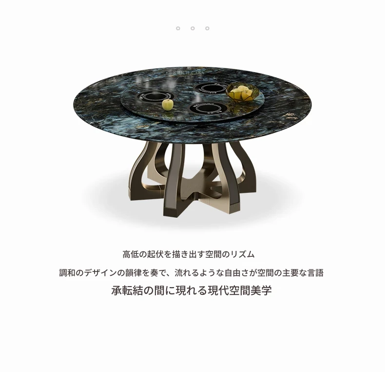 高級天然大理石ダイニングテーブルセット - 豪華なサファイアブルーの回転式テーブル、電磁調理器付き!おしゃれで実用的な電動円形テーブルで、特別な食事体験をお楽しみください。
