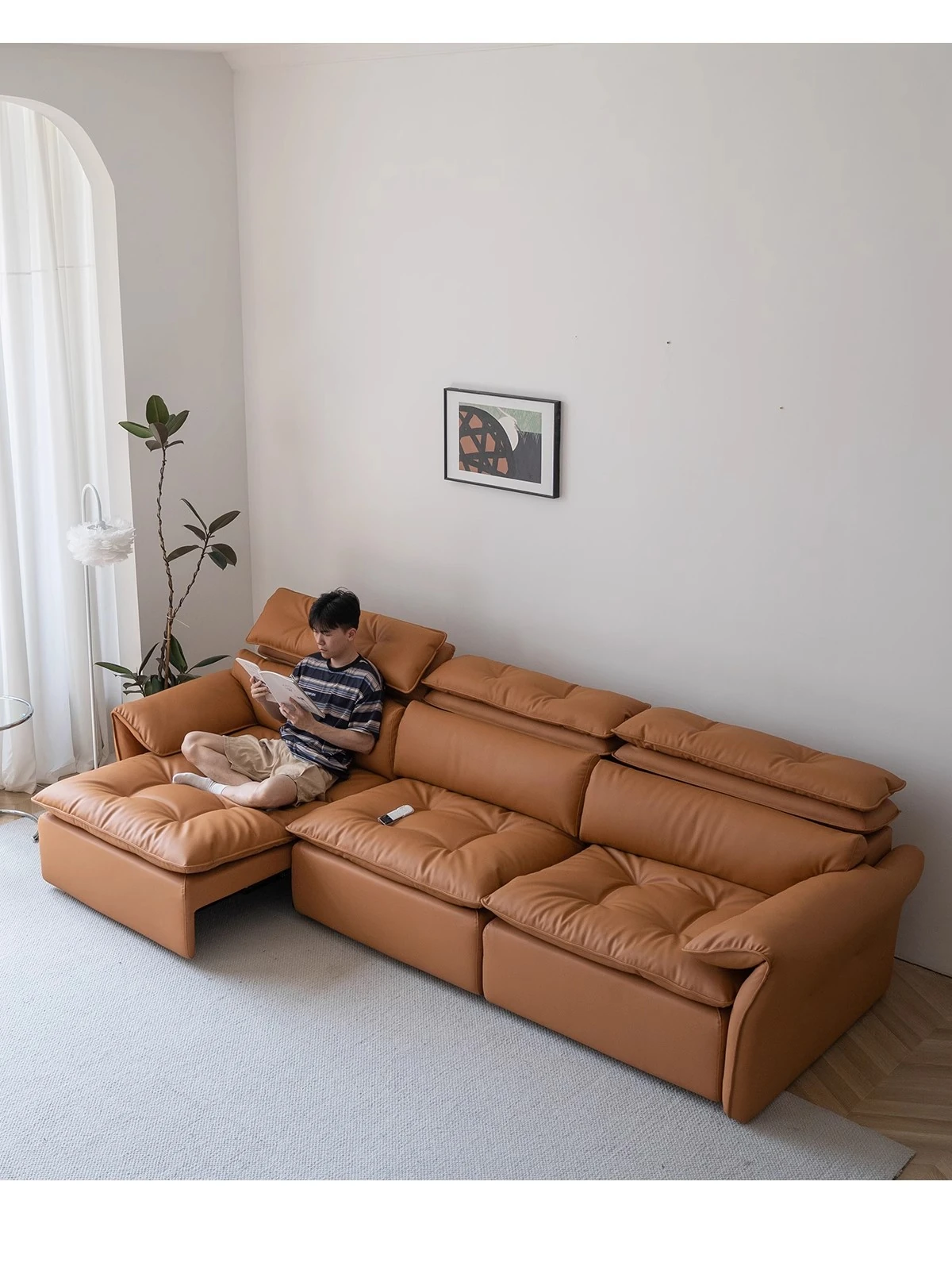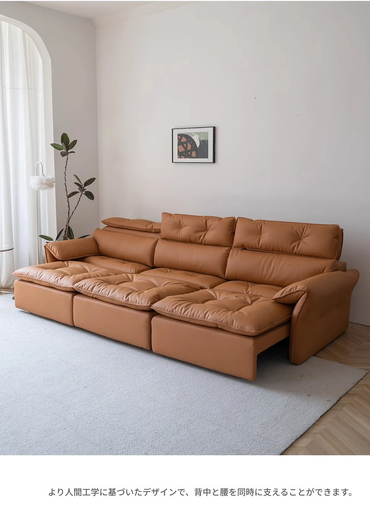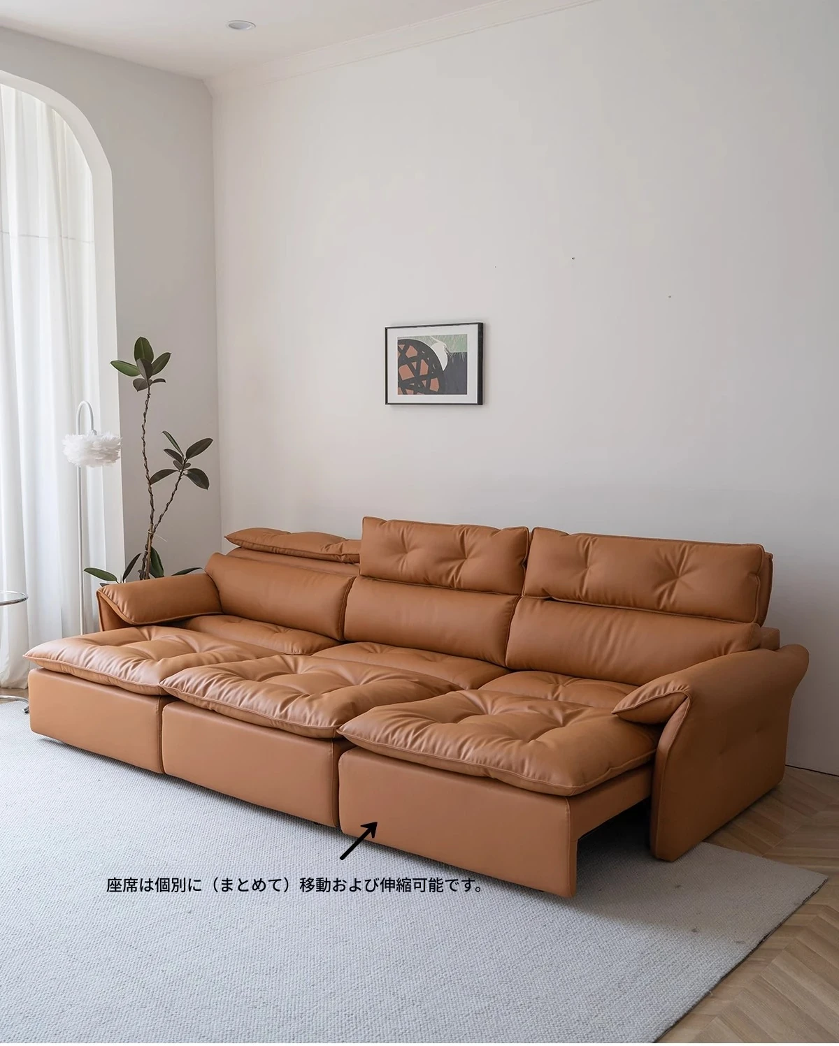 背もたれが高く、調節可能なゼロ壁電動ソファ。上質な本革使用で、現代的なリビングにぴったり。ゆったりとした深い座り心地と伸縮機能で、快適なくつろぎ空間を実現します。