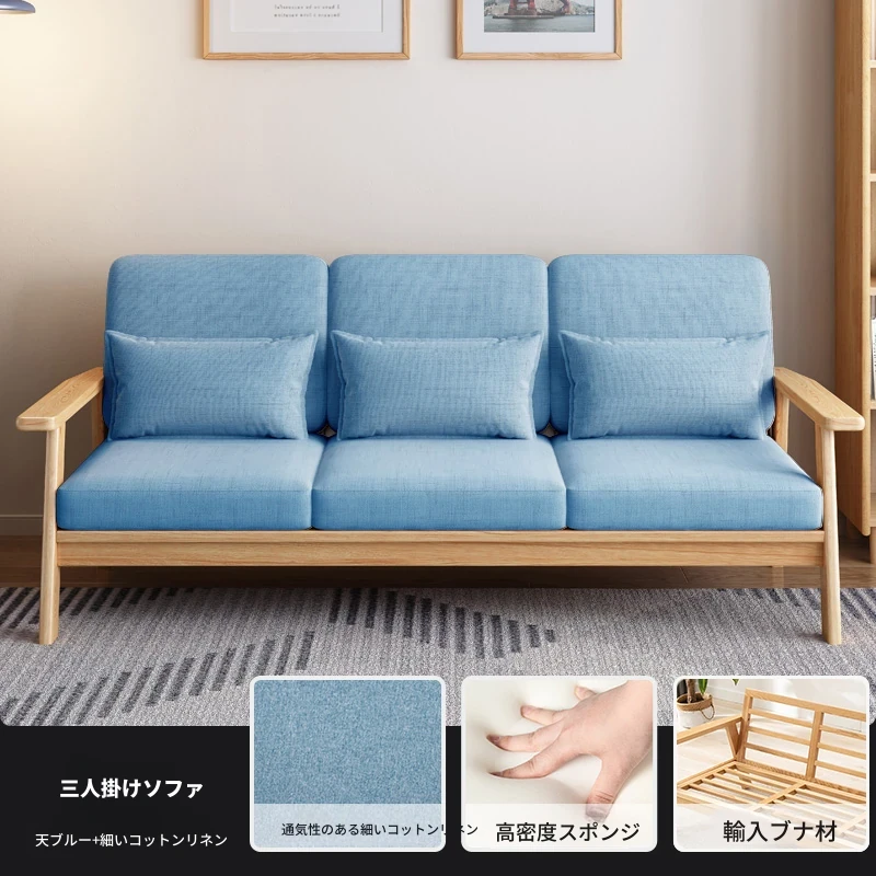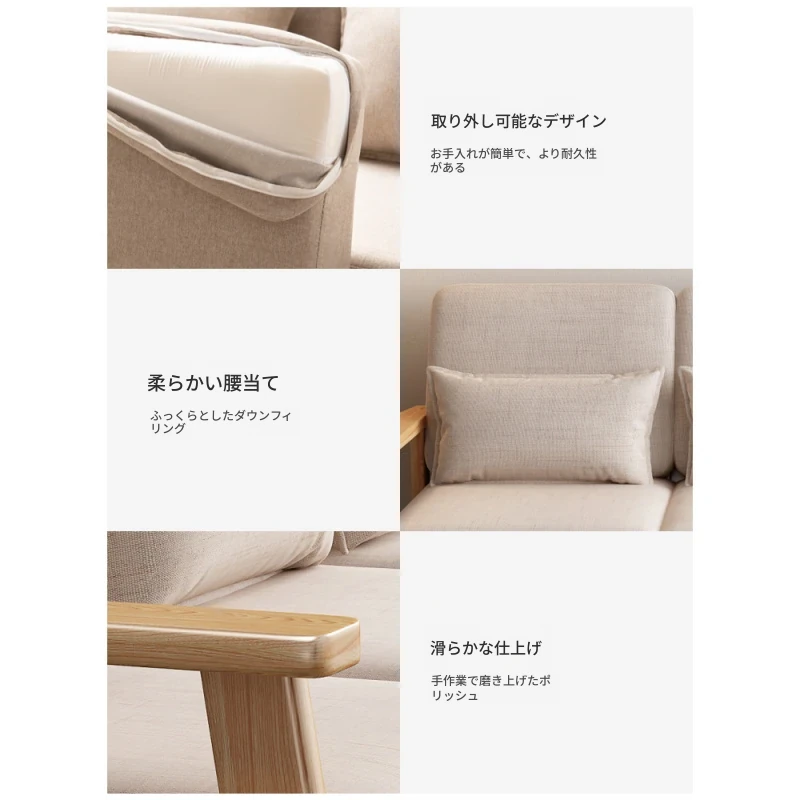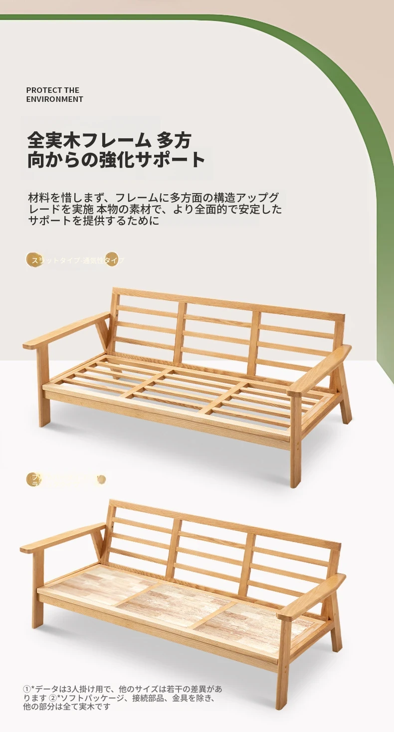 木栖坊の天然無垢材ソファ - 小型リビングに最適、シンプルモダンなデザインで、2人掛け・3人掛け両方対応。天然木の温もりを感じる和風スタイルのソファ。あなたのくつろぎ空間にぴったり!