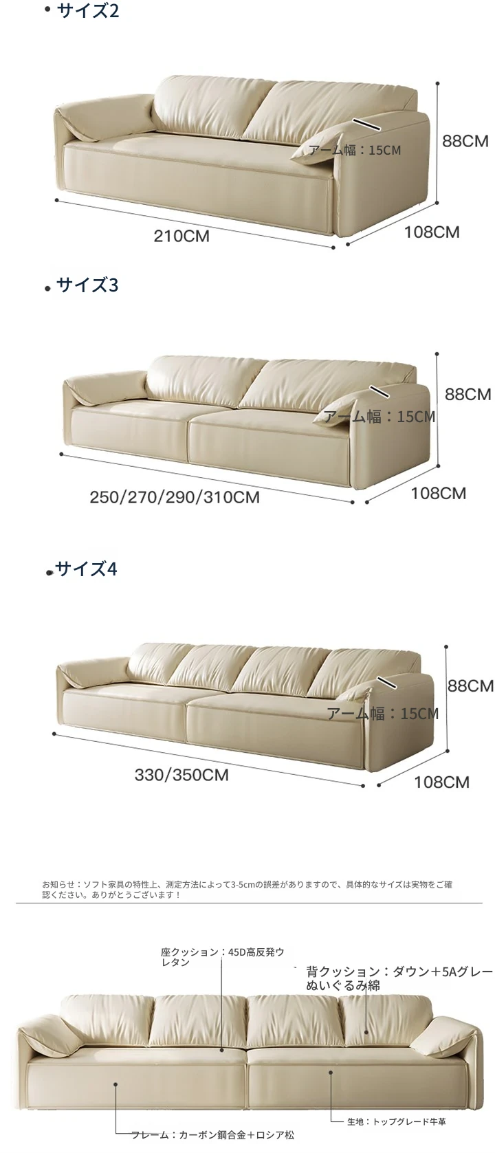 (全包裹·S級摔紋頭層牛皮)4人用3.5m(4人掛けソファ)