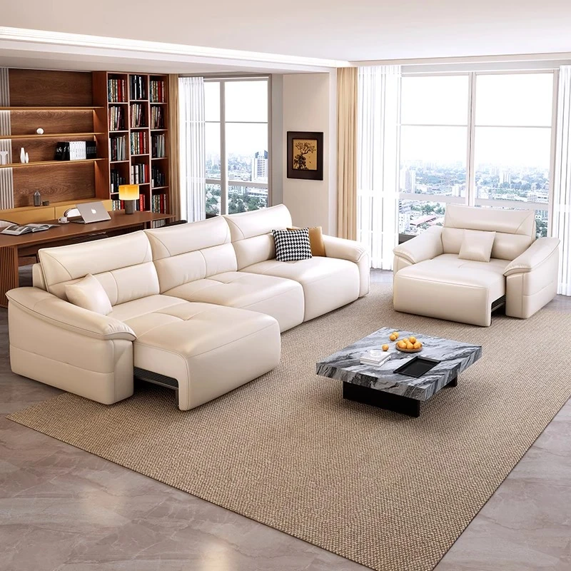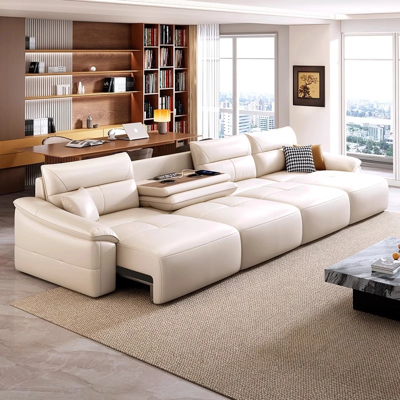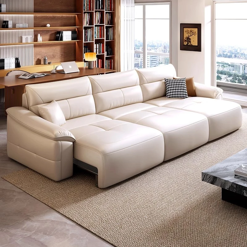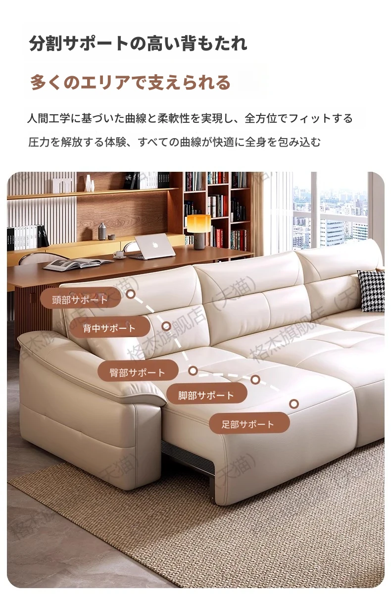 最新モデル!真皮製電動ソファー、リビングに最適!寝転びやすく、調整可能なスリムデザインで、スマートな二用途ソファーベッド。快適な睡眠とスタイリッシュな空間を実現します!