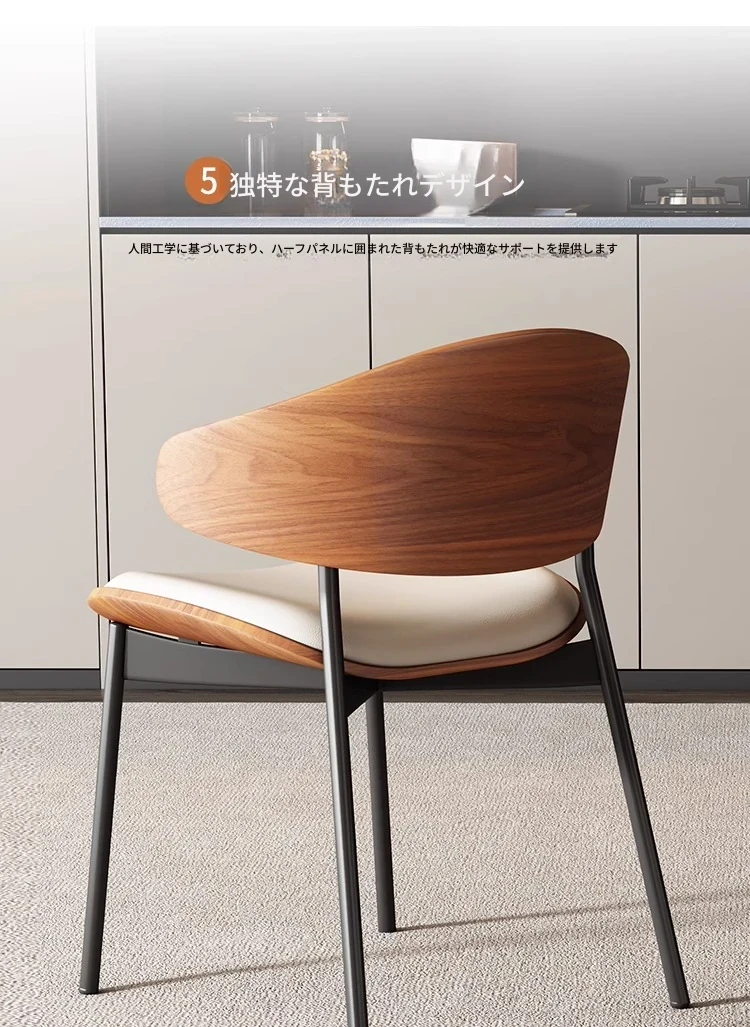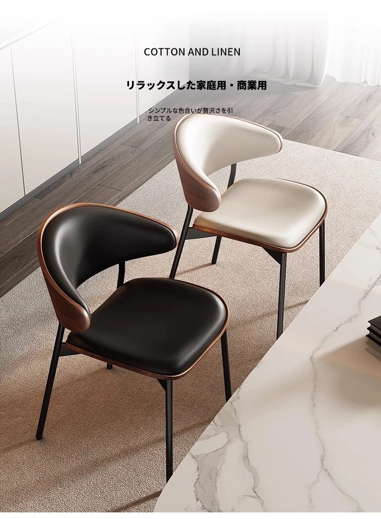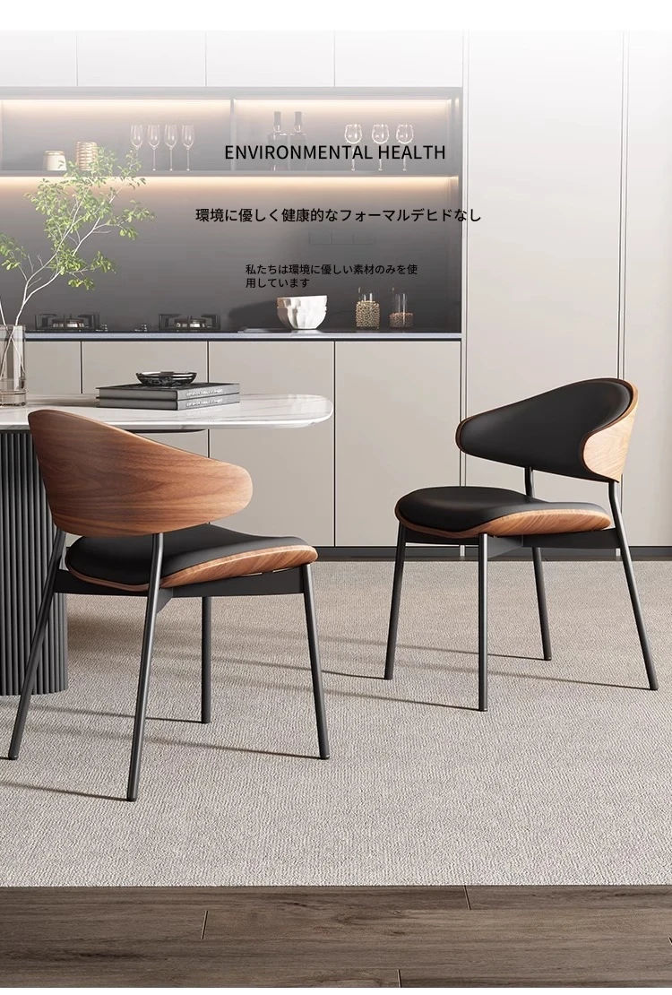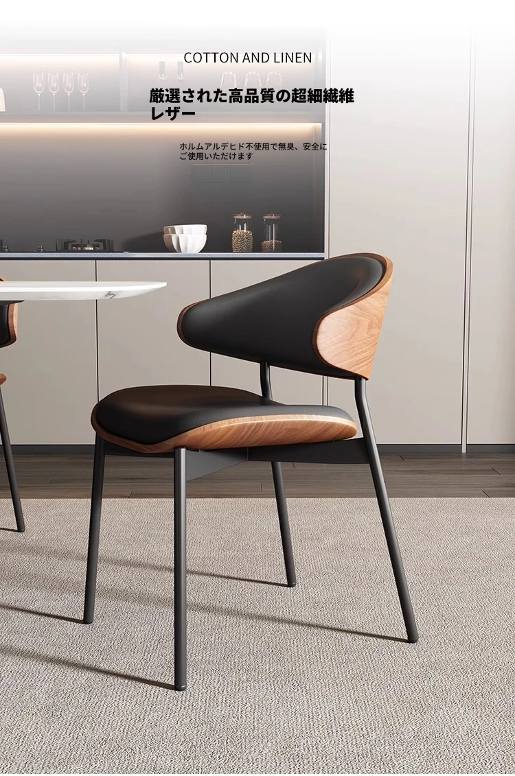 北欧スタイルのラグジュアリーなイタリアンデザイン、天然木製の曲線美を持つモダンなダイニングチェア。カフェや商談に最適な快適な座り心地を提供します。
