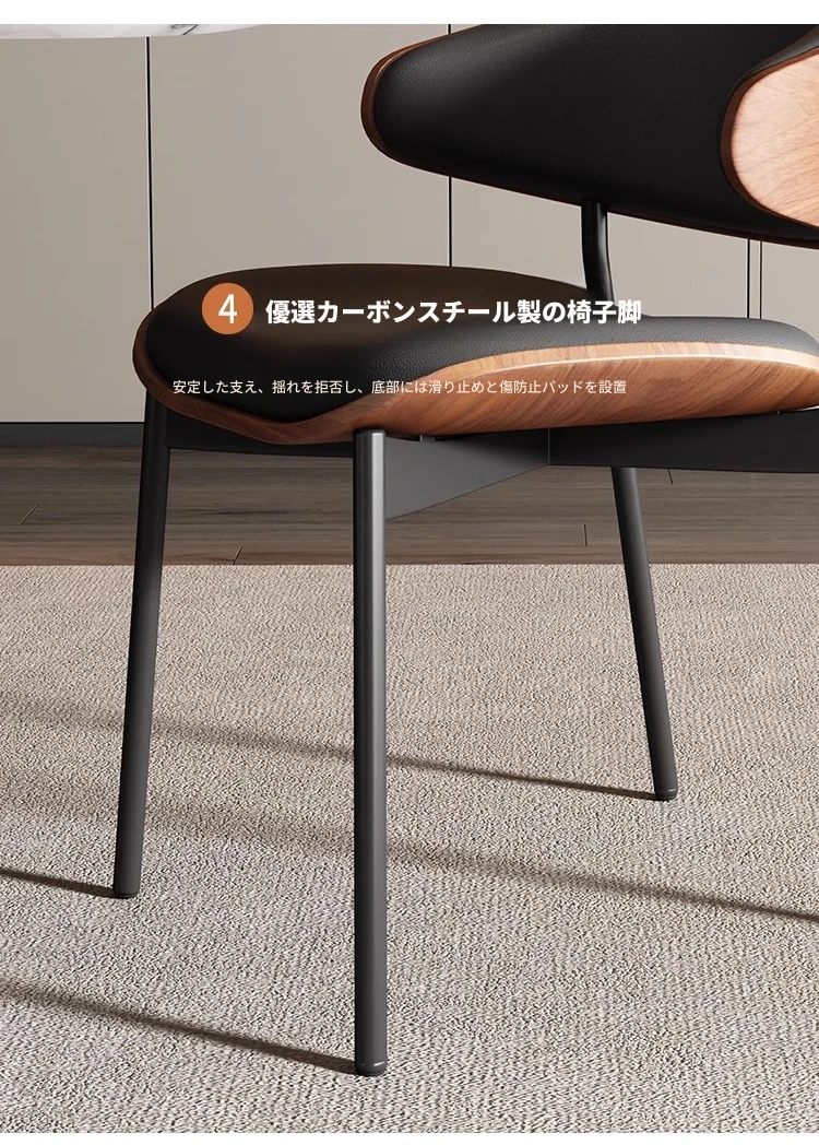 2脚の開始価格【ブラック超合成皮革】厚手の無垢材曲げ板 イームズネット流行レトロダイニングチェア