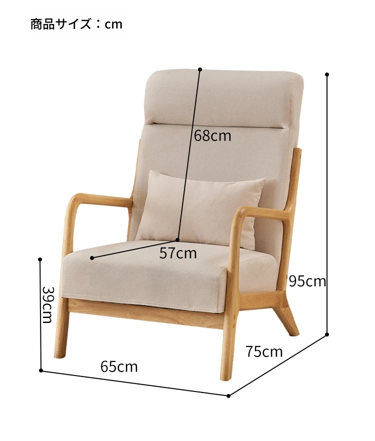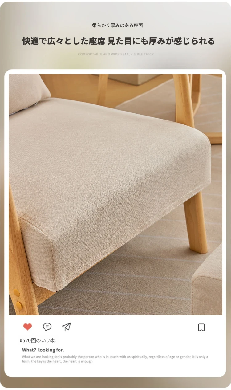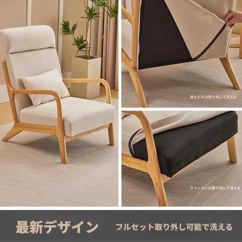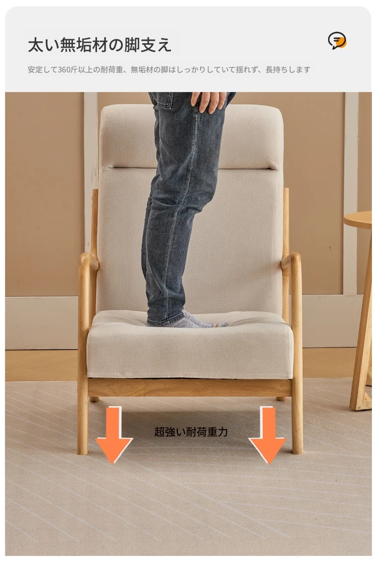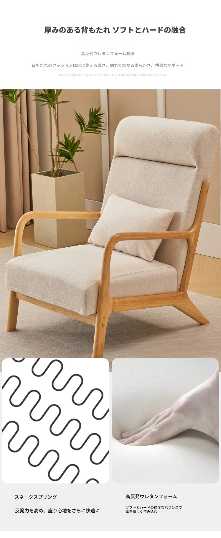 北欧スタイルのリクライニングソファ|バルコニーやリビングに最適なモダンなアームチェア|高い背もたれで快適さ抜群|実木製の小型ソファで、リラックスしたひとときをお楽しみください!