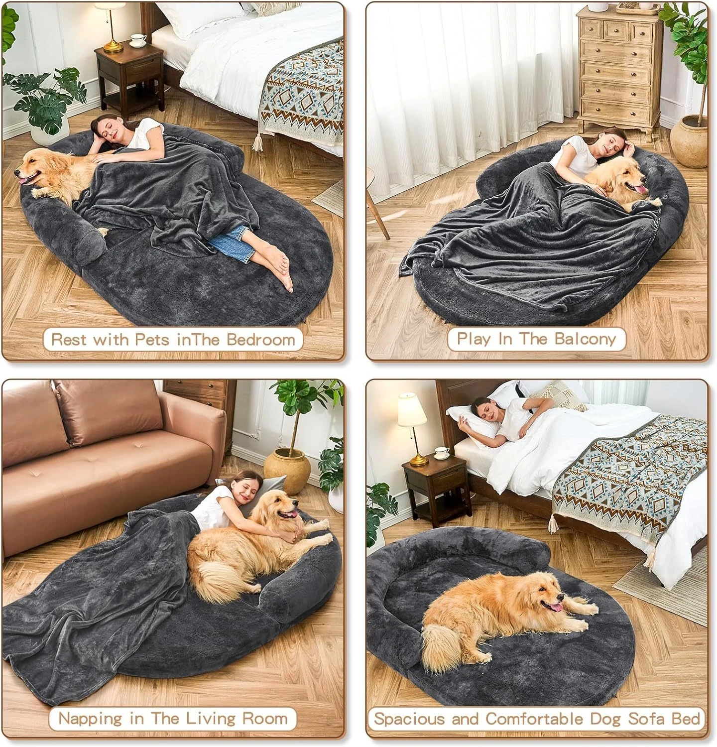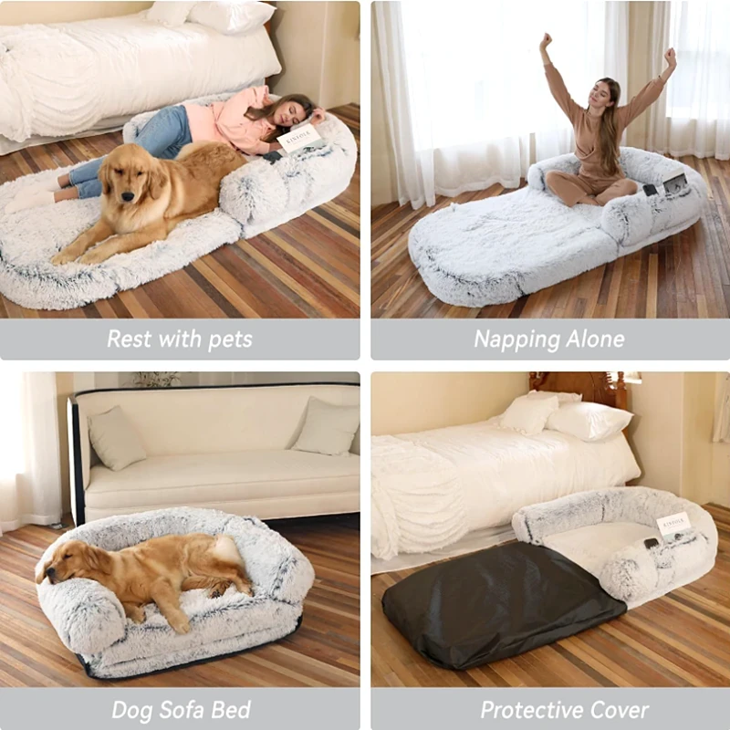 ラウンジャーソファ 大型犬用ベッド 人間用の猫ベッド 巨大な犬用マット お手入れ簡単なペットマット 折りたたみソファベッド リラックスして眠れる快適空間!
