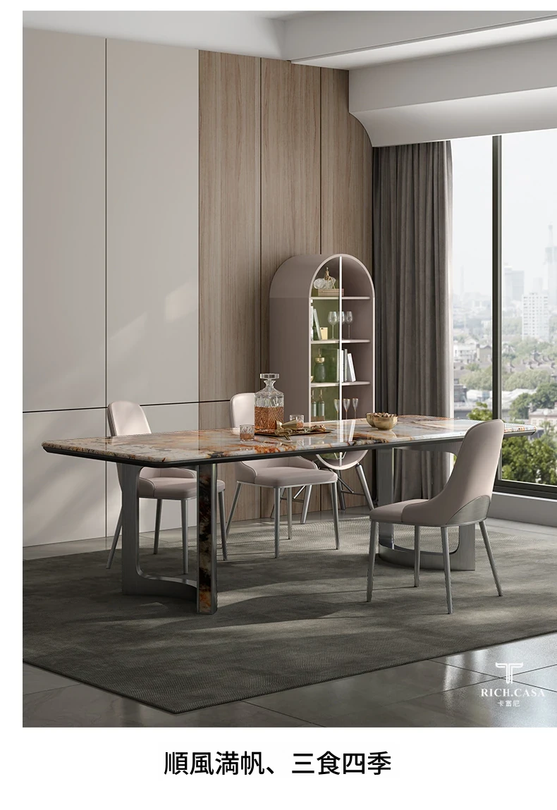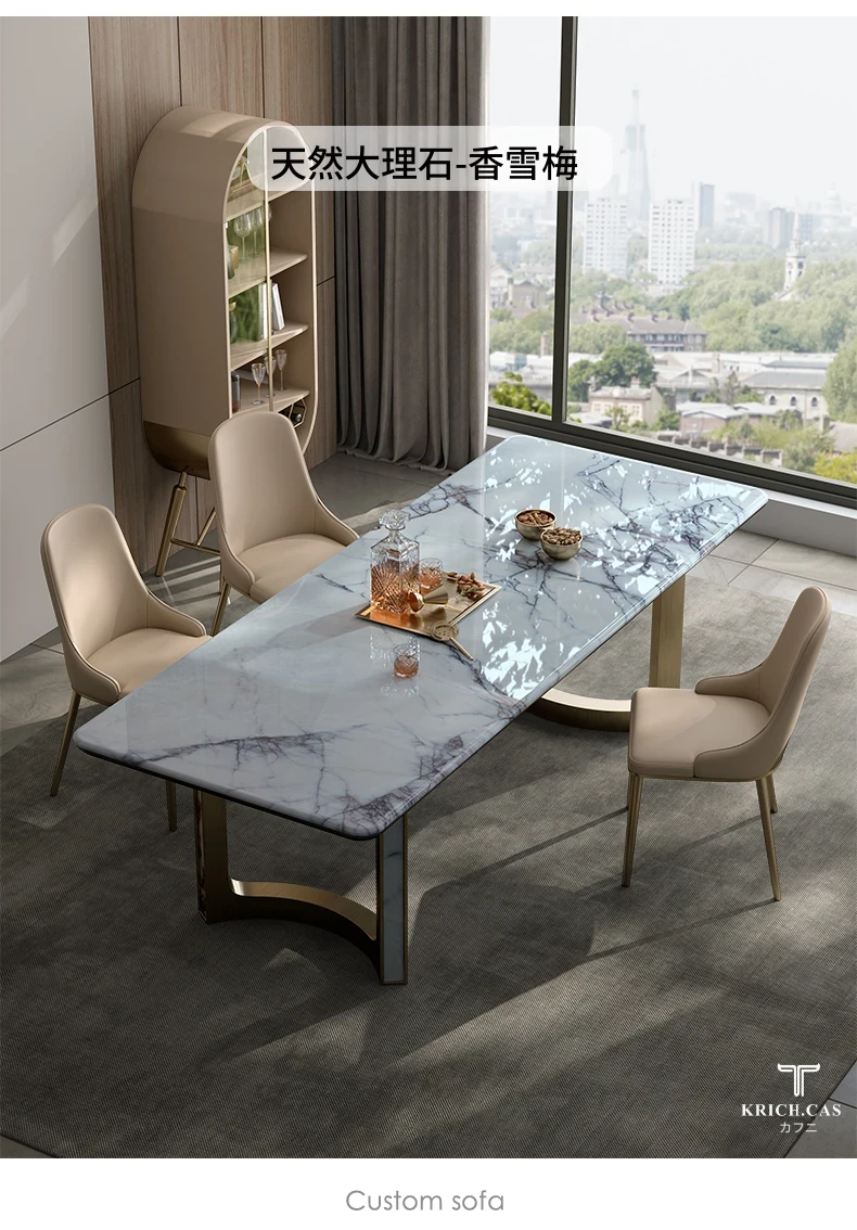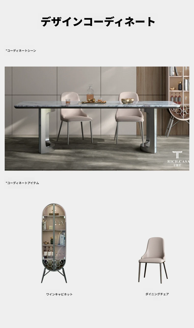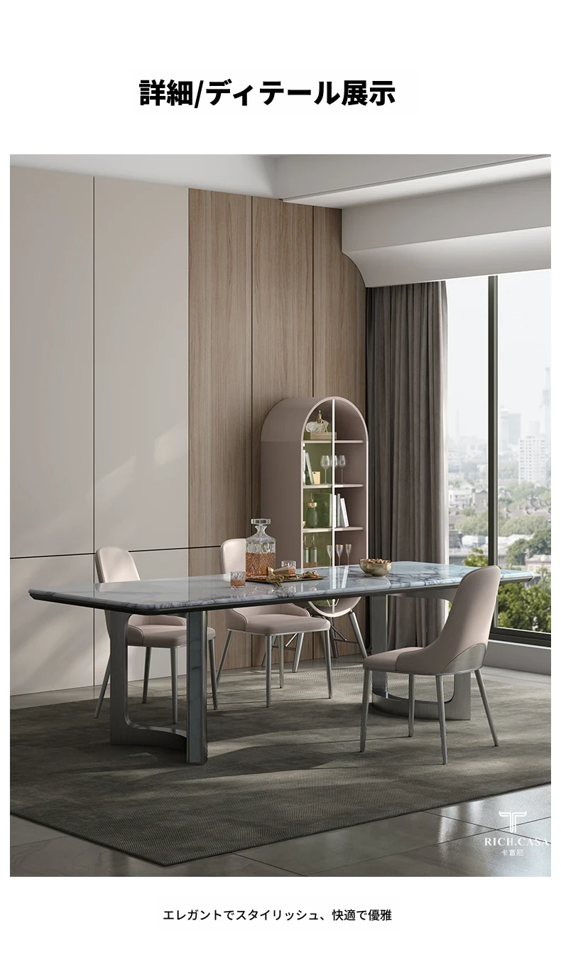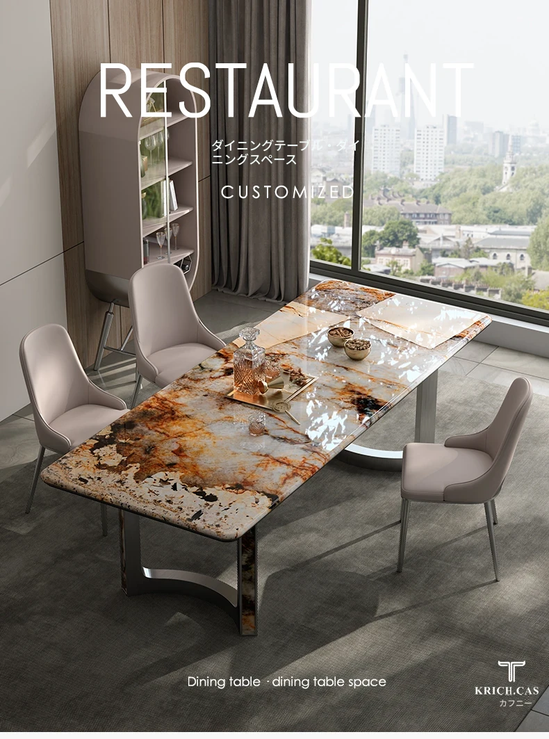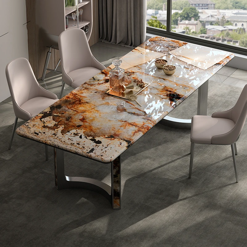 パンドラ天然石のラグジュアリーな長方形ダイニングテーブル - 高級大理石使用のイタリアンデザインで、洗練された空間を演出。あなたの食卓に特別なひとときを。