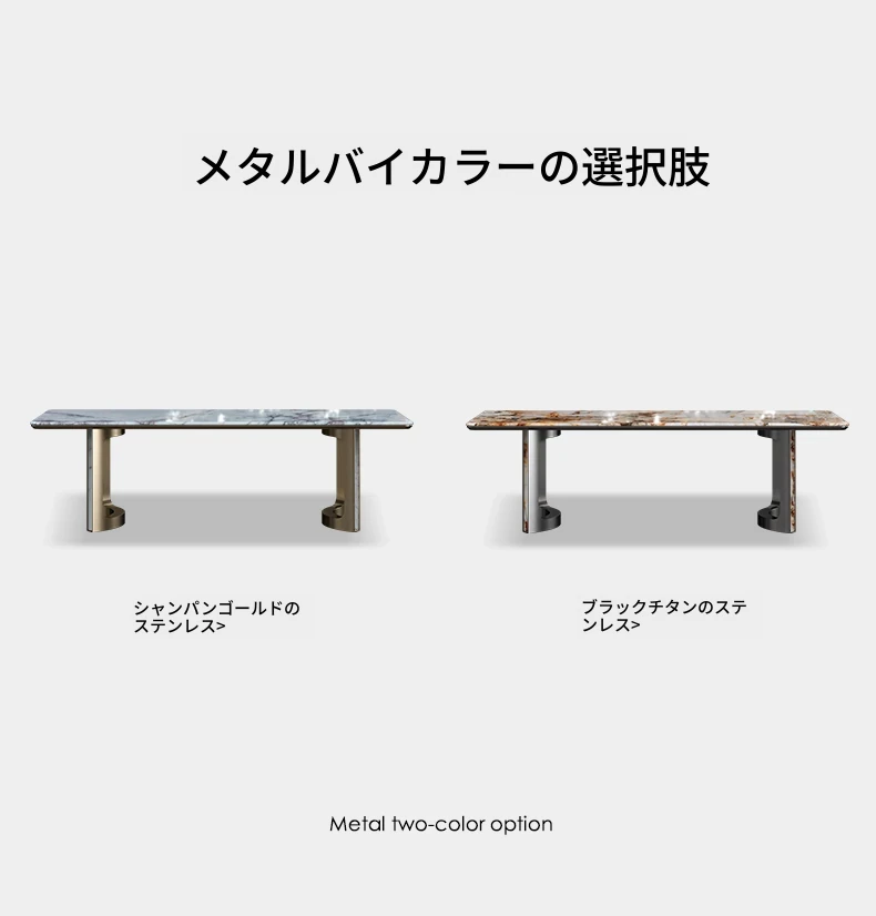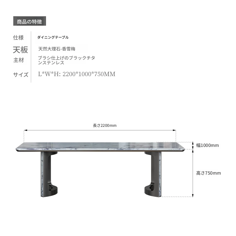 【天然大理石 シャンシュエメイ】2.20メートル テーブル(ブラックチタン合金)