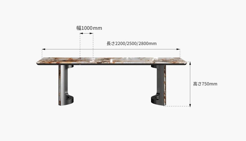 【天然ラグジュアリーストーン パンドラ】2.50メートル テーブル(ブラックチタン合金)