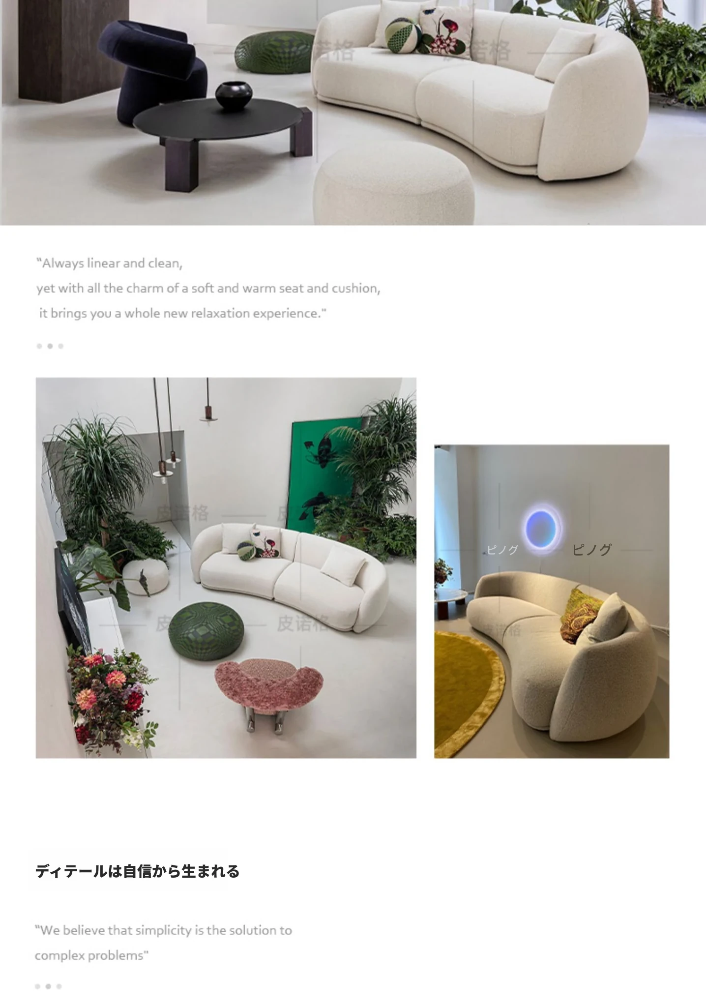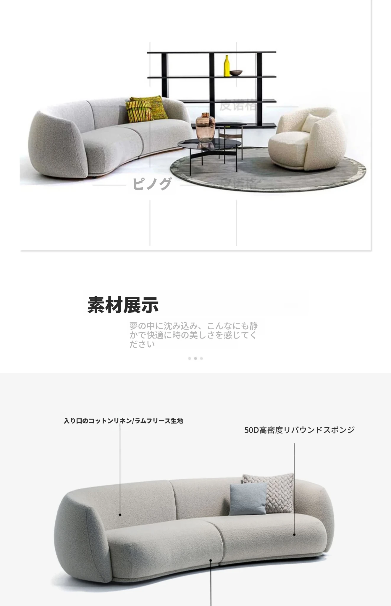 ピノグ フランス風クリームタッチ テディファブリック パシフィックムーン カシューナッツソファ リビングルーム アーチデザインでおしゃれな空間を演出!