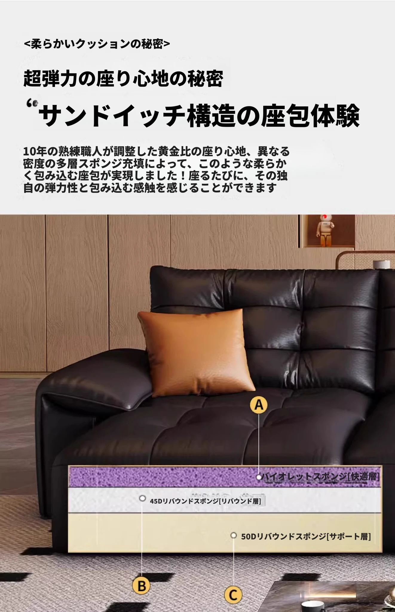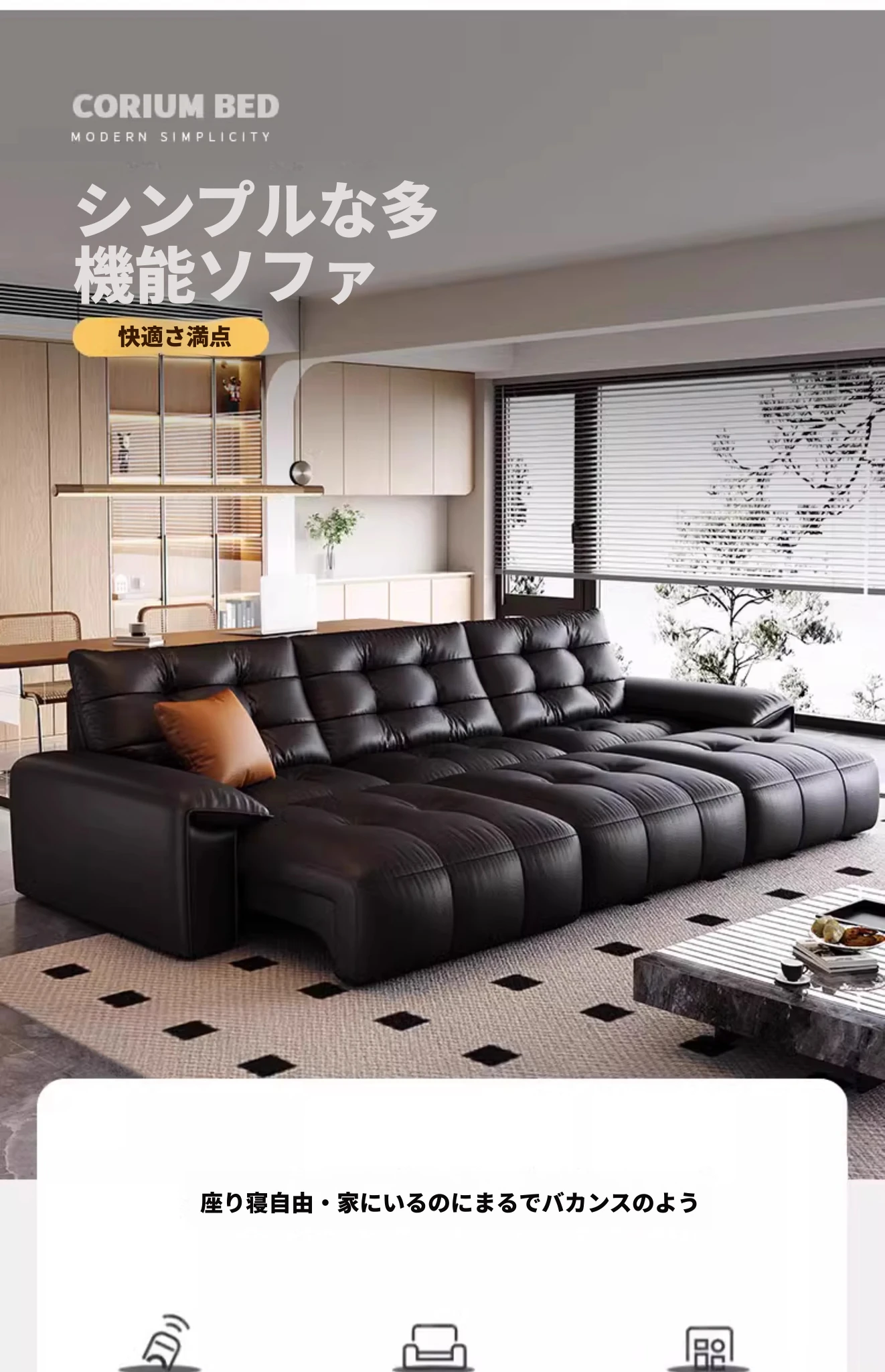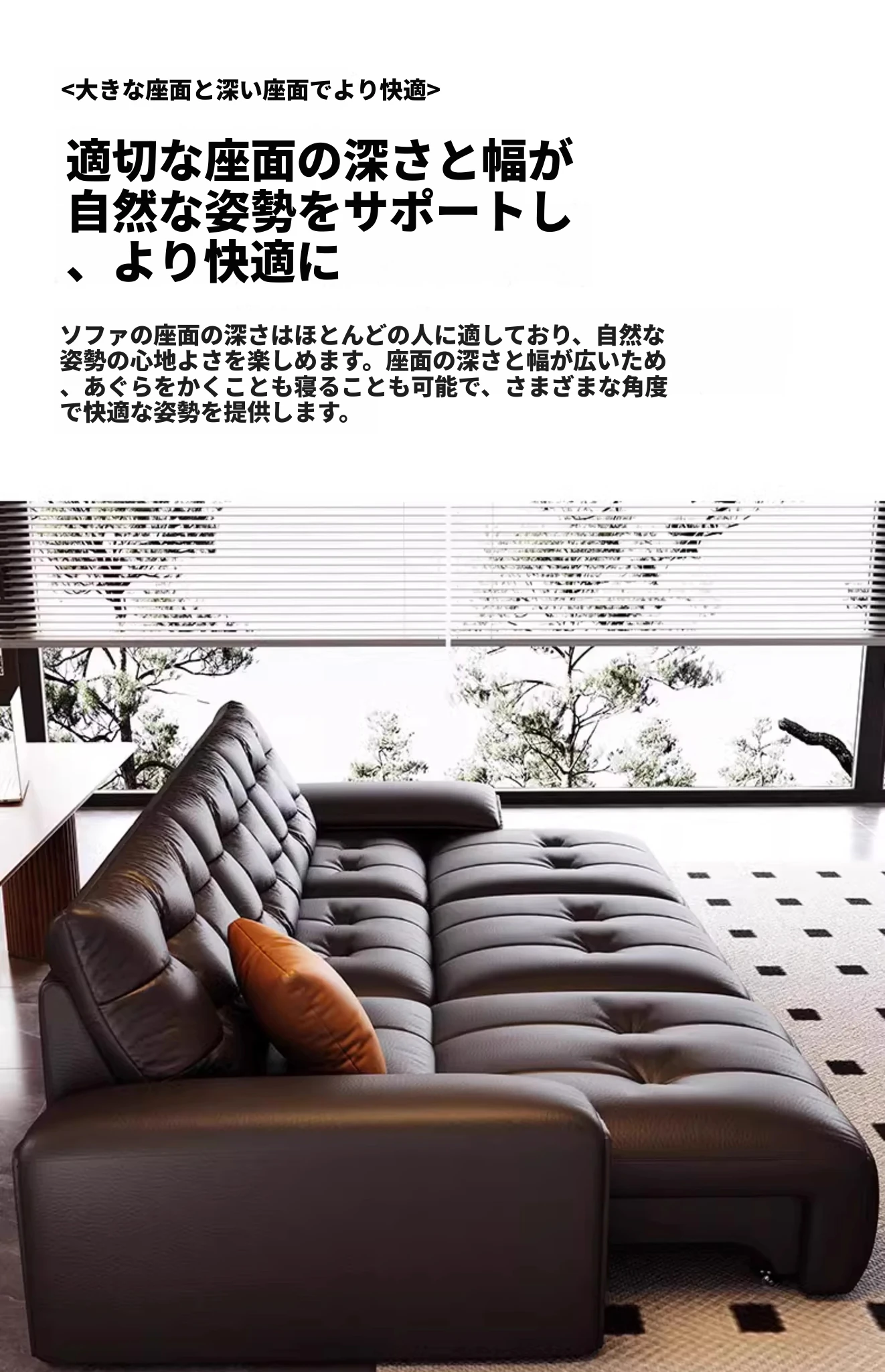 大黒熊 電動 本革 ソファベッド リビングルーム用 高級牛革 イタリアンデザイン 伸縮式 ファーストクラス機能付きソファ 最高の快適さとスタイルをあなたの空間に!