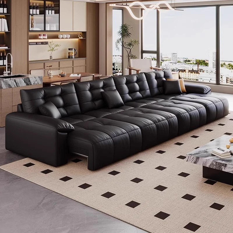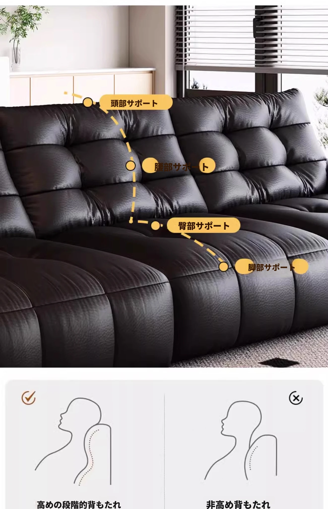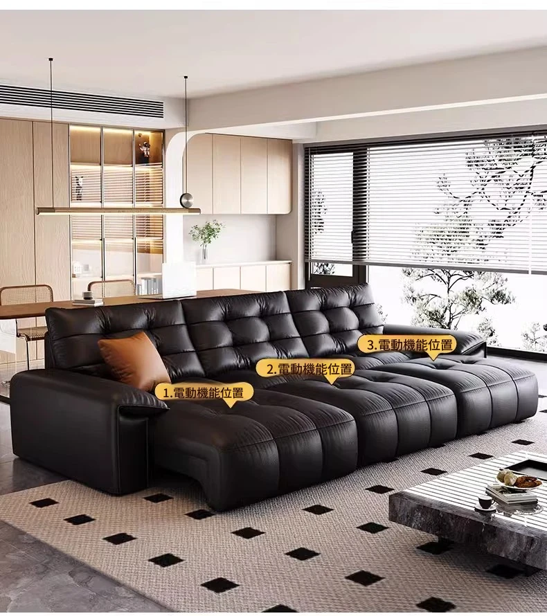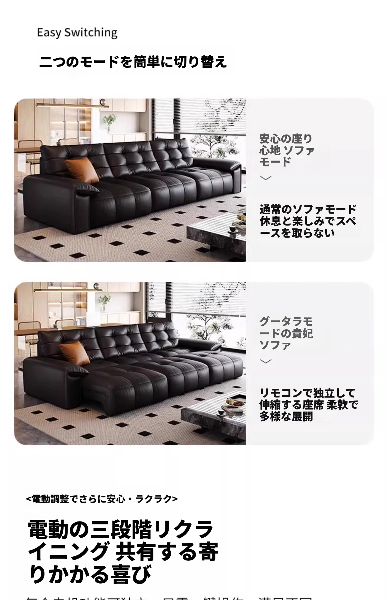 大黒熊 電動 本革 ソファベッド リビングルーム用 高級牛革 イタリアンデザイン 伸縮式 ファーストクラス機能付きソファ 最高の快適さとスタイルをあなたの空間に!