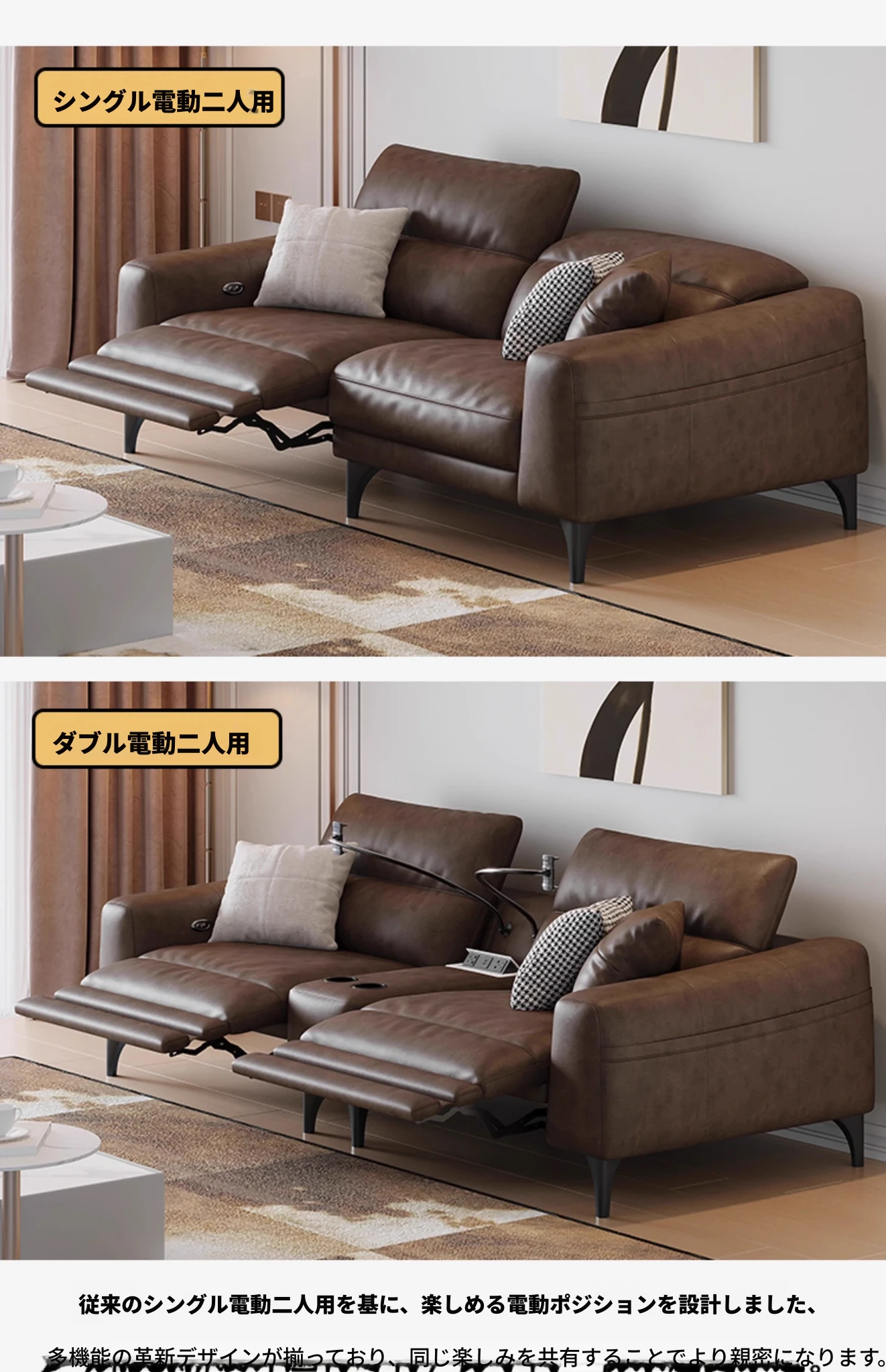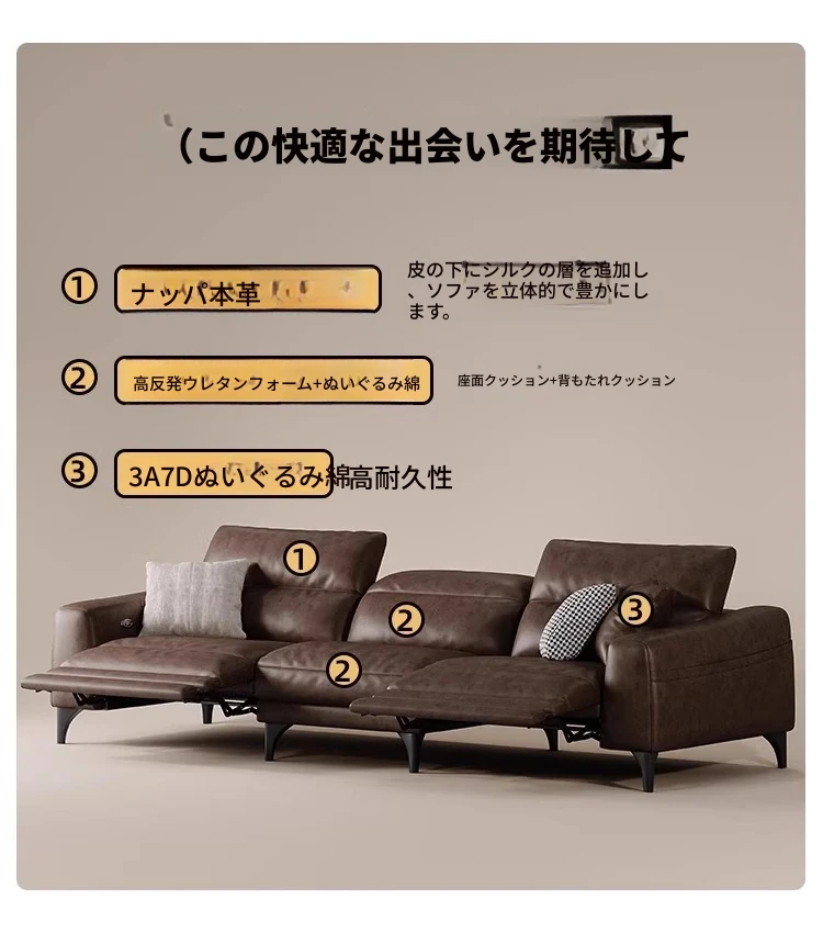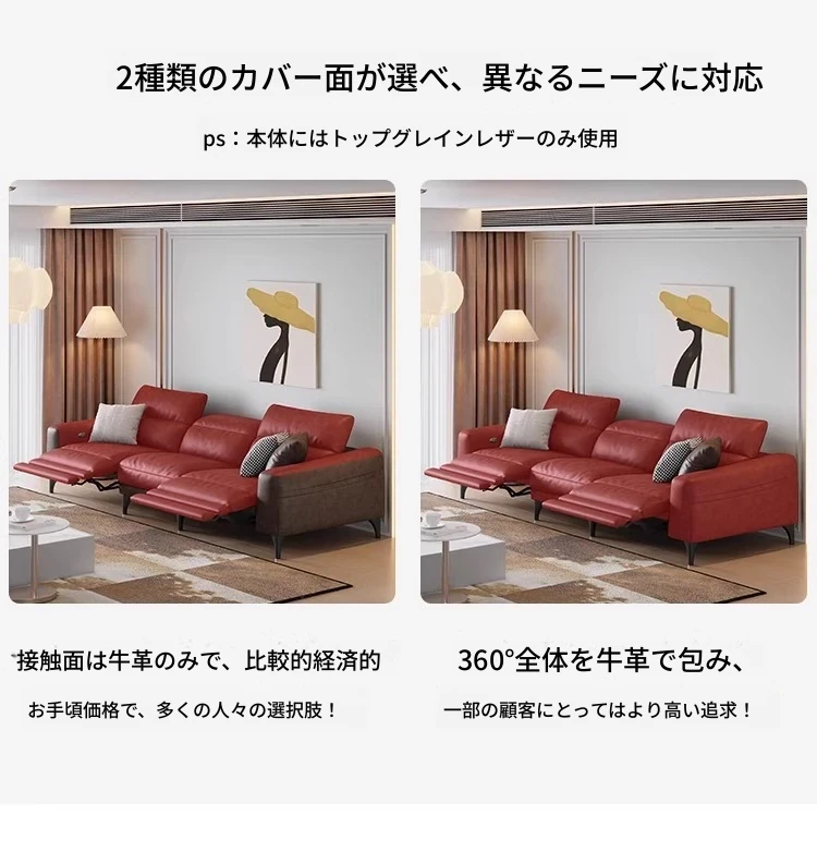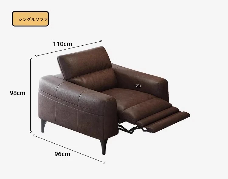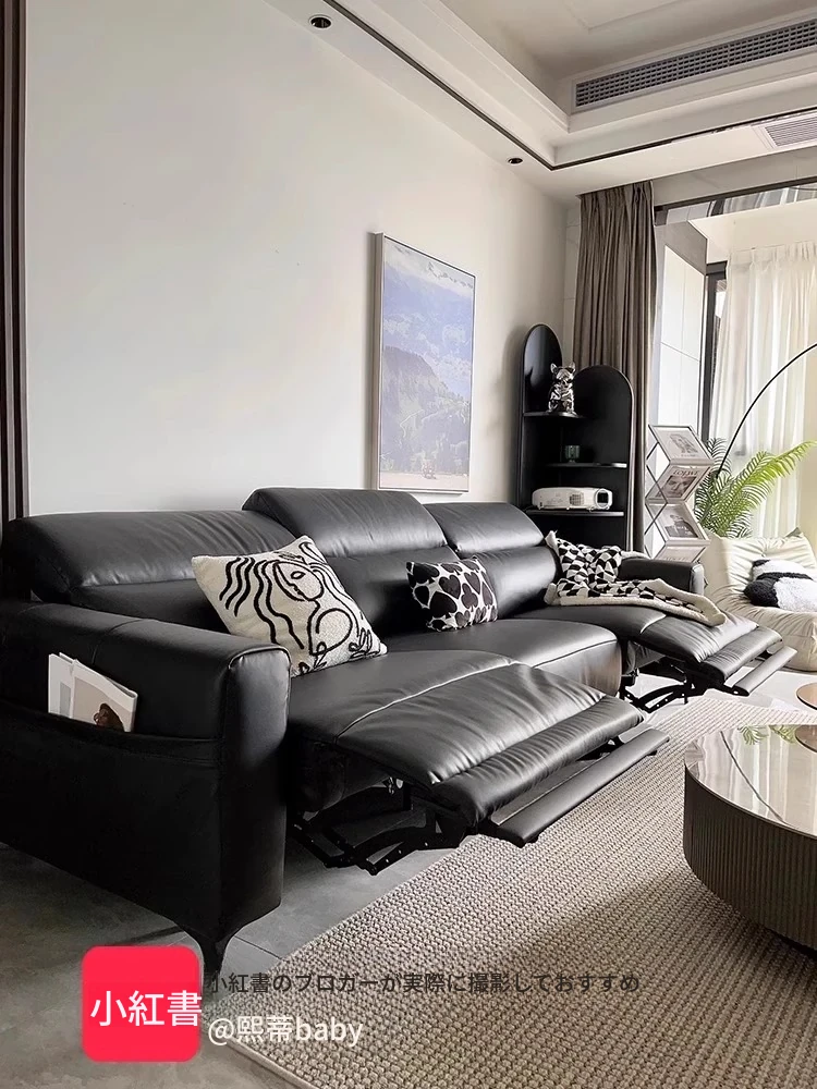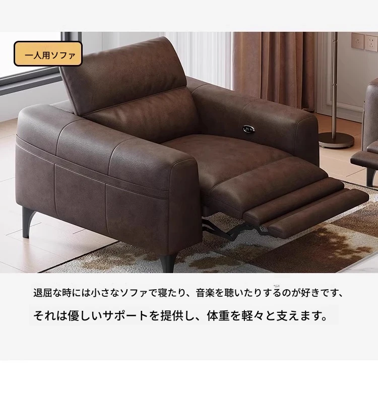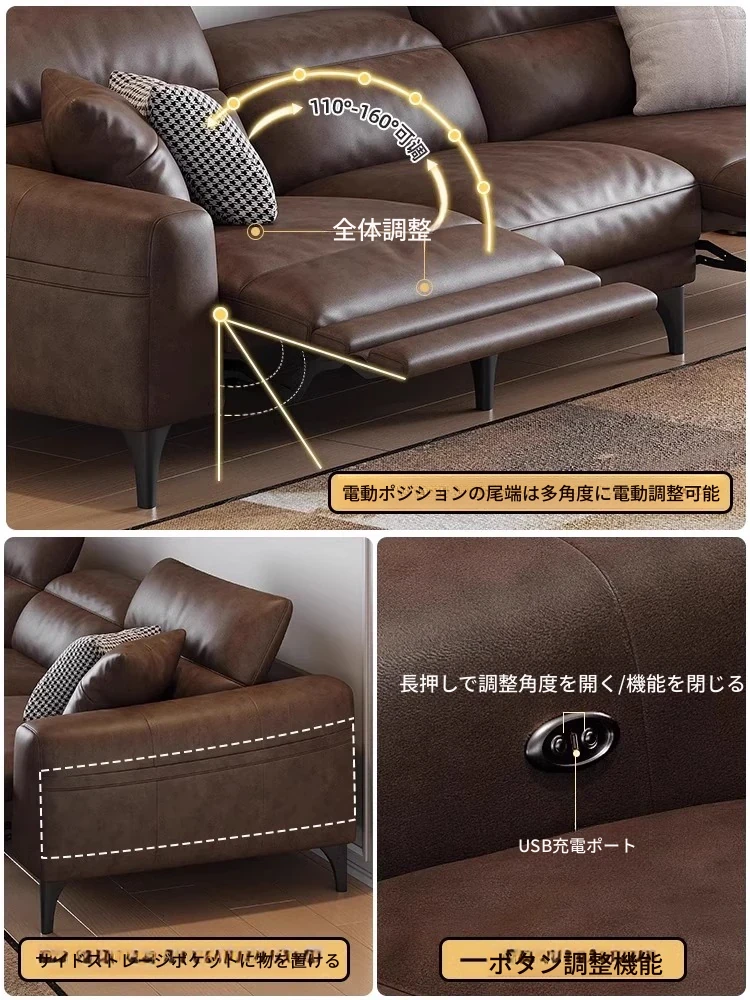 本革電動ソファー - イタリアンミニマルデザイン、壁にぴったりフィット、小型スペースに最適!調節可能なヘッドレストと伸縮機能を搭載した多機能ソファーで、快適なリビング空間を実現します。