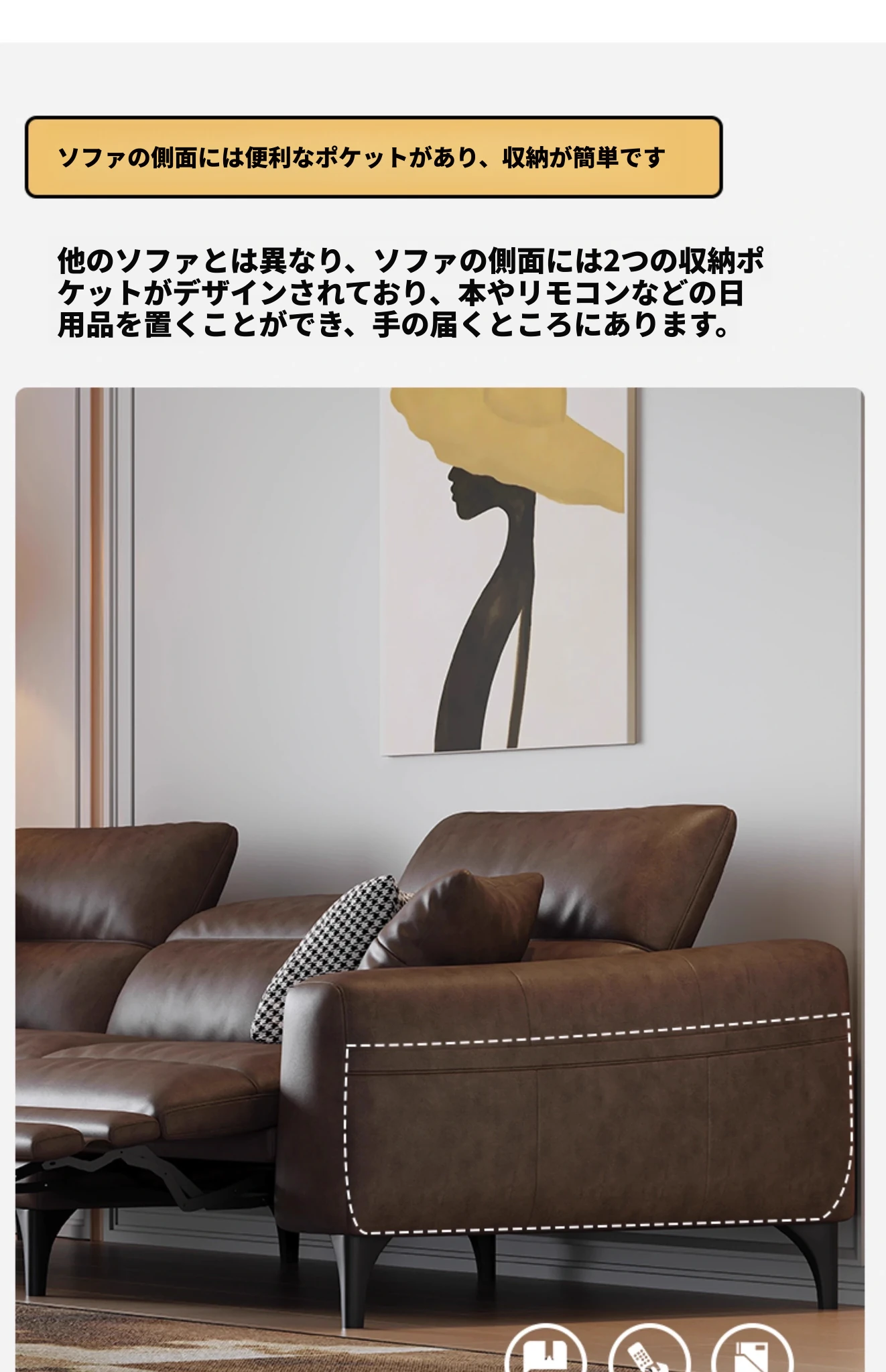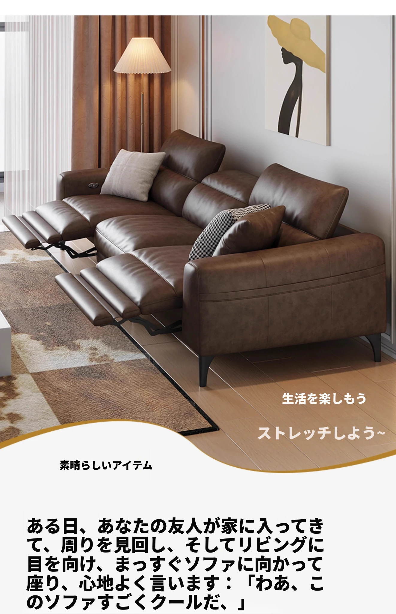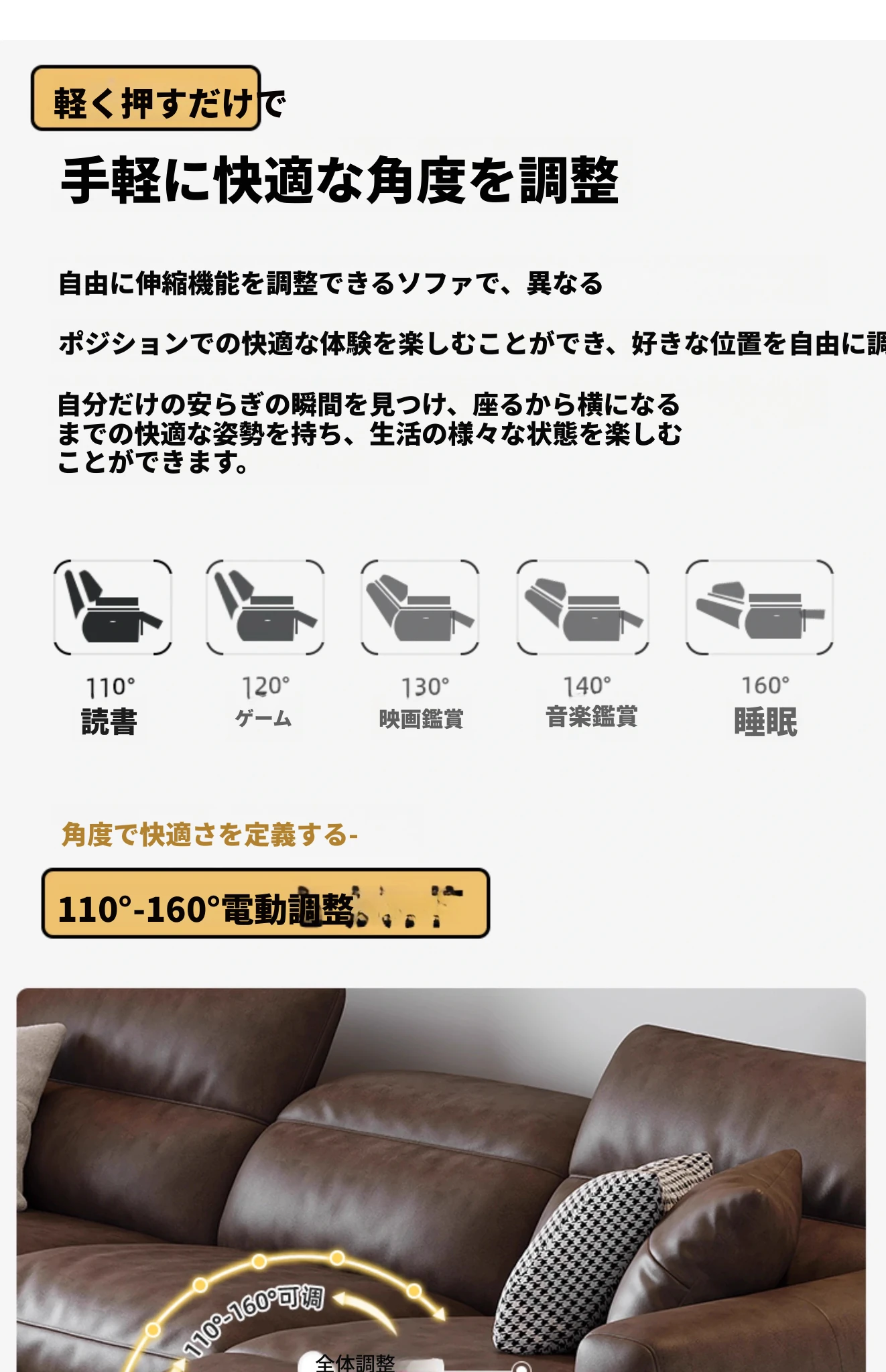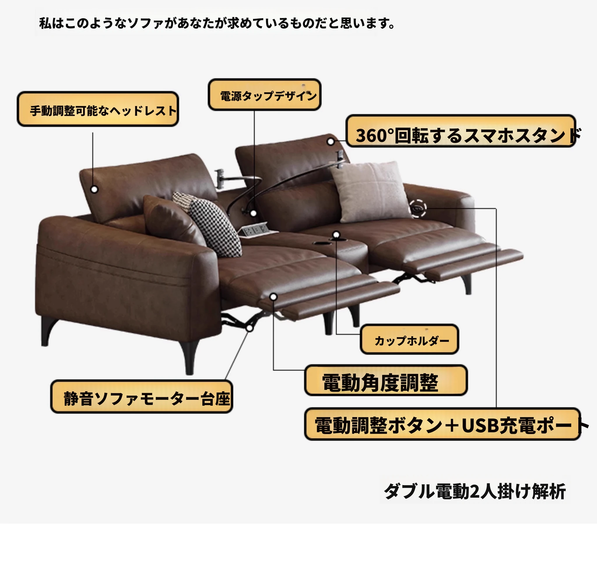 本革電動ソファー - イタリアンミニマルデザイン、壁にぴったりフィット、小型スペースに最適!調節可能なヘッドレストと伸縮機能を搭載した多機能ソファーで、快適なリビング空間を実現します。