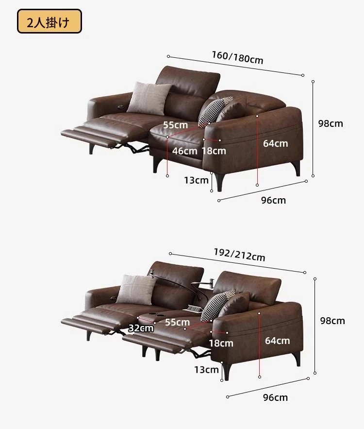 1.8m多人用(双電動)【S級輸入トップグレード牛革+45D高反発ウレタン+輸入天然木フレーム】
