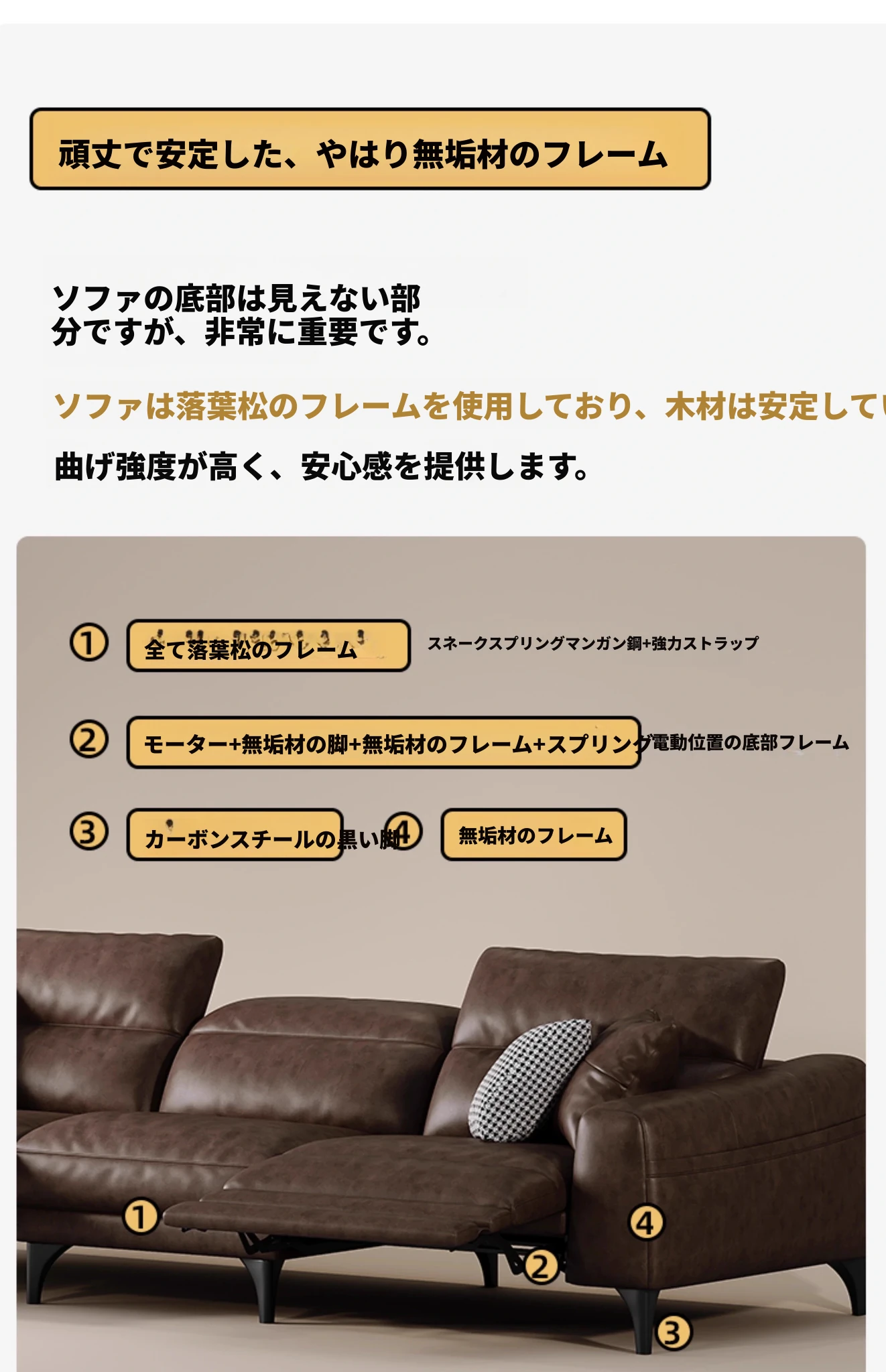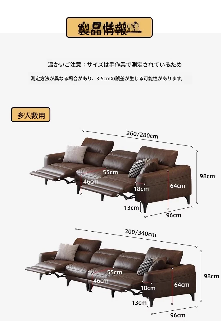 3.4m多人用(双電動)【S級輸入トップグレード牛革+45D高反発ウレタン+輸入天然木フレーム】