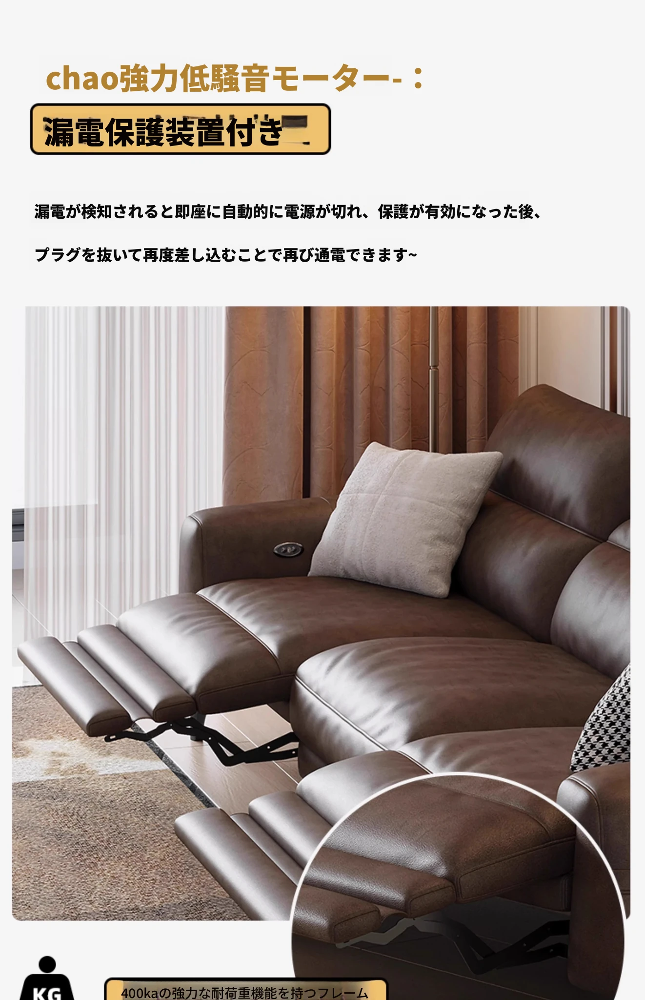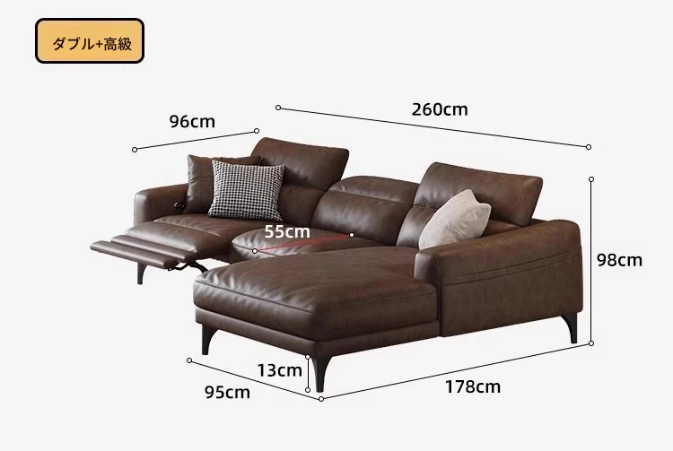 2.65m多人用+カウチ(単電動)【S級輸入トップグレード牛革+45D高反発ウレタン+輸入天然木フレーム】