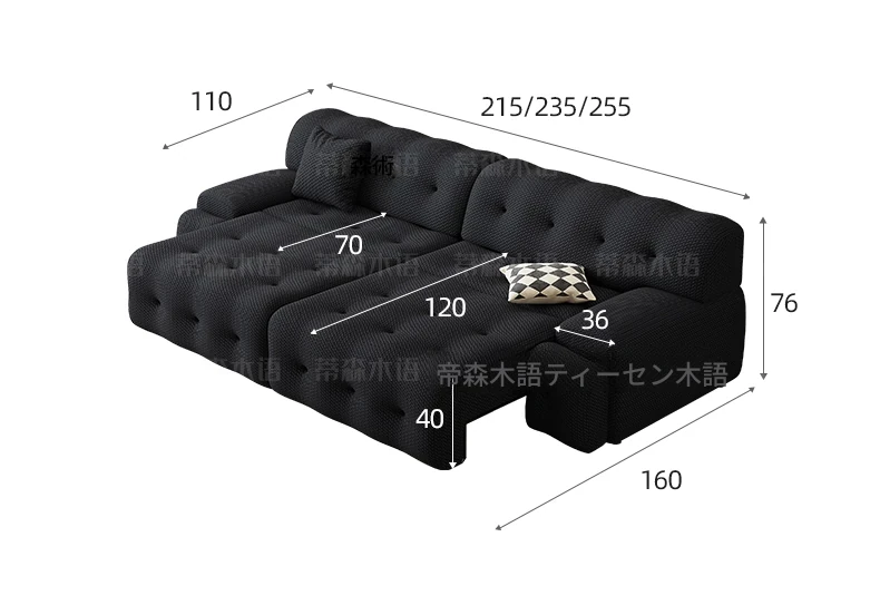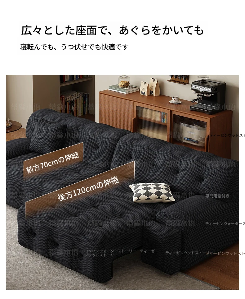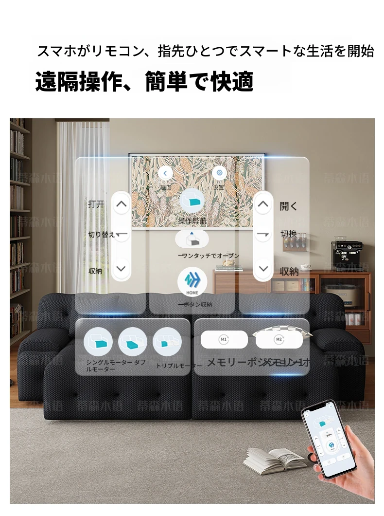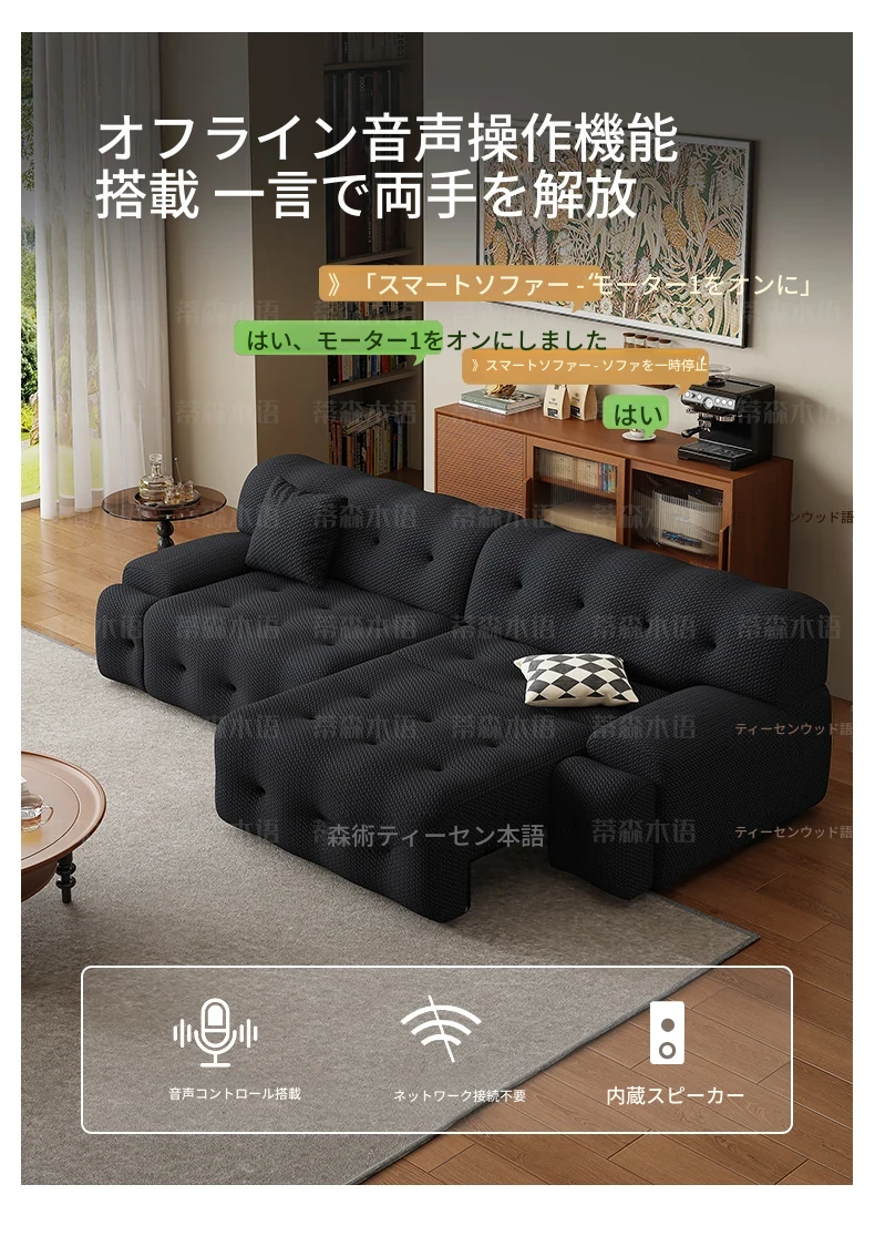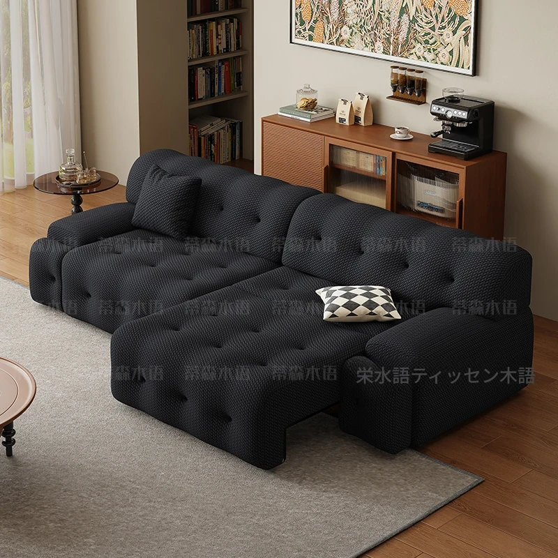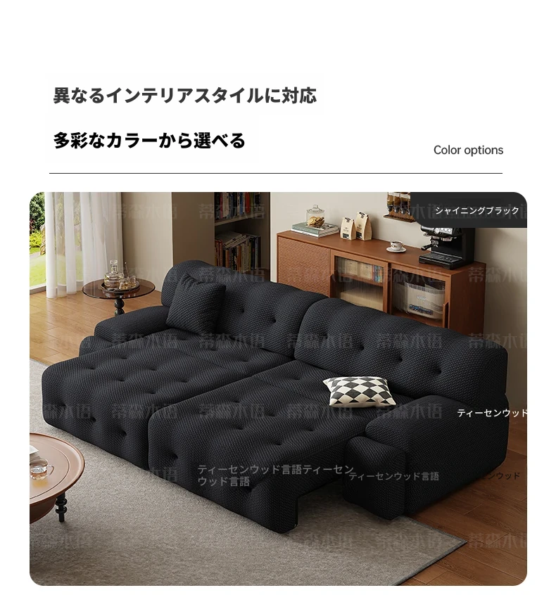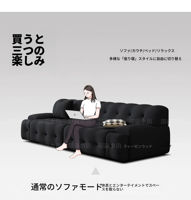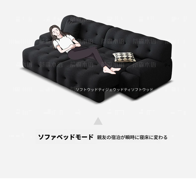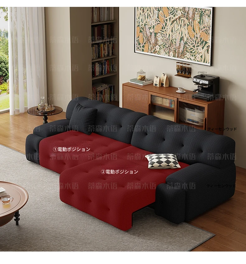 ロキバウ電動ソファベッド|調節可能で伸縮折りたたみ式の多機能イタリアンスタイルリビング用ブラックファブリックソファ|快適さとスタイルを両立した一品!