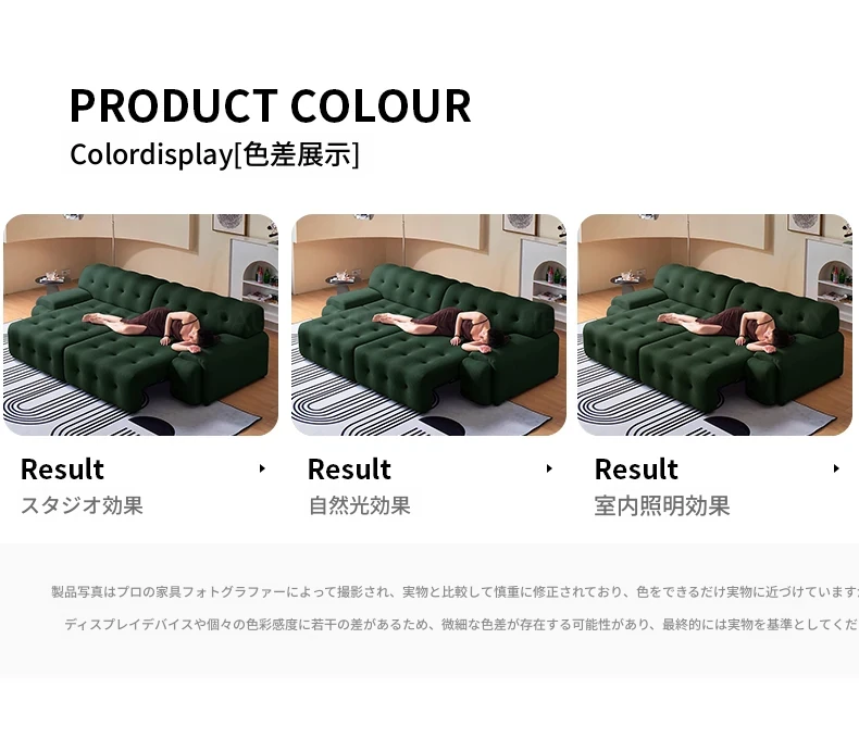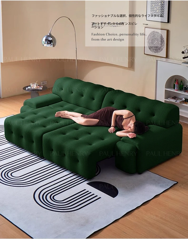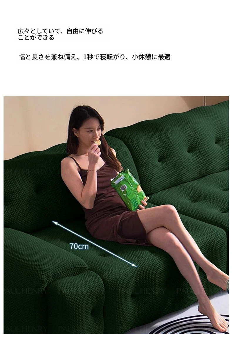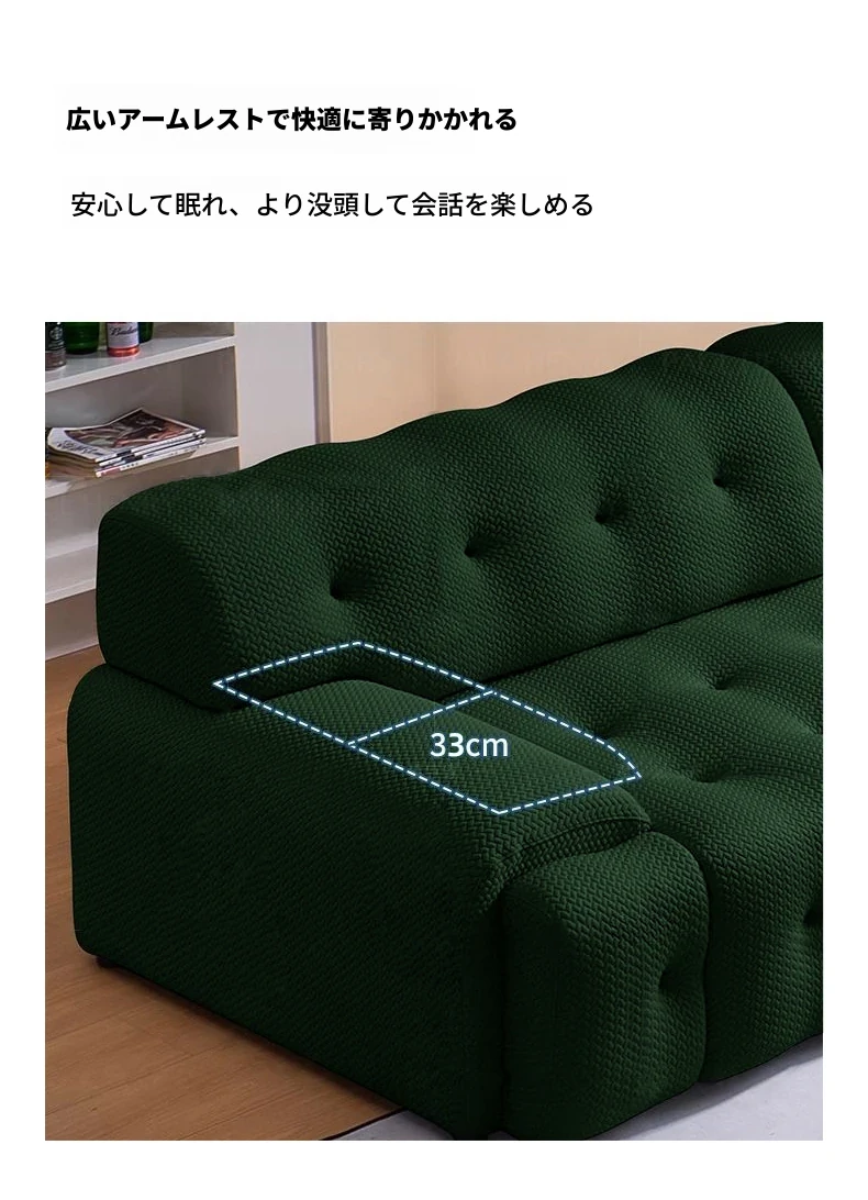 ロッキーバー 電動ソファベッド 2WAY リビング用 コンパクトな壁寄せ 小型住宅向け スライド機能付き グリーンのストレートファブリックソファで、快適な空間を演出!
