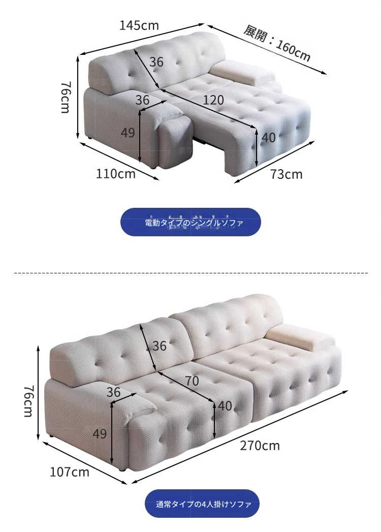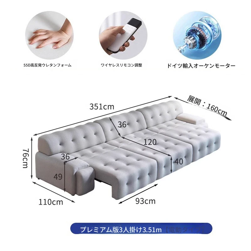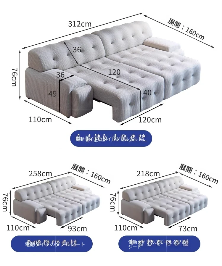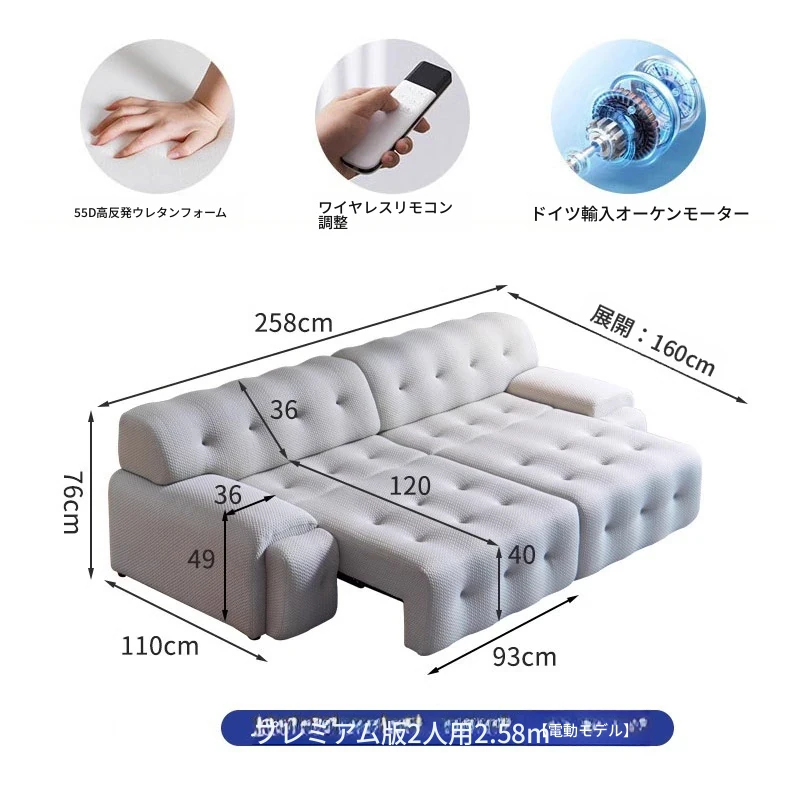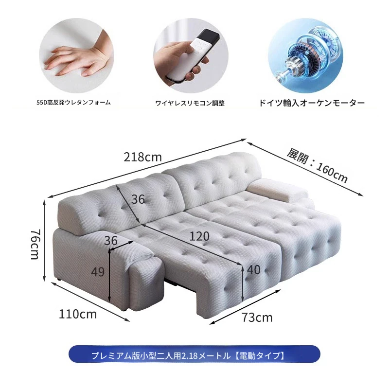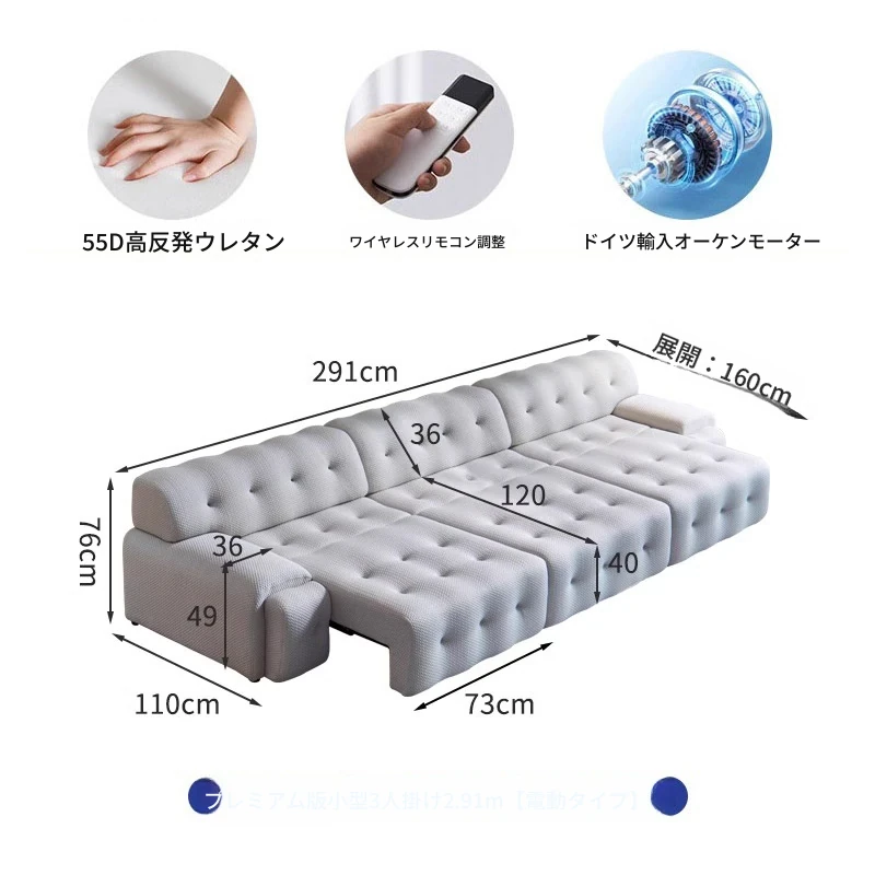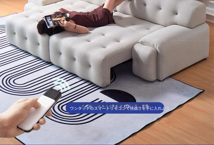 ロッキーバー電動ソファー - モダンでシンプルなデザイン、壁にぴったりフィットするコンパクトサイズ!伸縮機能付きで、狭い部屋でも快適に過ごせる布製ソファ!