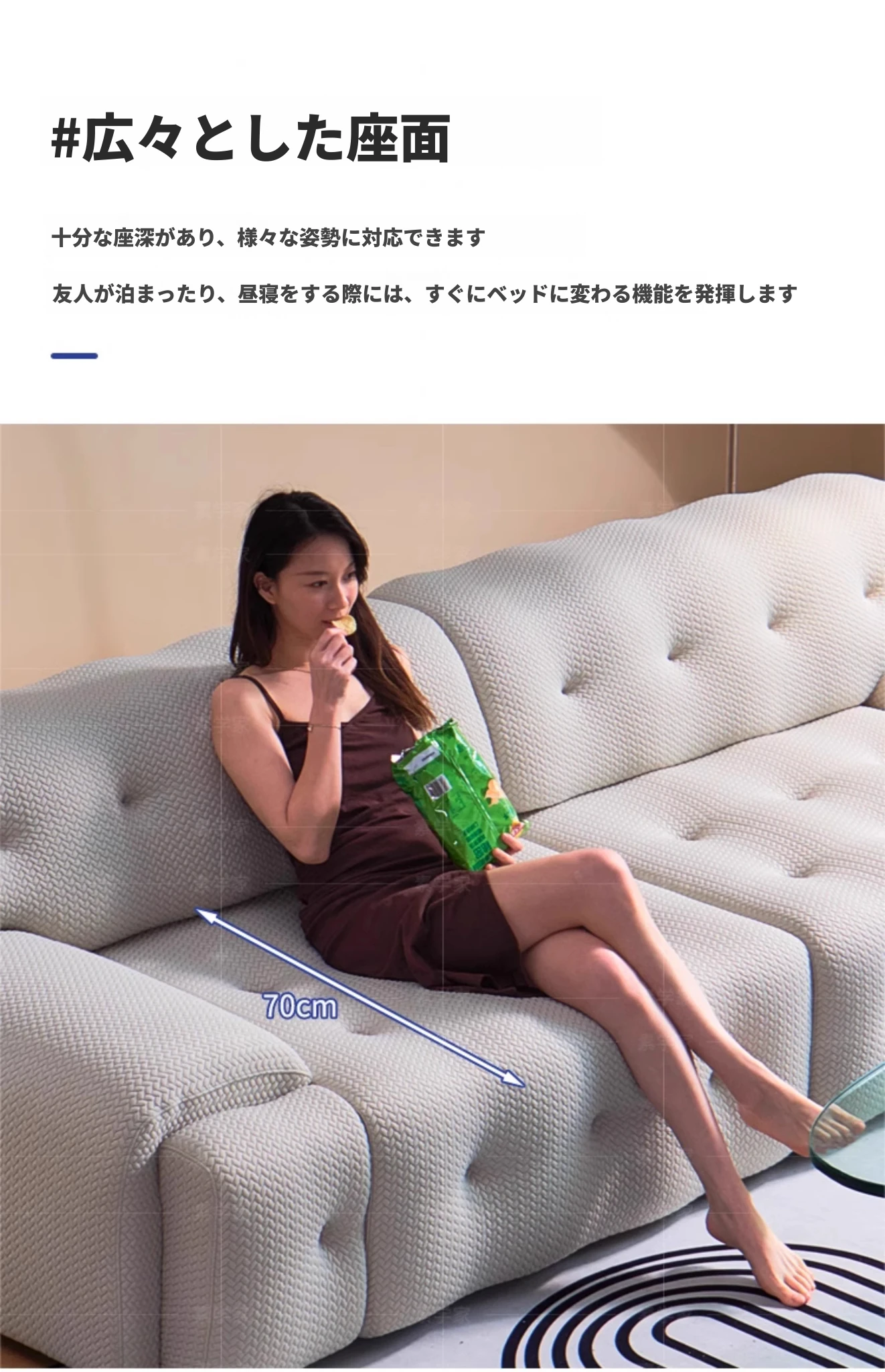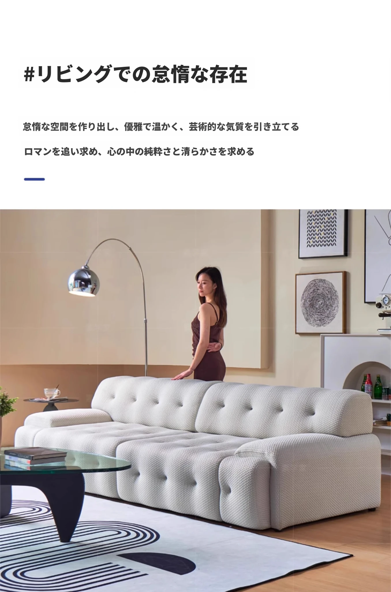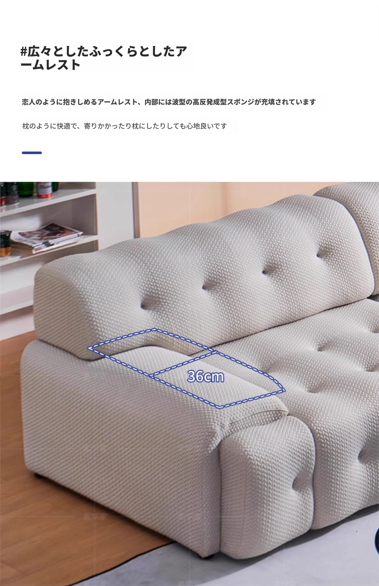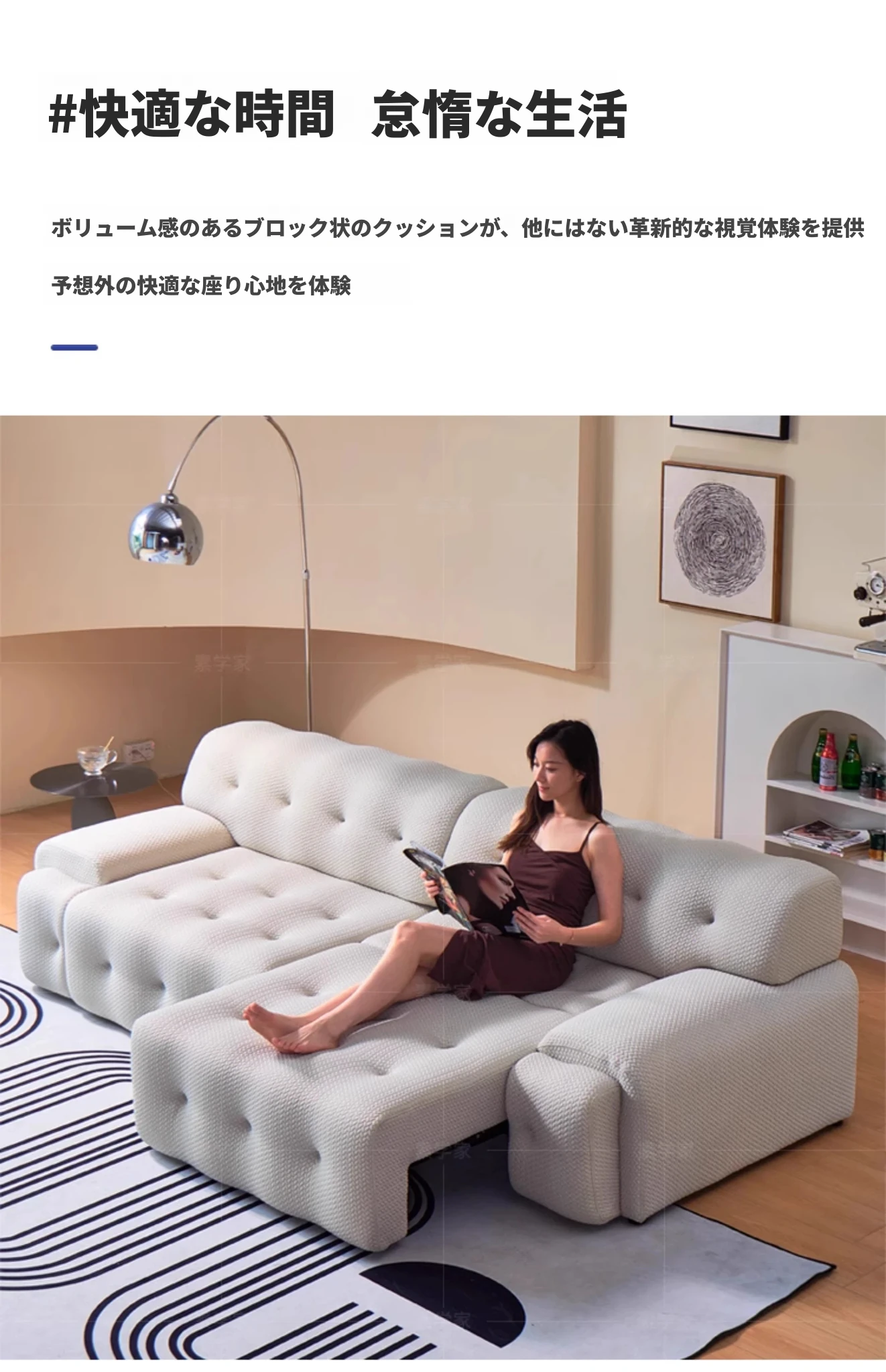 北欧スタイルのピエモンテソファー!ふわふわのラグジュアリーラムウール使用、豆腐ブロックデザインでリラックス空間を演出。モジュール式で自由に組み合わせ可能、インスタ映え間違いなしの快適リビングソファ!