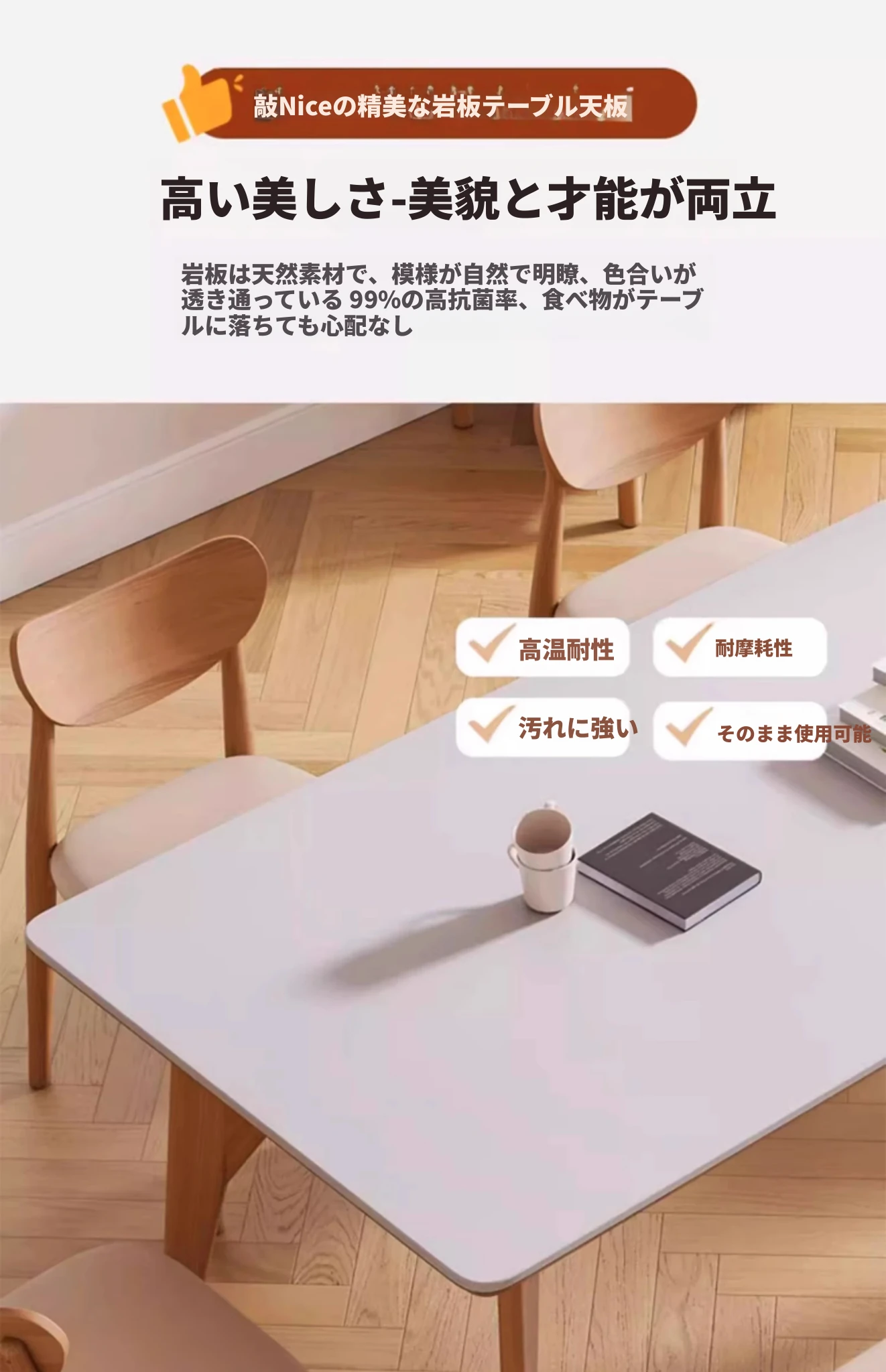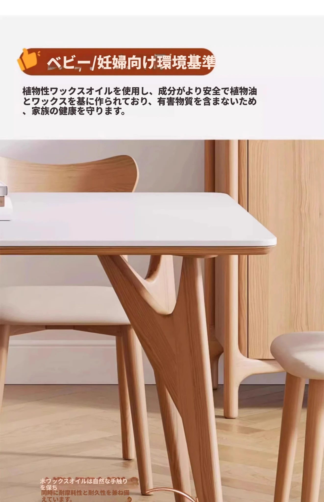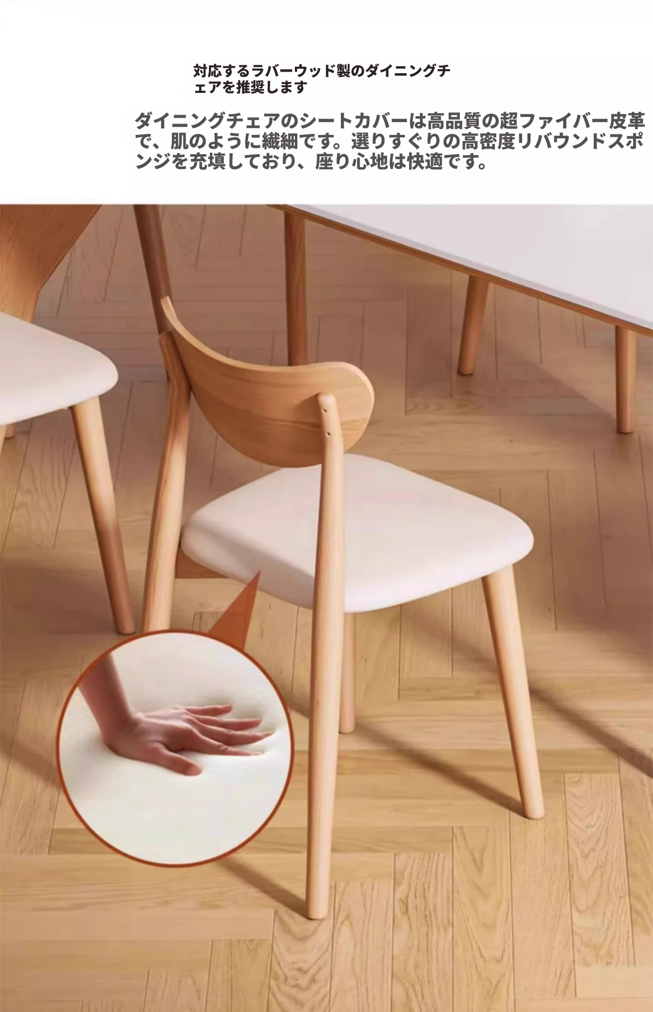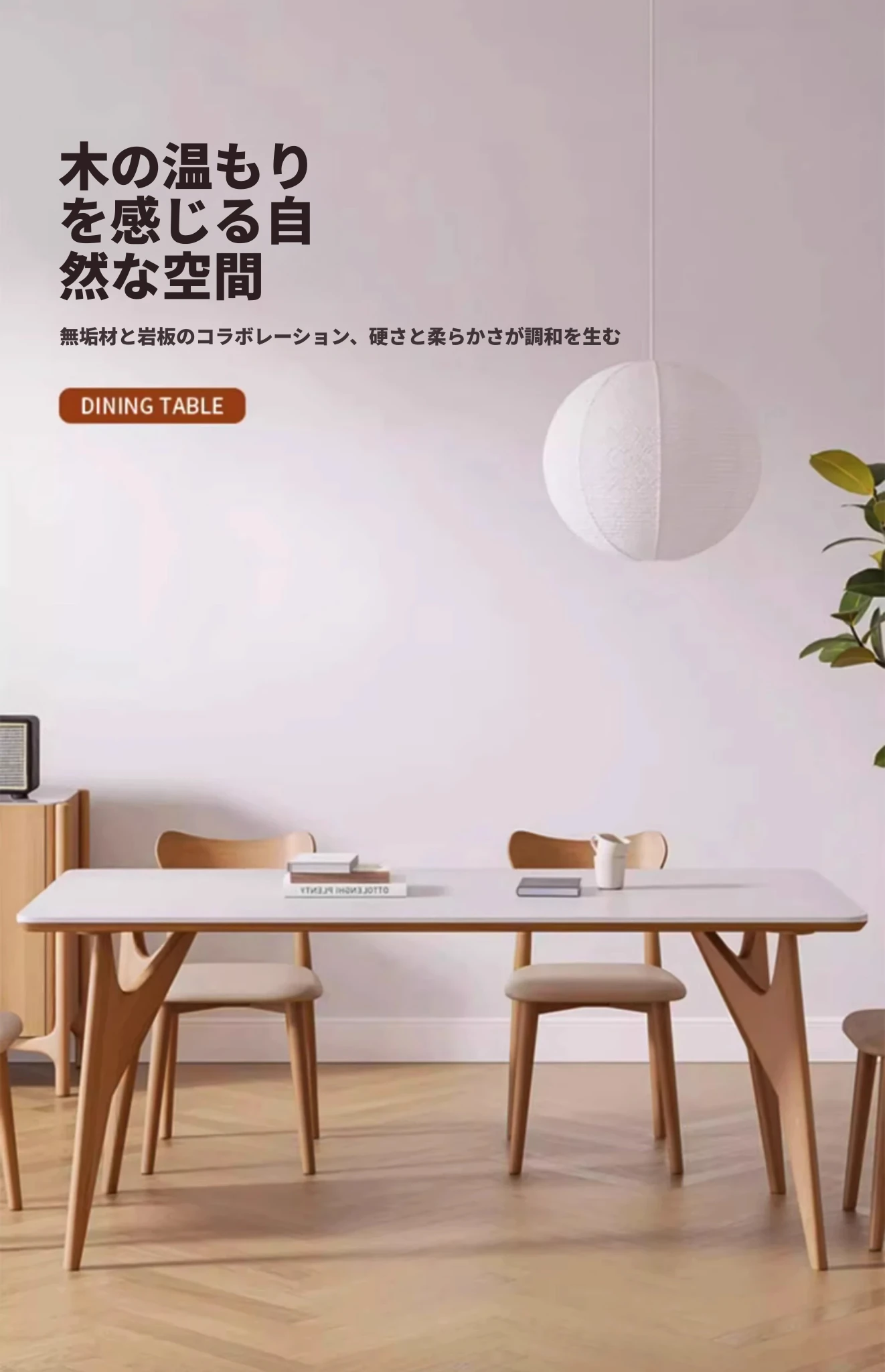 司朴岩板長テーブルとホワイトアッシュの椅子のセット - モダンでシンプルなデザイン、クリーミーな風合いの実木製。小さなスペースにもぴったり!おしゃれで機能的なダイニングセットで、快適な食卓を演出しましょう。