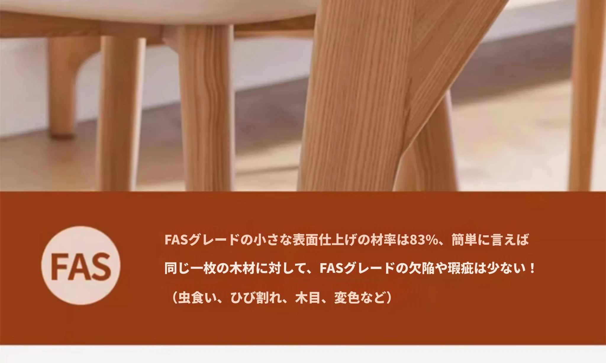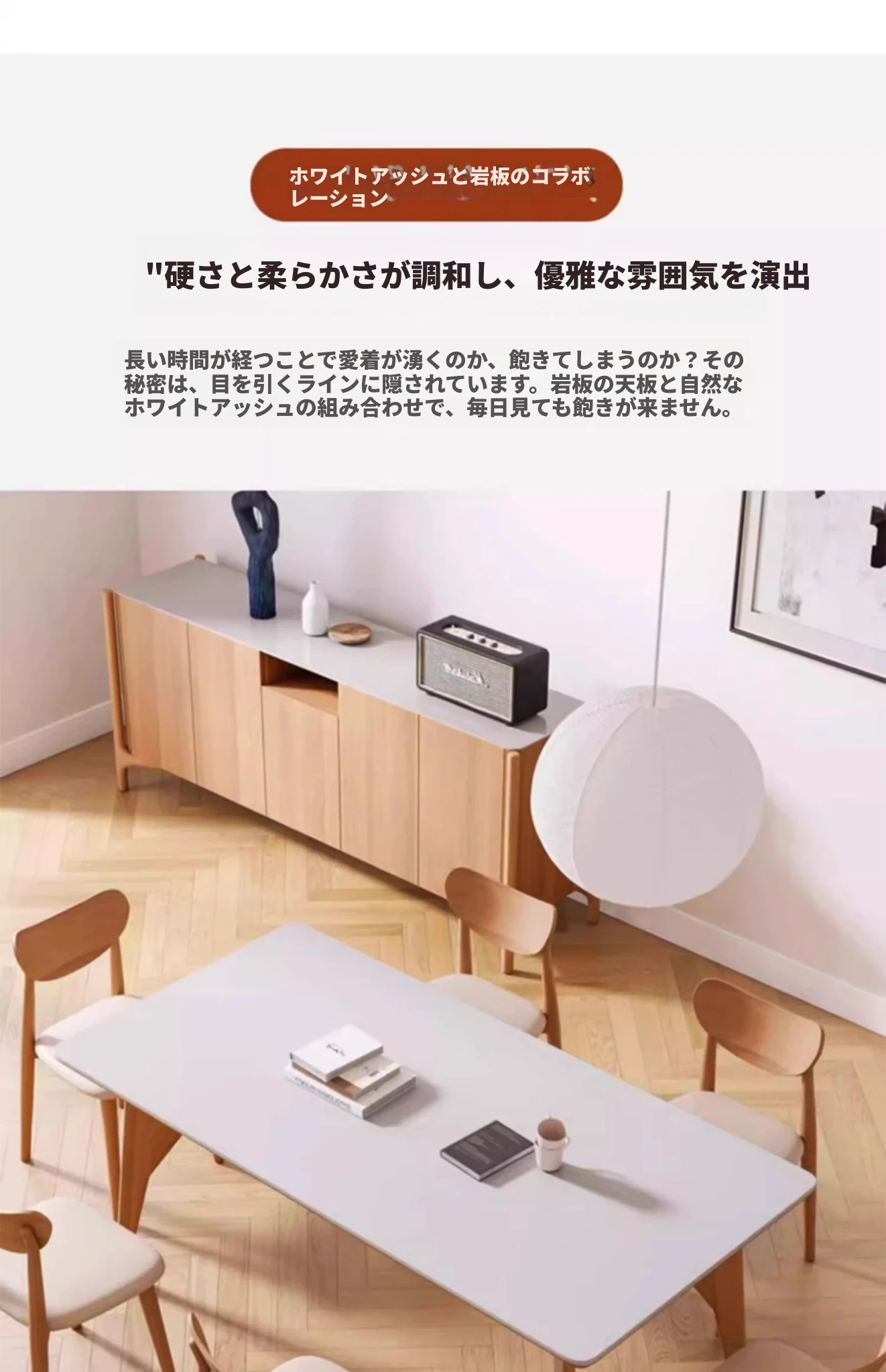 無垢岩板ダイニングテーブル FASグレードのホワイトアッシュ