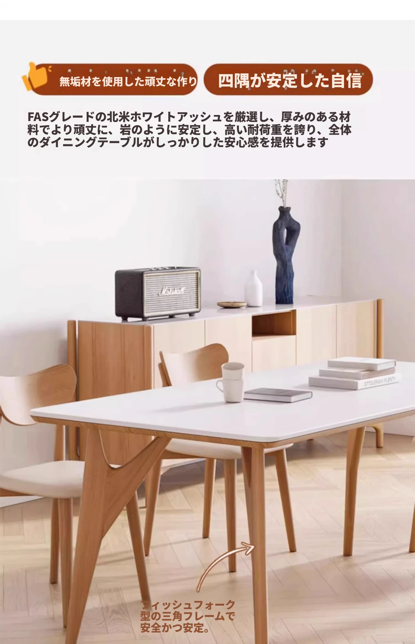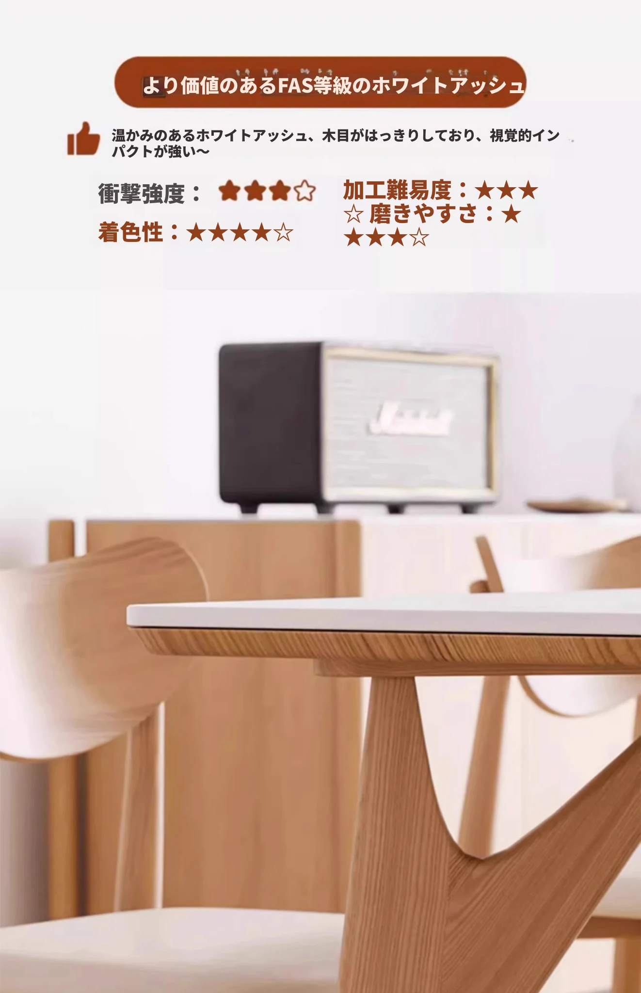 無垢岩板ダイニングテーブル+4脚 FASグレードのホワイトアッシュ