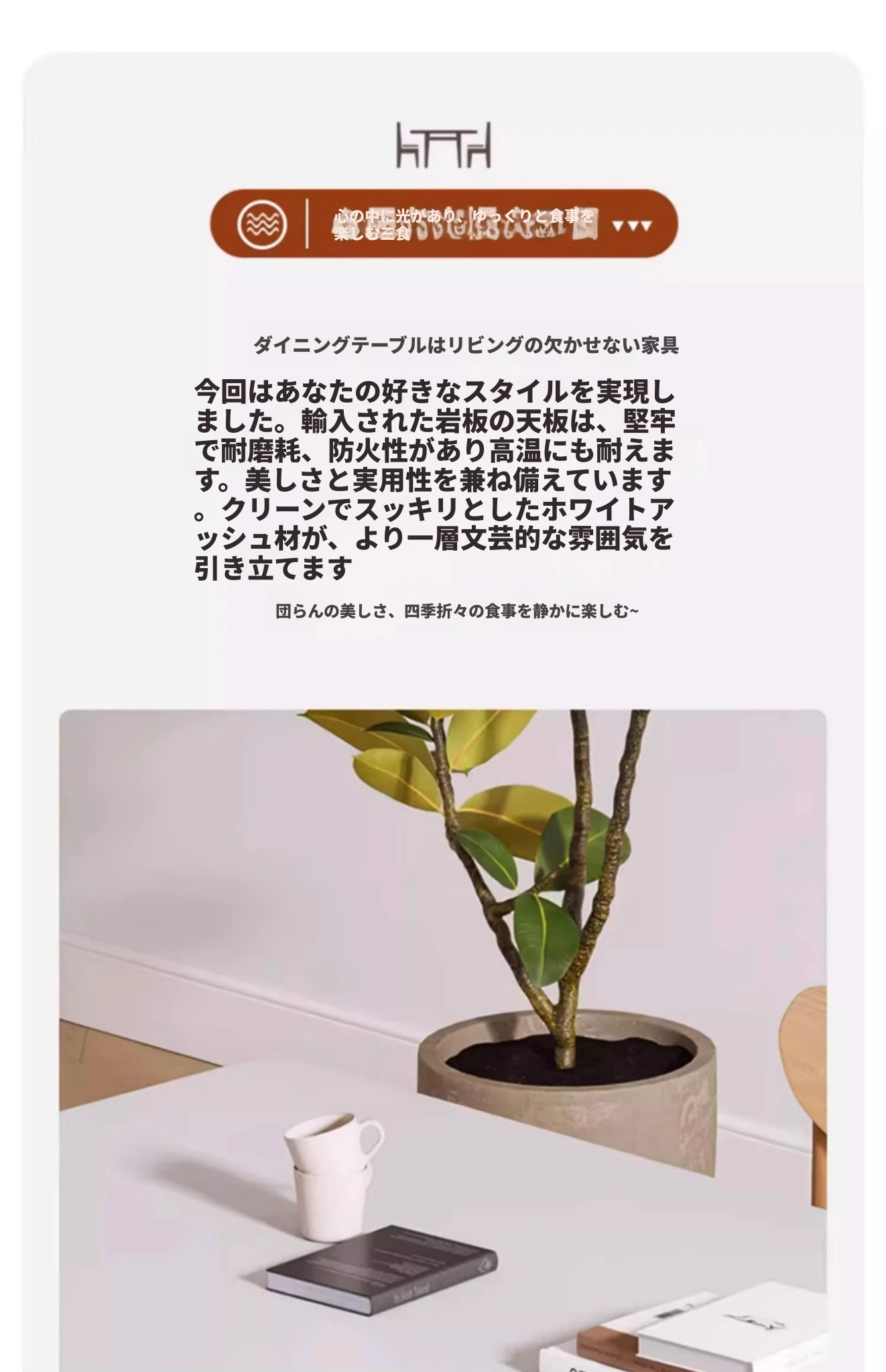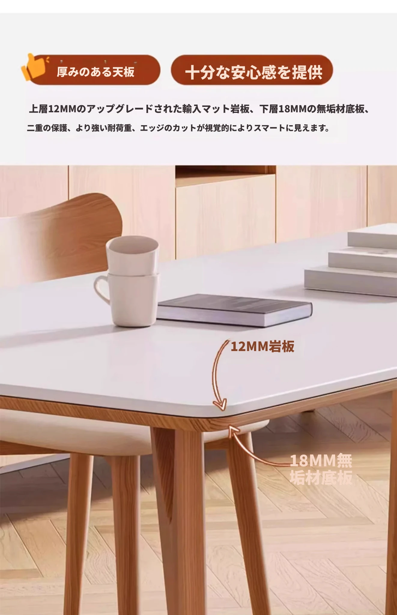 無垢岩板ダイニングテーブル+6脚 FASグレードのホワイトアッシュ