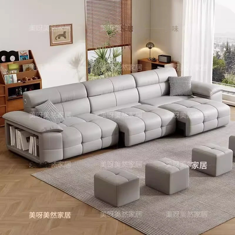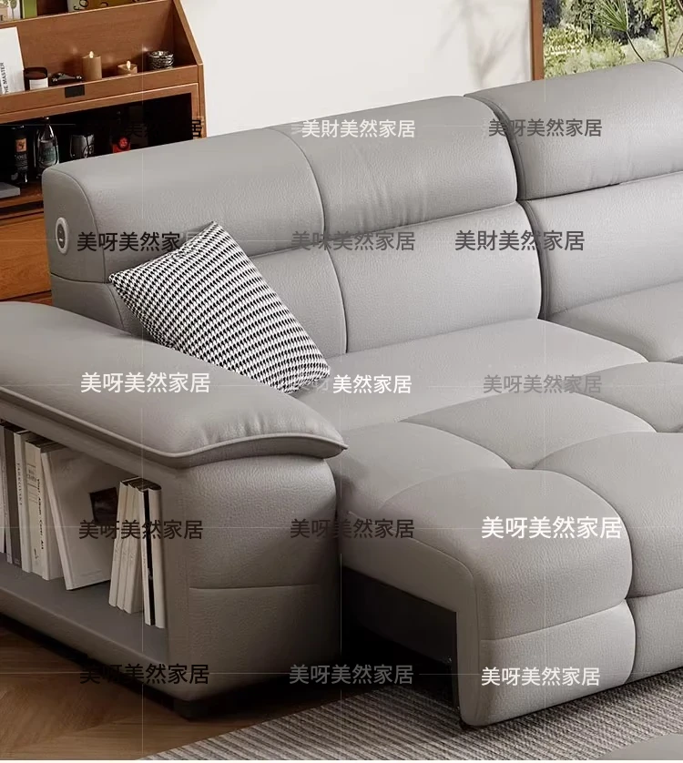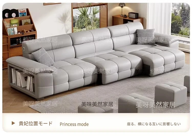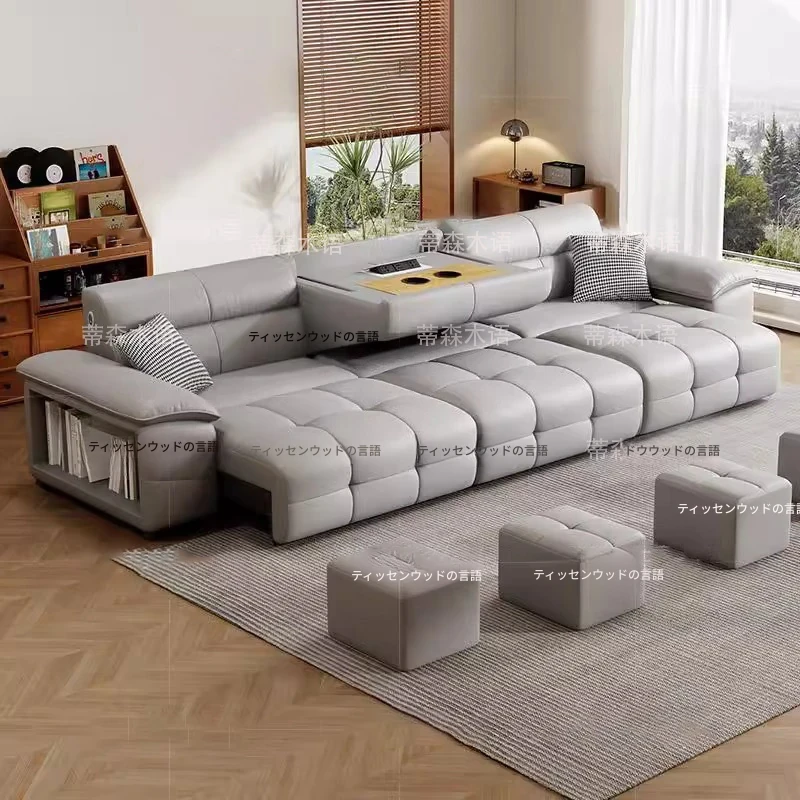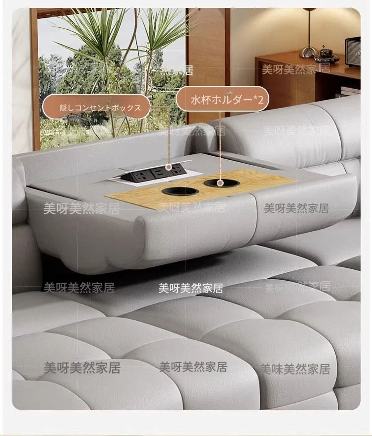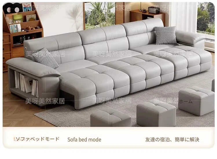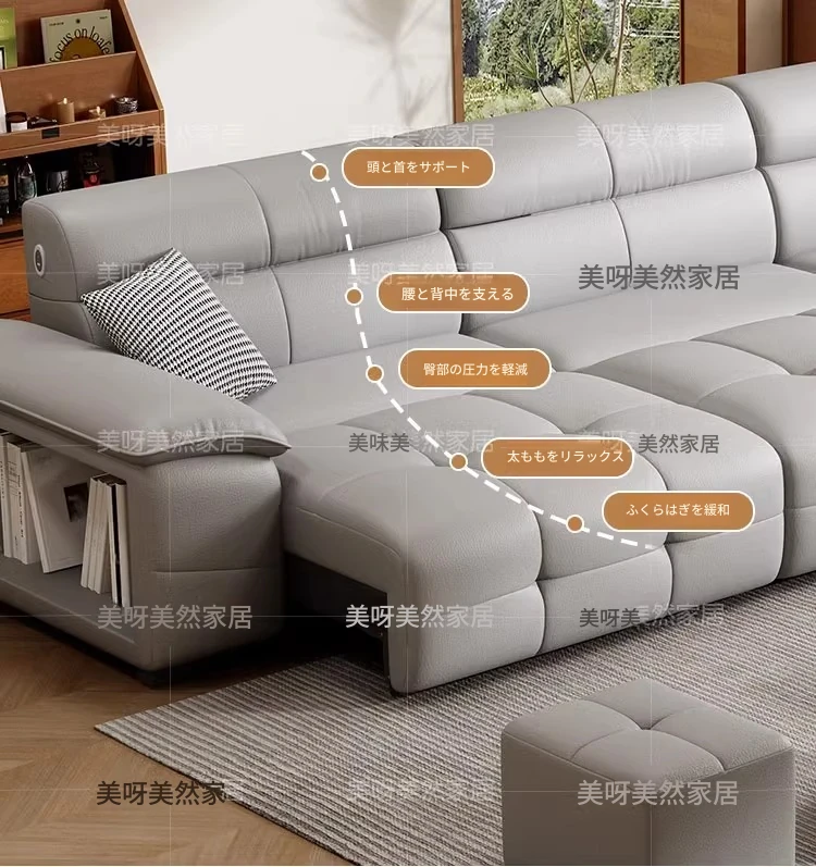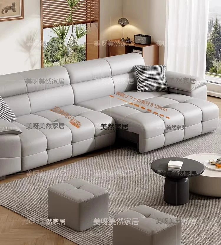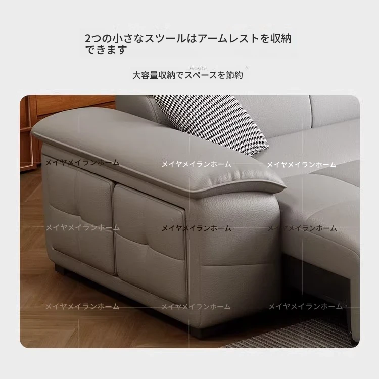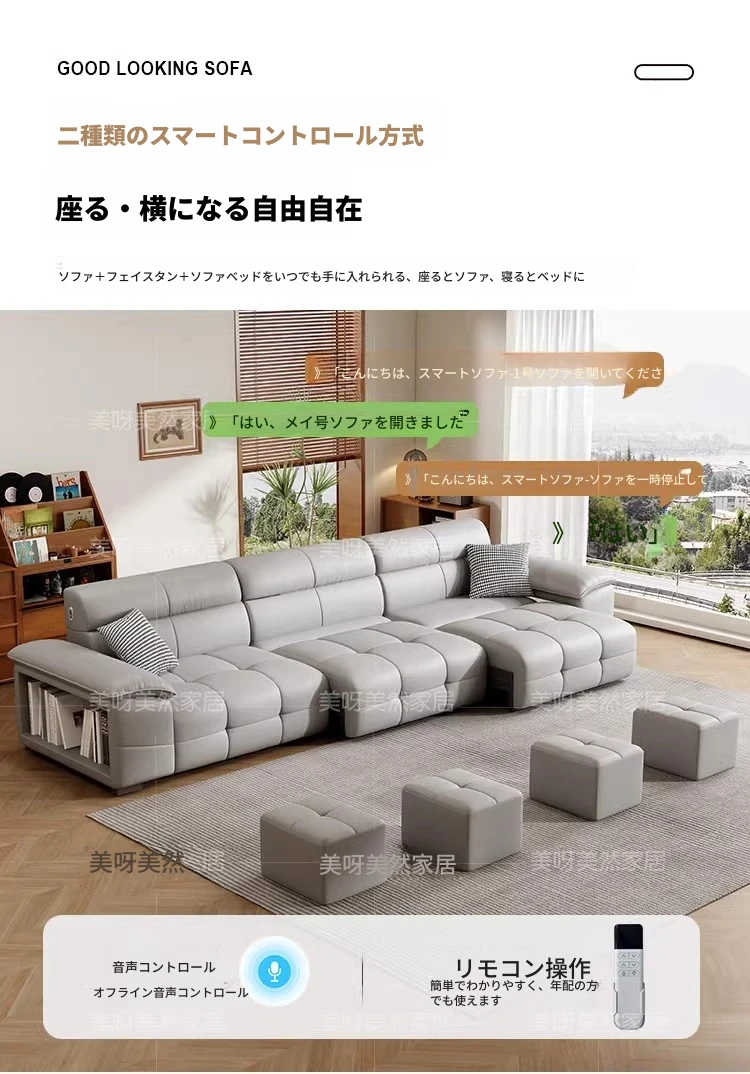 壁に寄りかからずに置ける!電動レザーソファベッド - リモコン操作&音声制御対応の多機能ソファベッド。伸縮自在で、リビングに最適なスタイリッシュなデザイン。快適な寝心地と機能性を両立した一品!