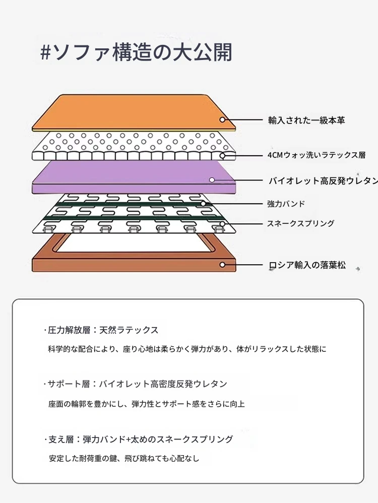 接触面本革 +Airエアコットン+水洗ラテックス+バイオレットスポンジ