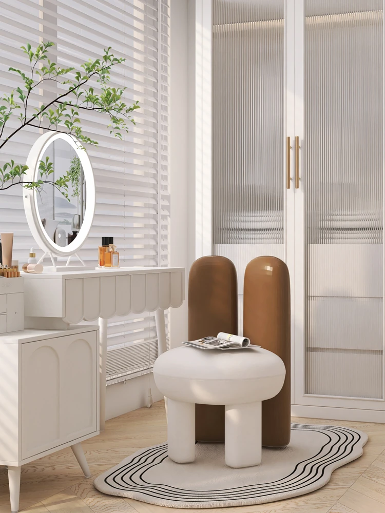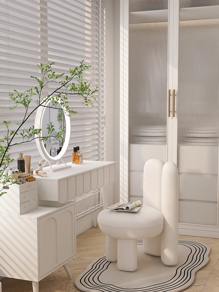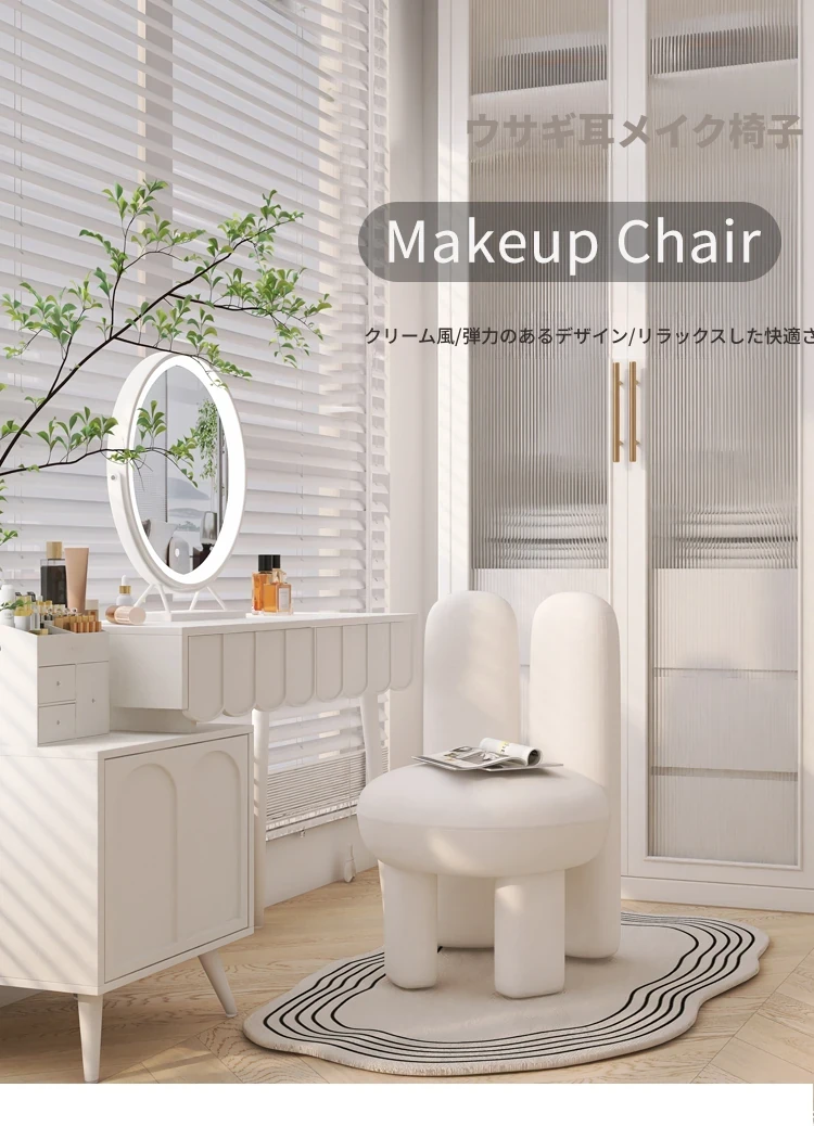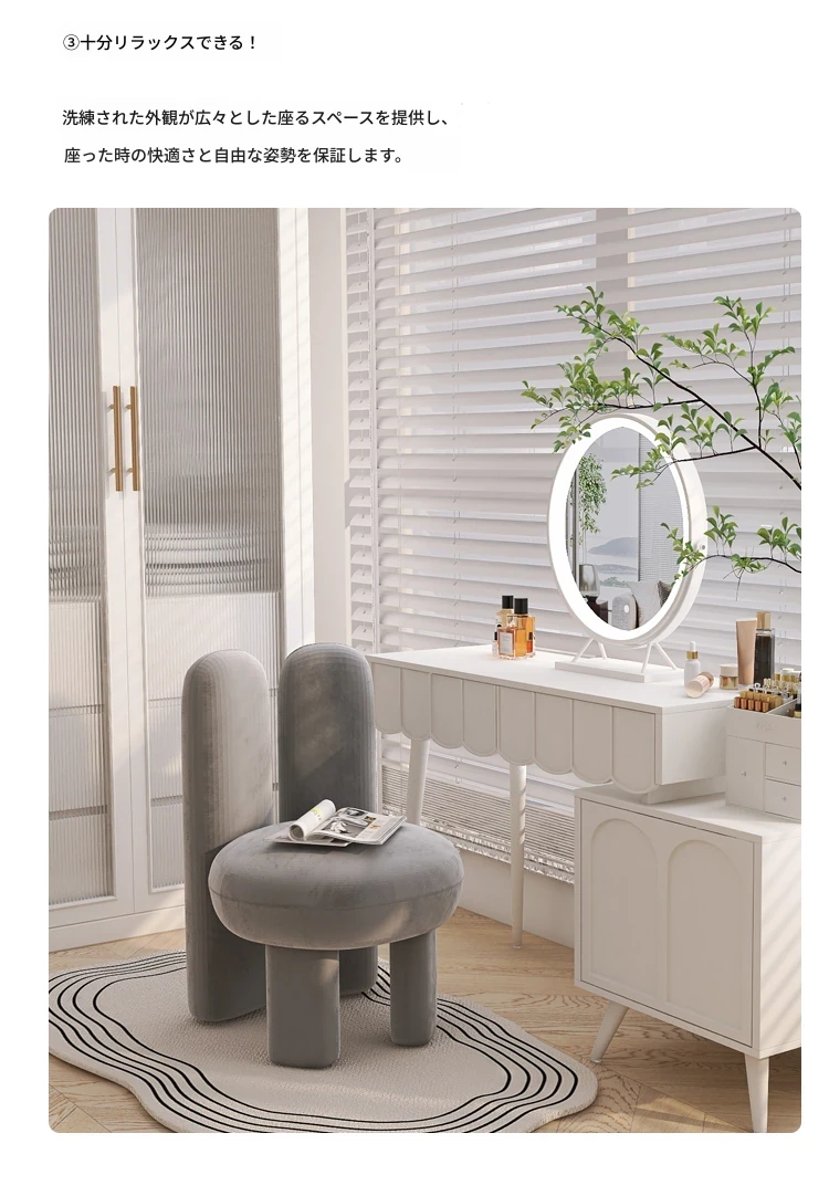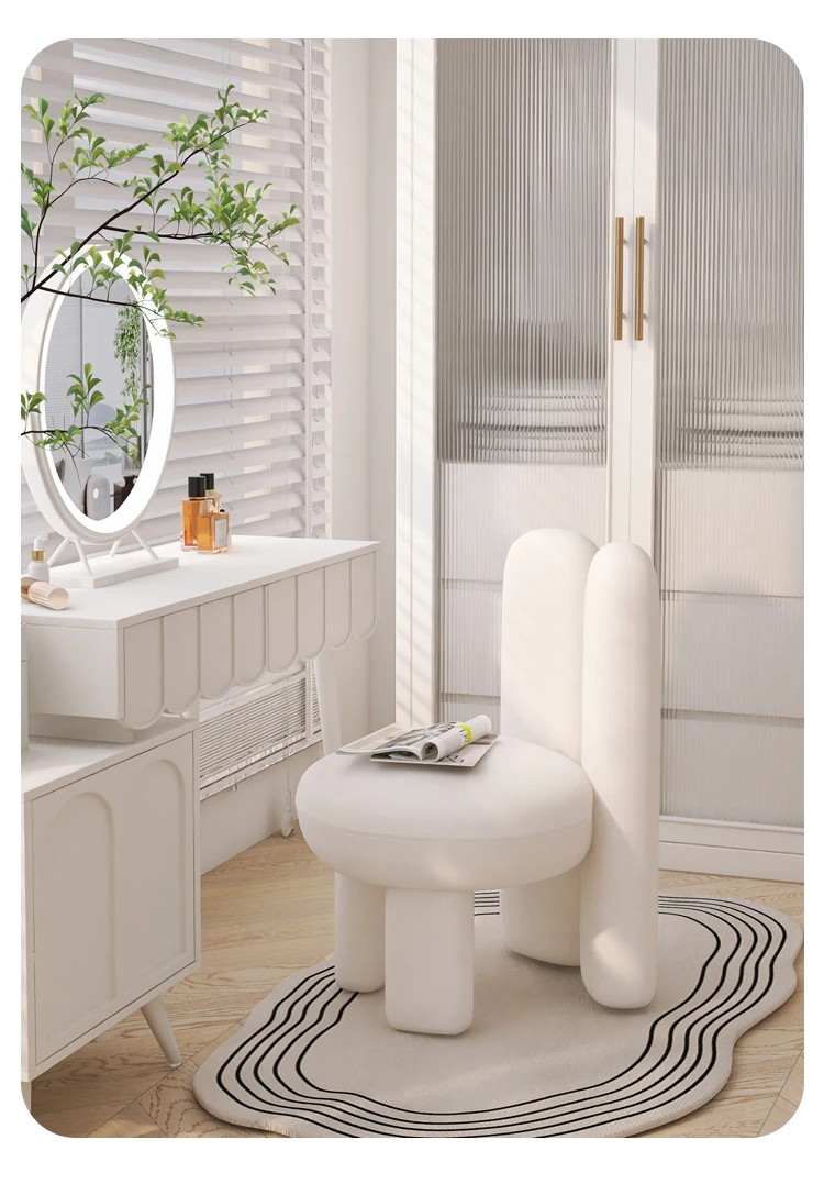 人気のメイクアップチェア!クリーム風デザインのモダンでシンプルな軽奢スタイル。おしゃれな寝室にぴったりな個性的なドレッシングスツール。