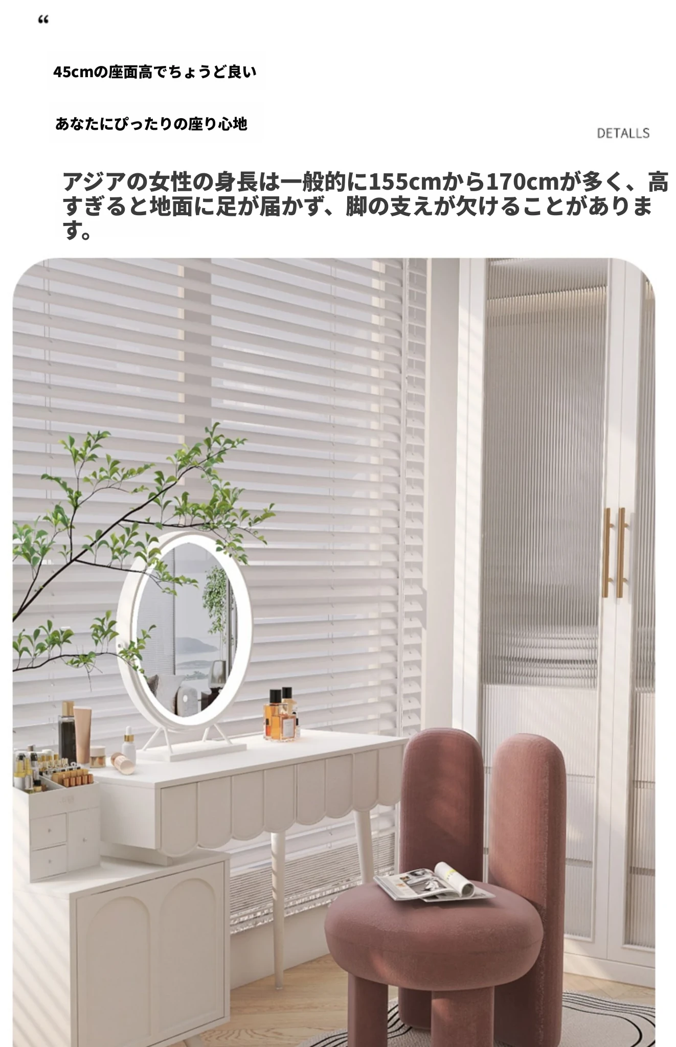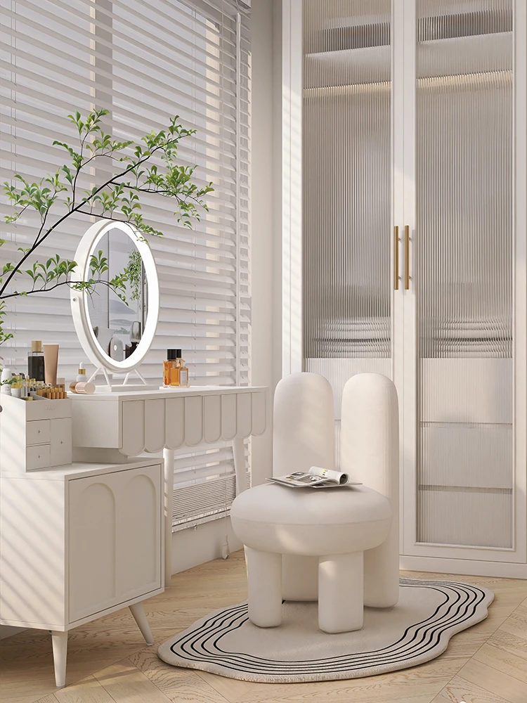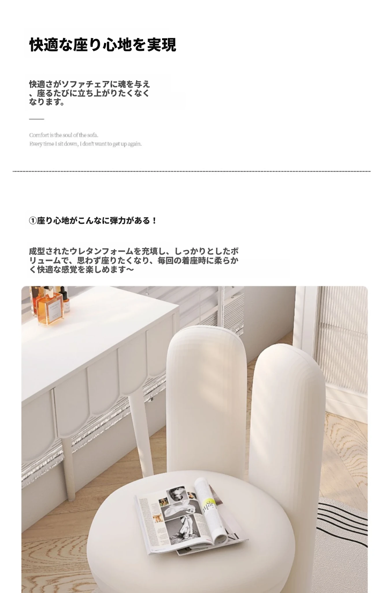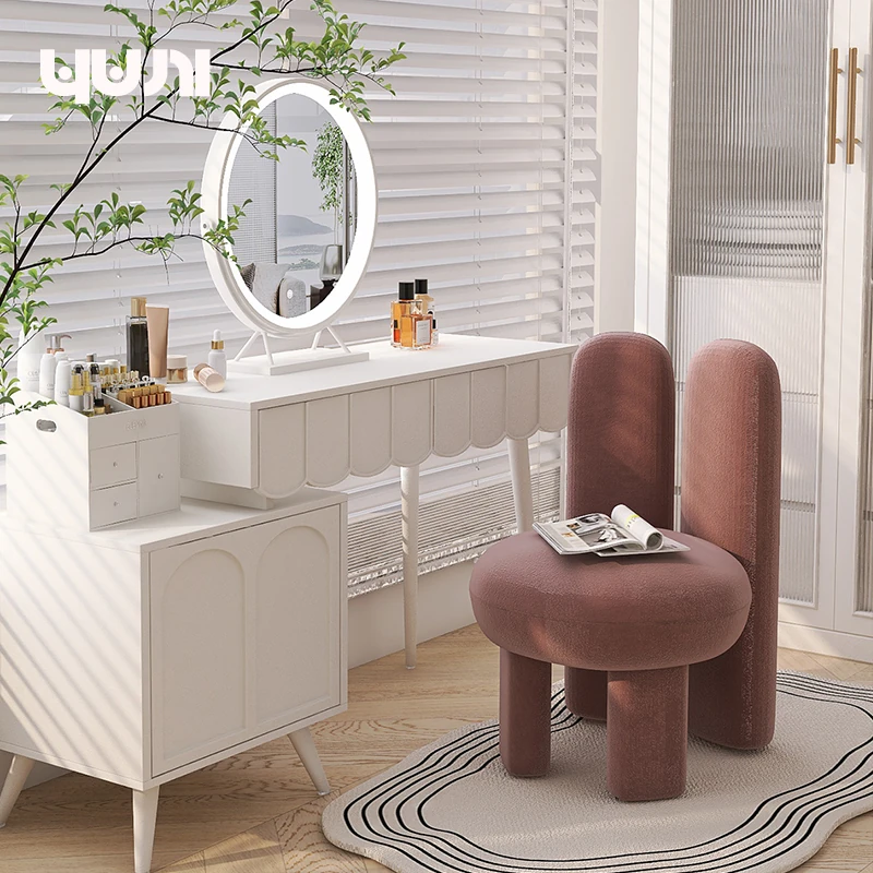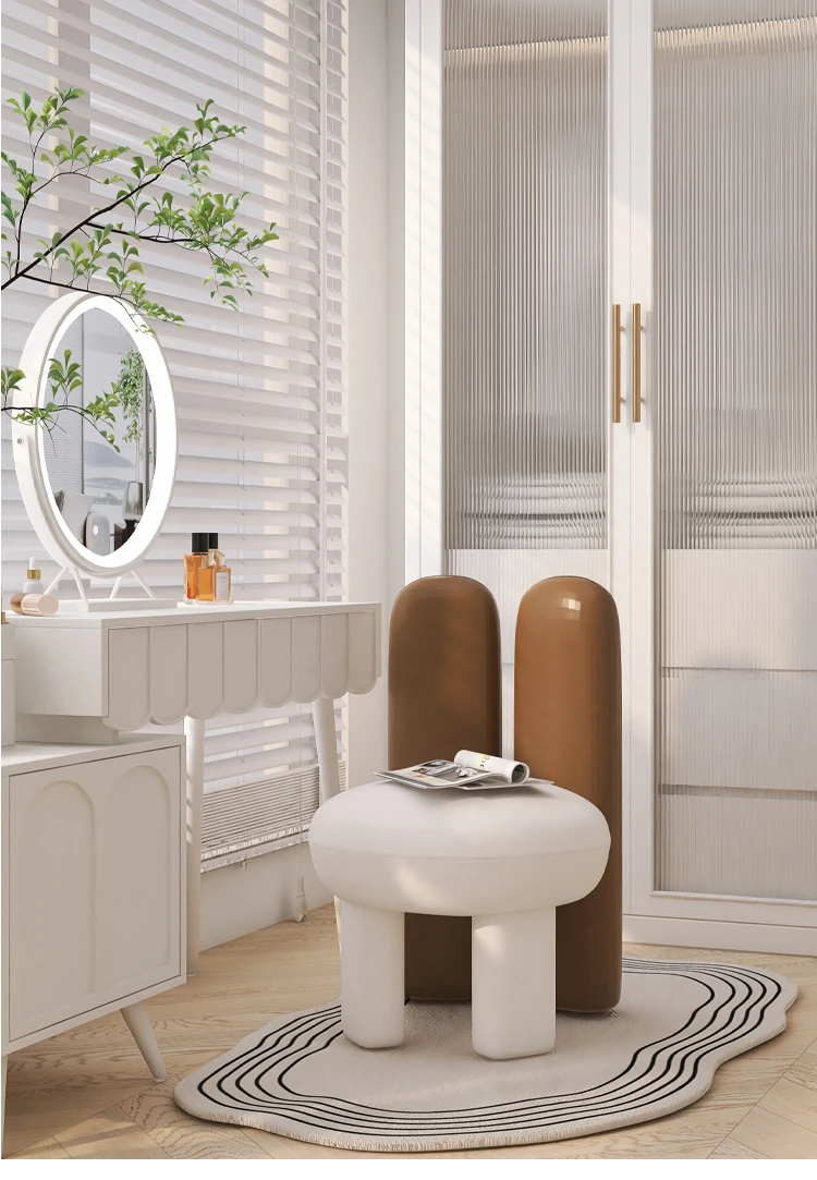 人気のメイクアップチェア!クリーム風デザインのモダンでシンプルな軽奢スタイル。おしゃれな寝室にぴったりな個性的なドレッシングスツール。