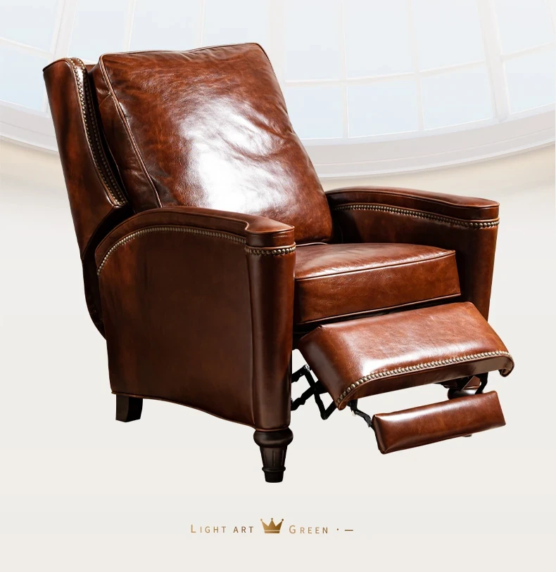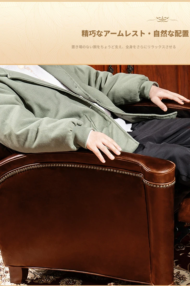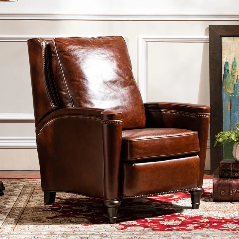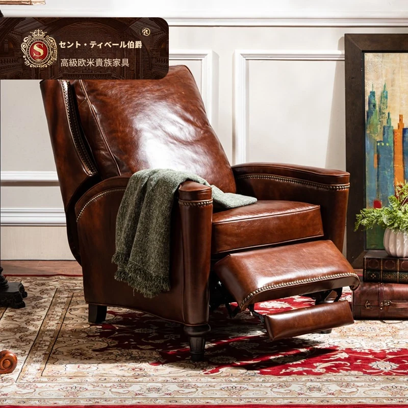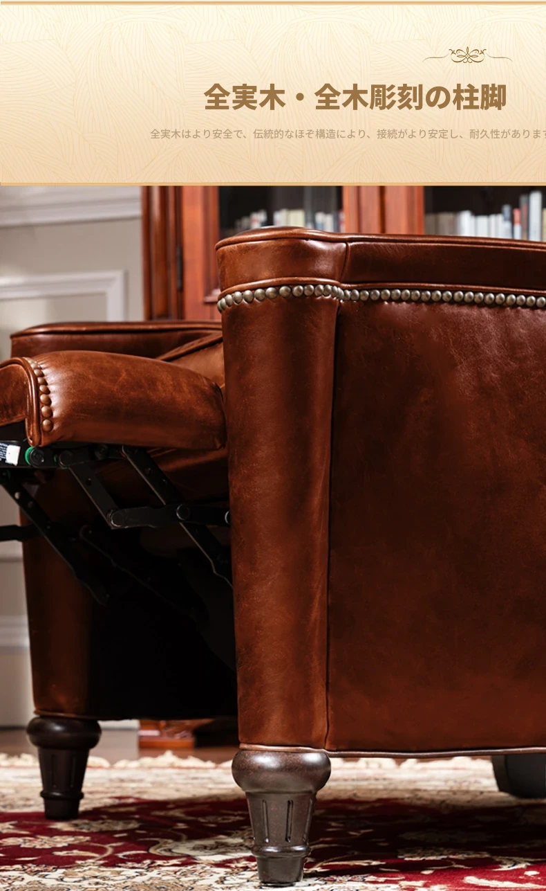 アメリカンカントリースタイルのレトロリビングソファ&リクライニングチェア、書斎にぴったりな自動デザインのトラチェア。上質な本革を使用した贅沢なリラックスチェアで、居心地抜群のひとときをお楽しみください。
