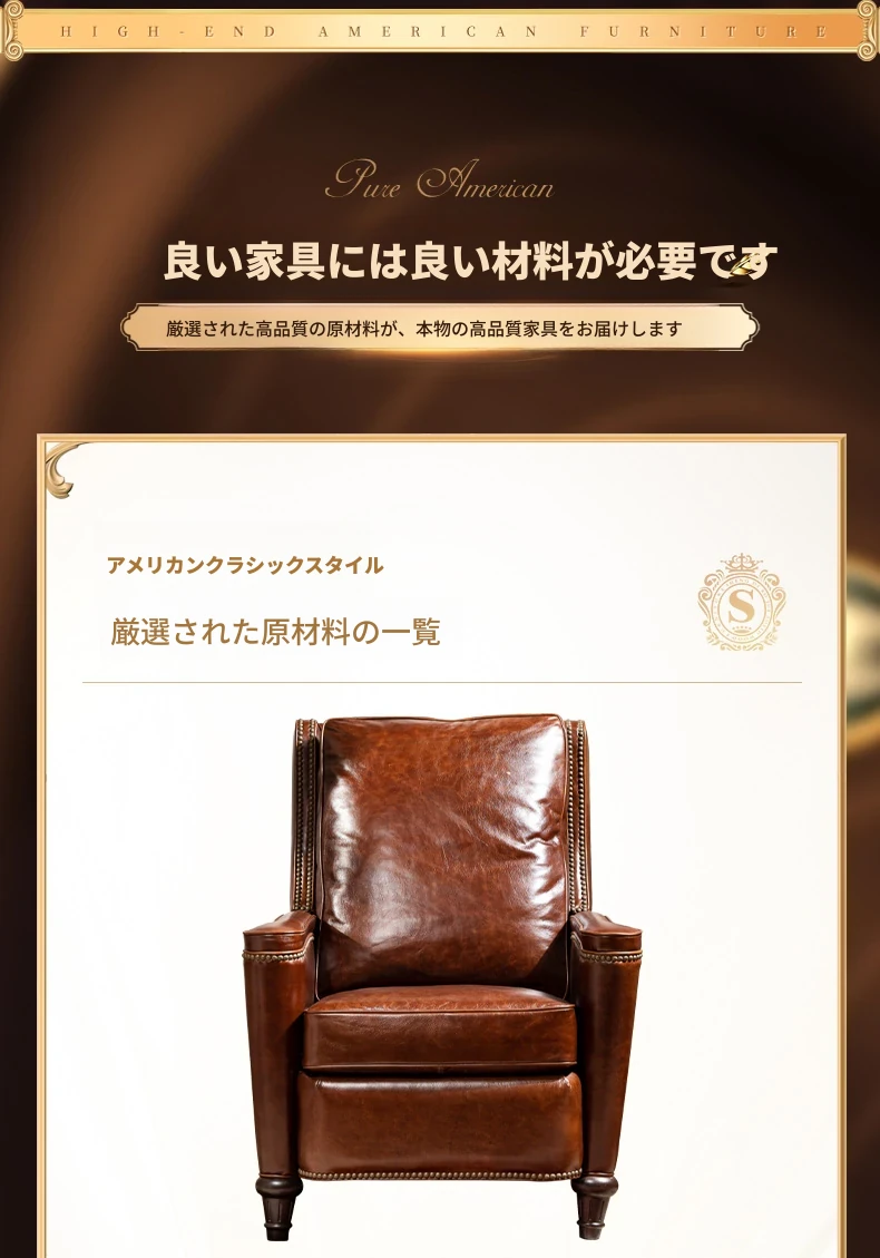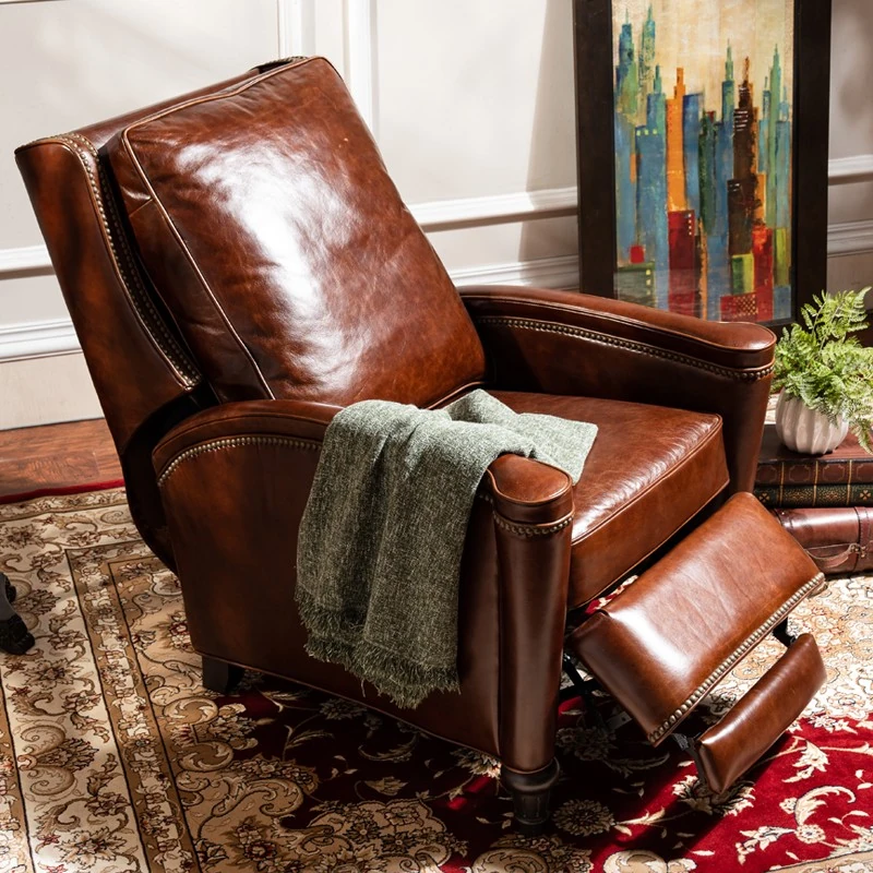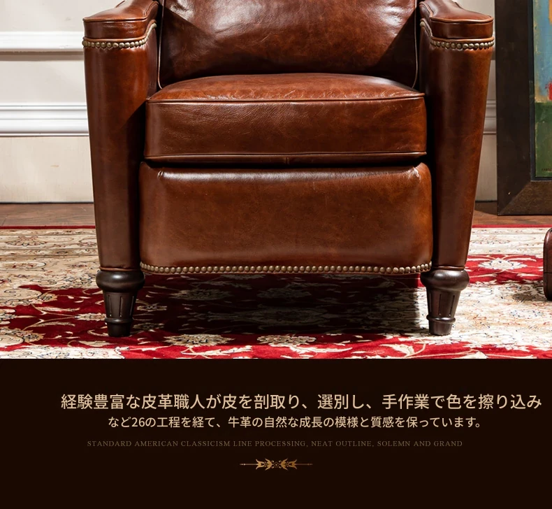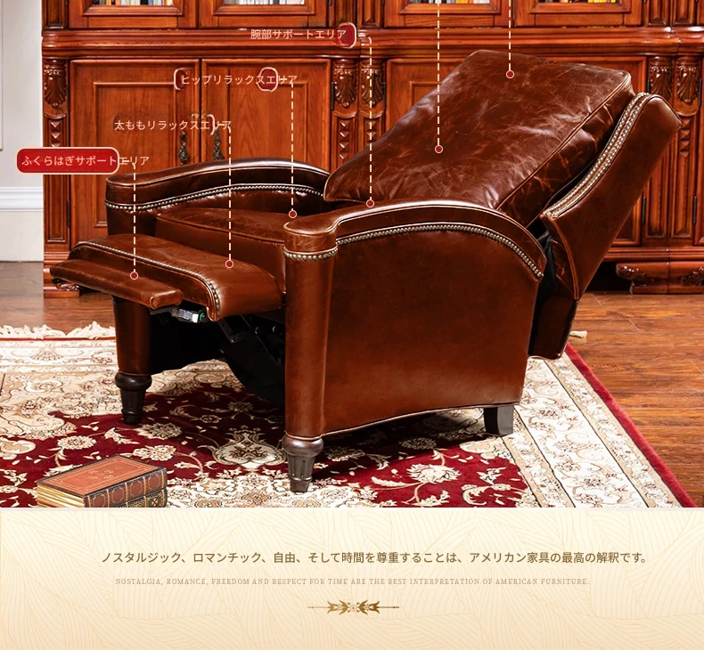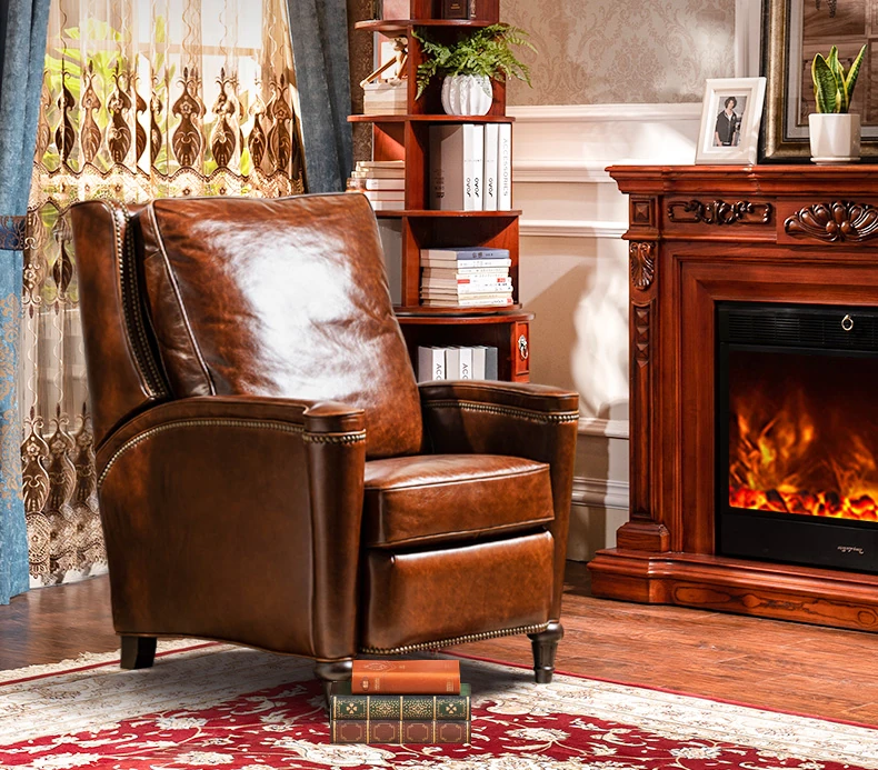 アメリカンカントリースタイルのレトロリビングソファ&リクライニングチェア、書斎にぴったりな自動デザインのトラチェア。上質な本革を使用した贅沢なリラックスチェアで、居心地抜群のひとときをお楽しみください。