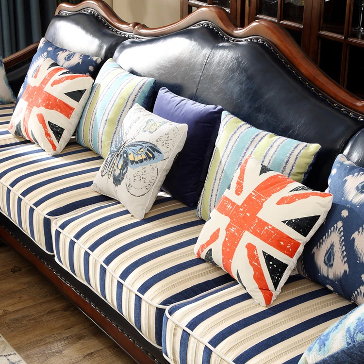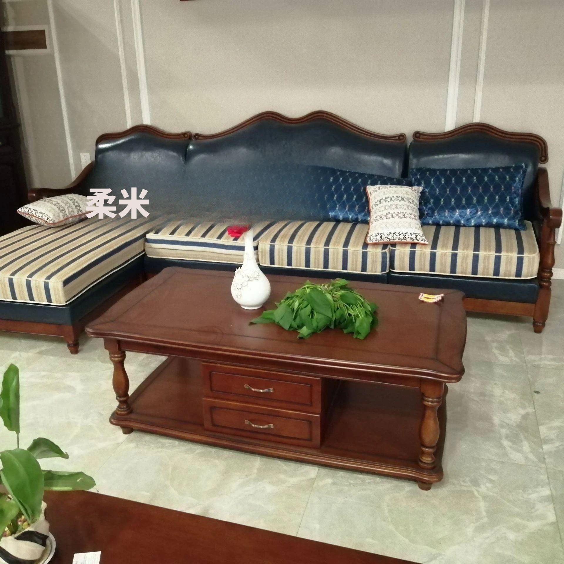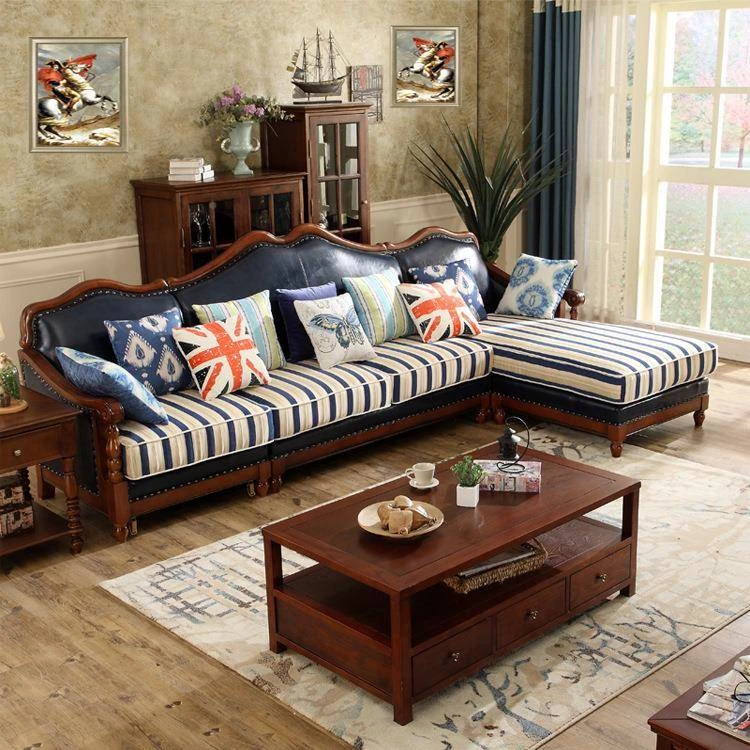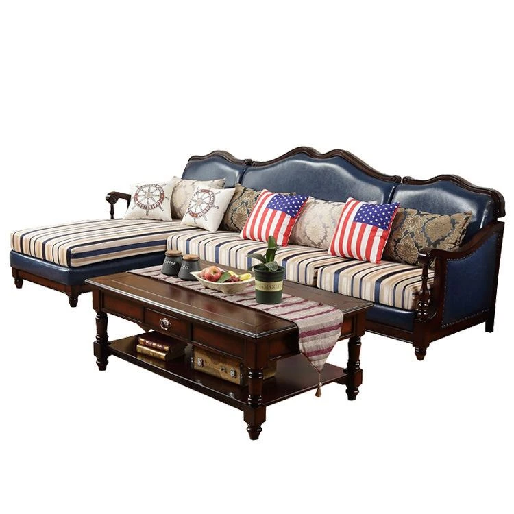 アメリカンヴィンテージスタイルの木製ソファ - 高級ファブリックと本革のコンビネーション、コンパクトな設計で狭いリビングにも最適!1838高の魅力的なインテリア家具で、居心地の良い空間を演出します。