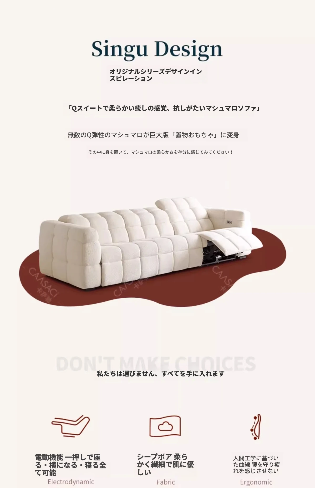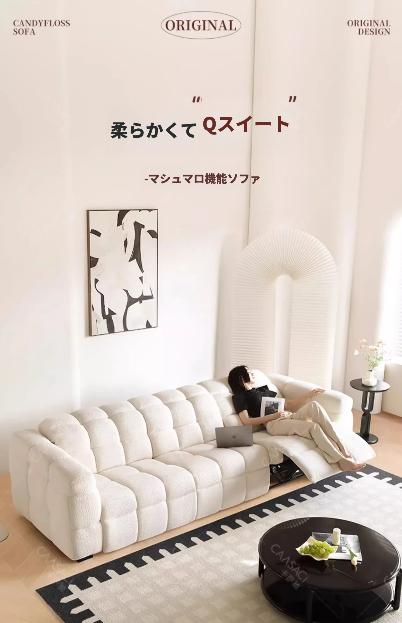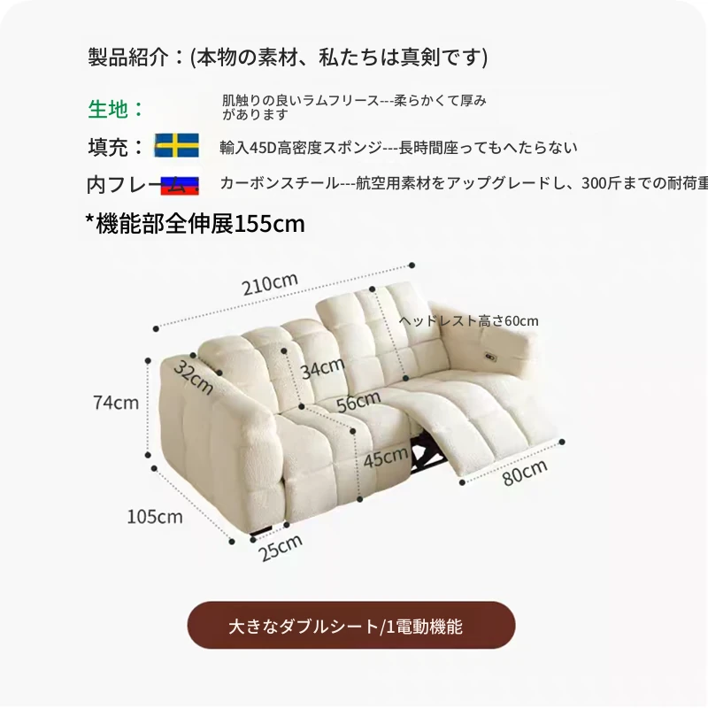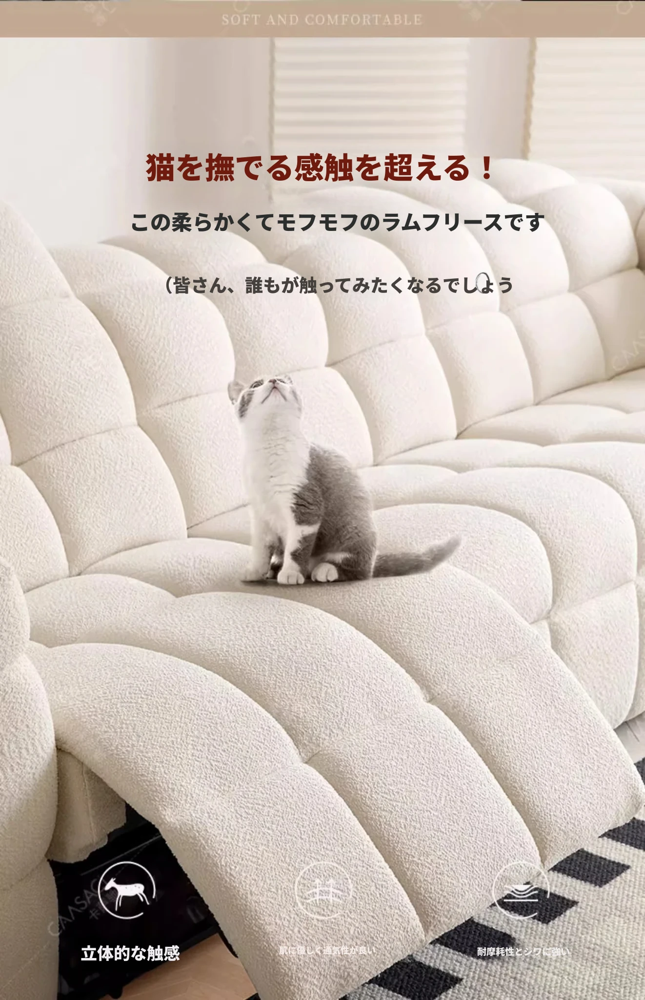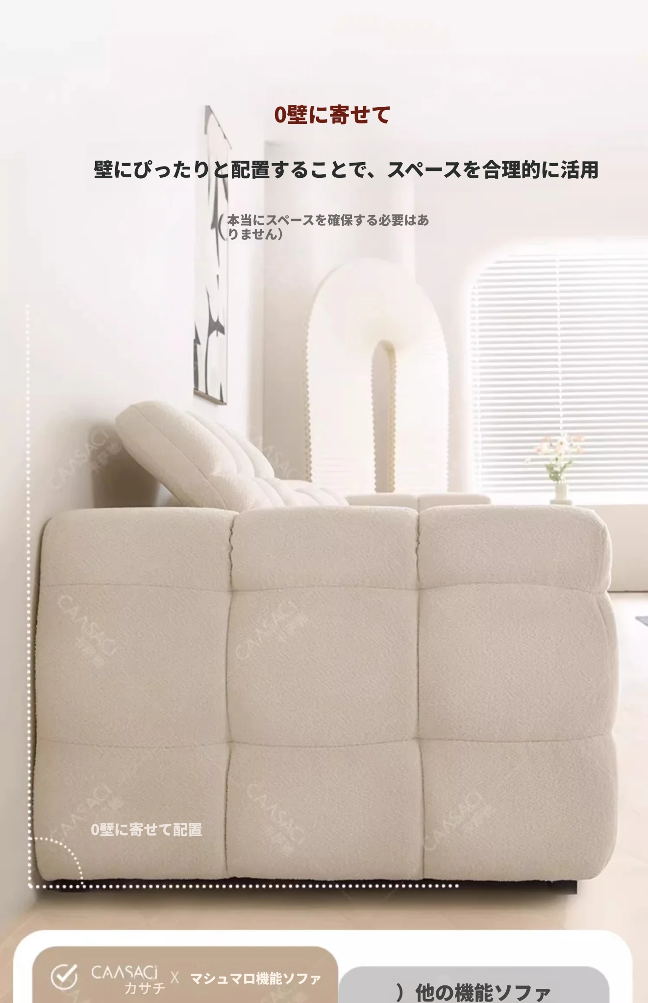 壁に寄せない羊毛フリース直線型電動ソファ - 多機能でレトロなフレンチスタイル、人気のふわふわマシュマロソファ!快適さとデザインを兼ね備えたあなたのリビングにぴったり!