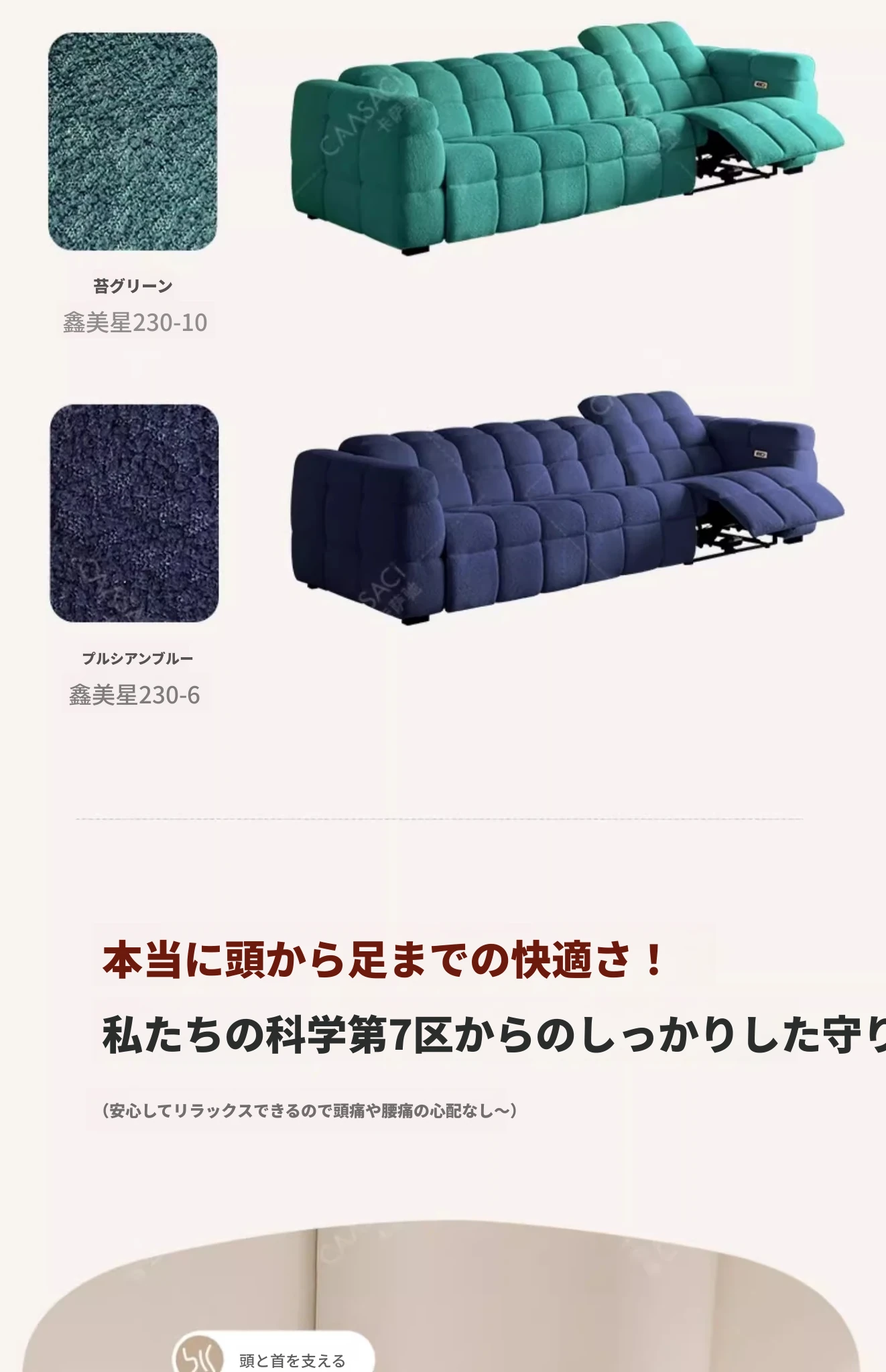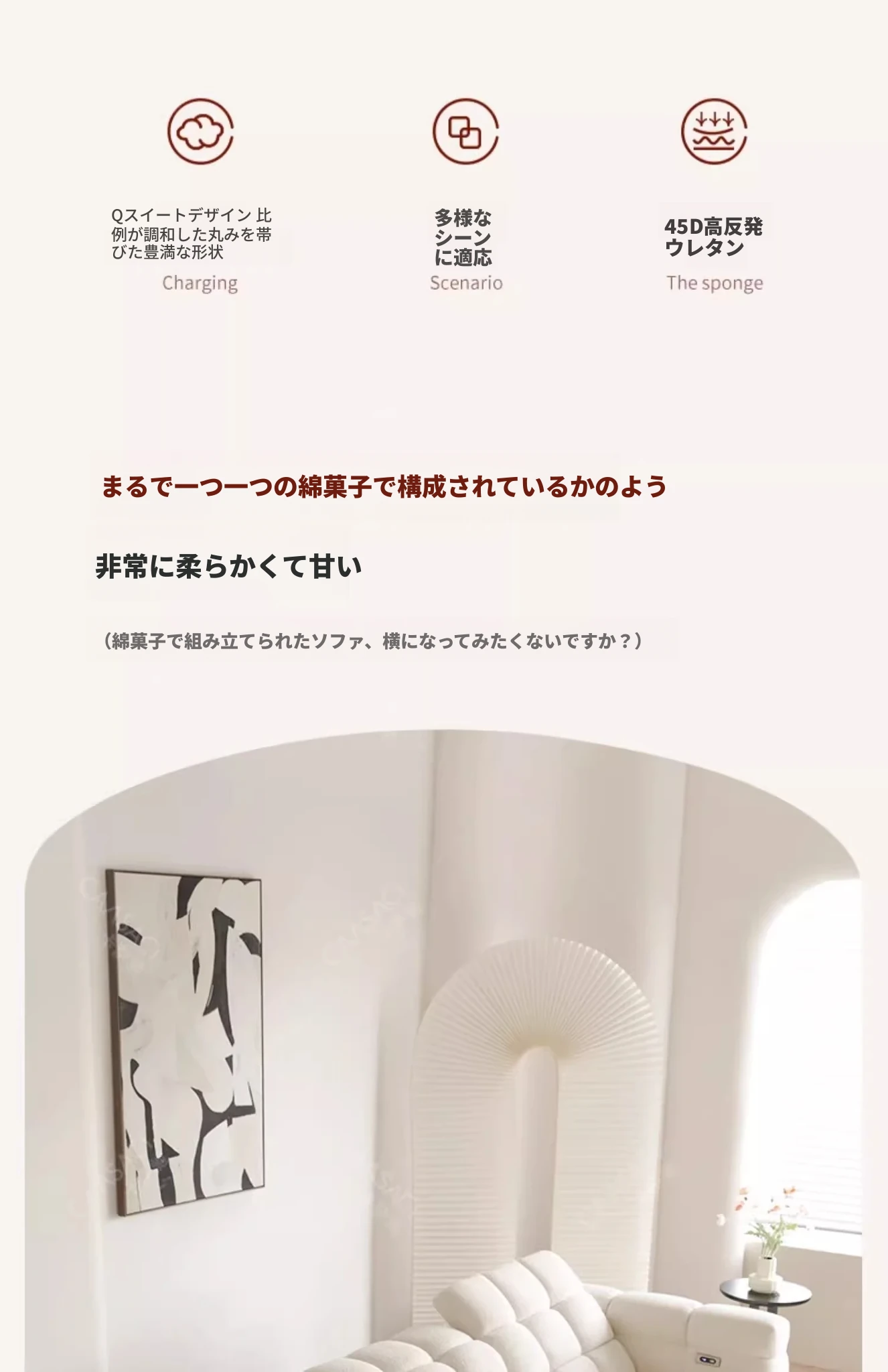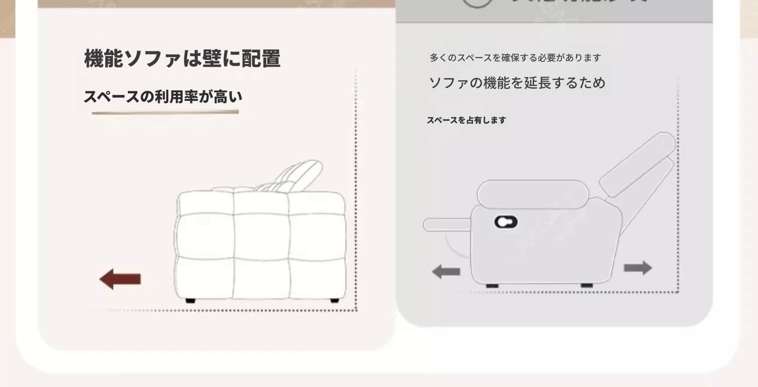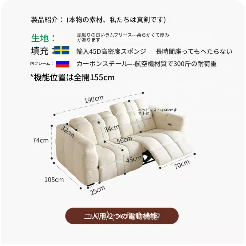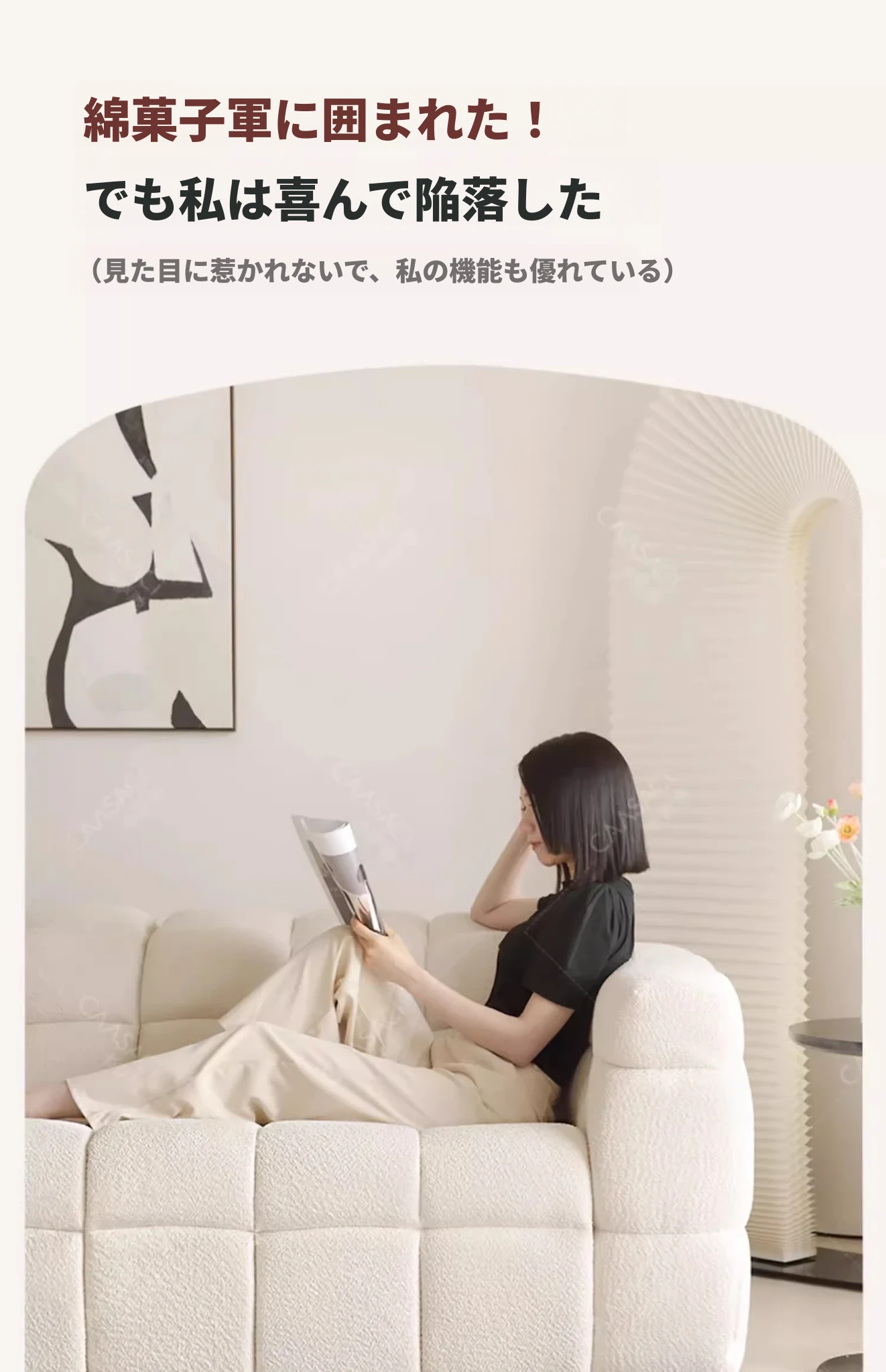 壁に寄せない羊毛フリース直線型電動ソファ - 多機能でレトロなフレンチスタイル、人気のふわふわマシュマロソファ!快適さとデザインを兼ね備えたあなたのリビングにぴったり!