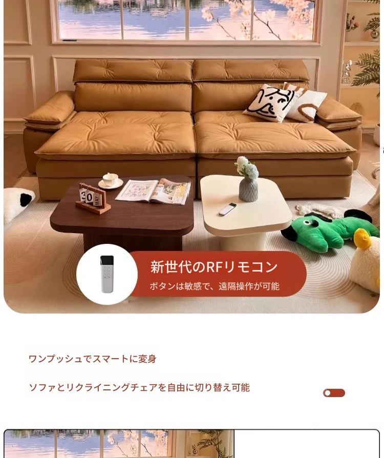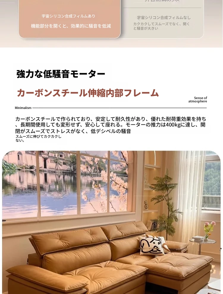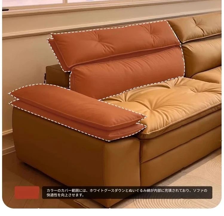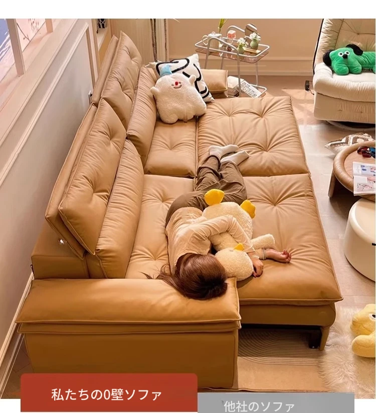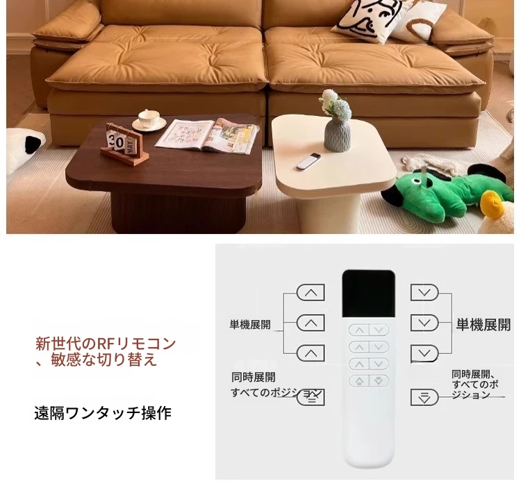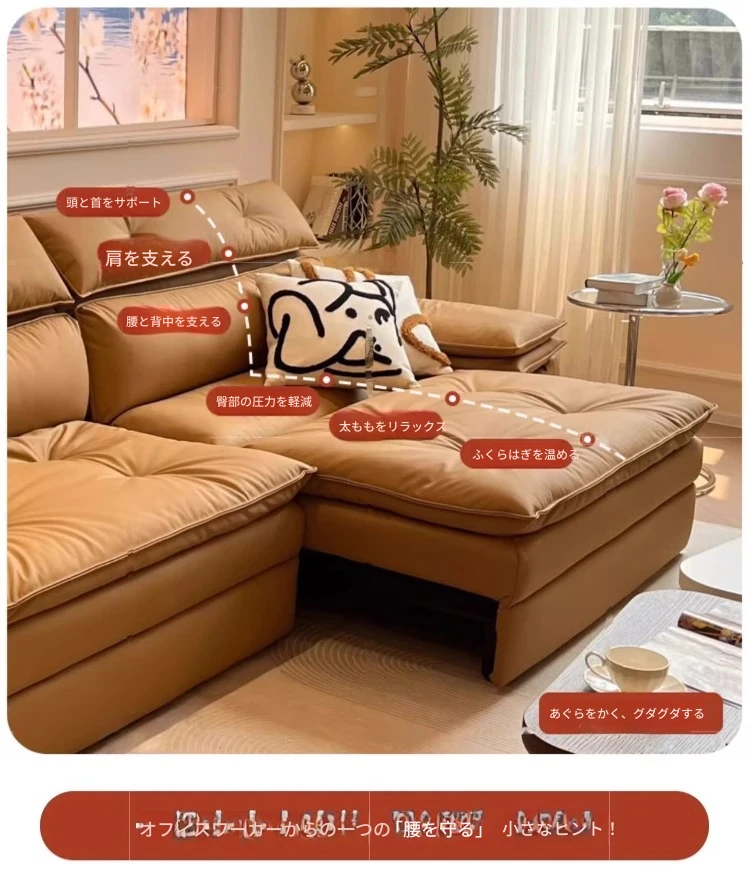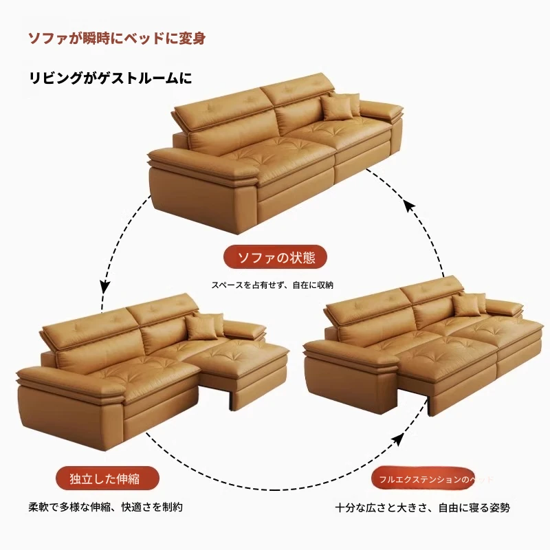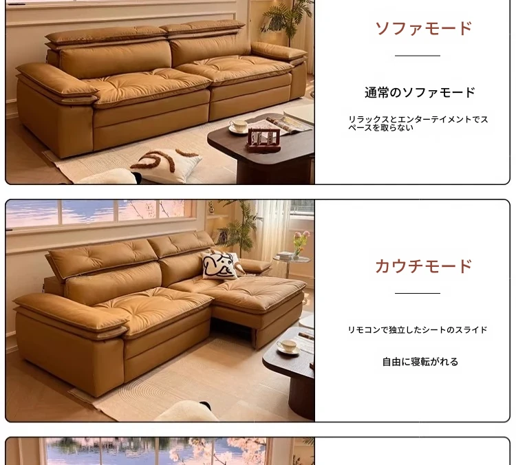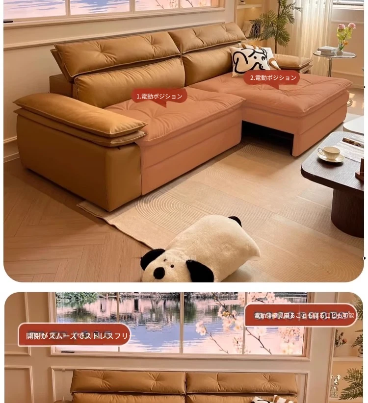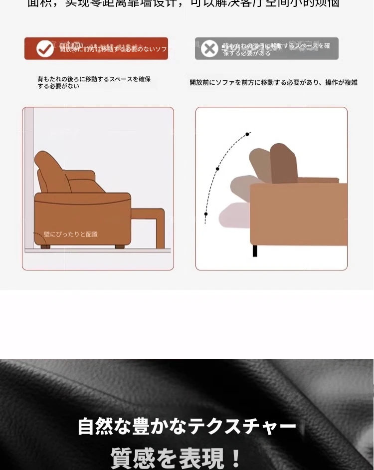 壁に寄りかからない!電動レザー機能付きソファベッド - 調整可能なクリーム風デザイン、小スペースにぴったりなリビング用ソファ。快適さとスタイルを両立!
