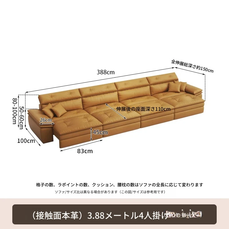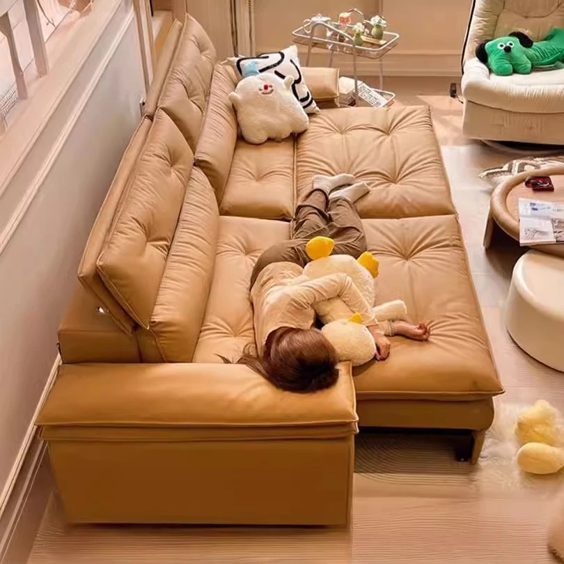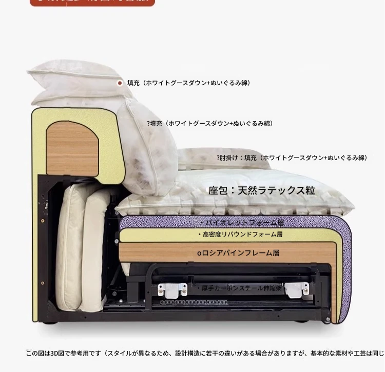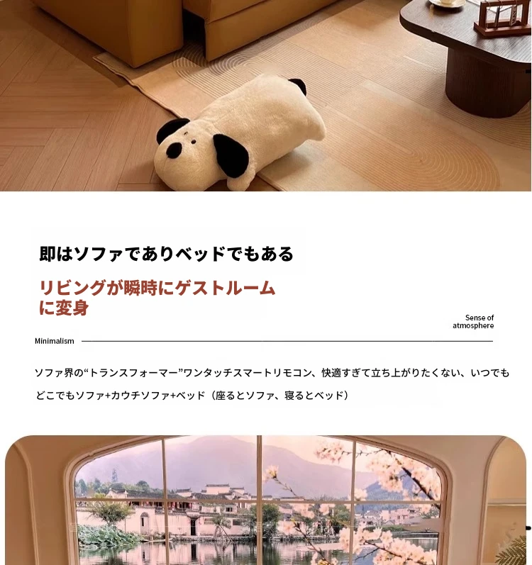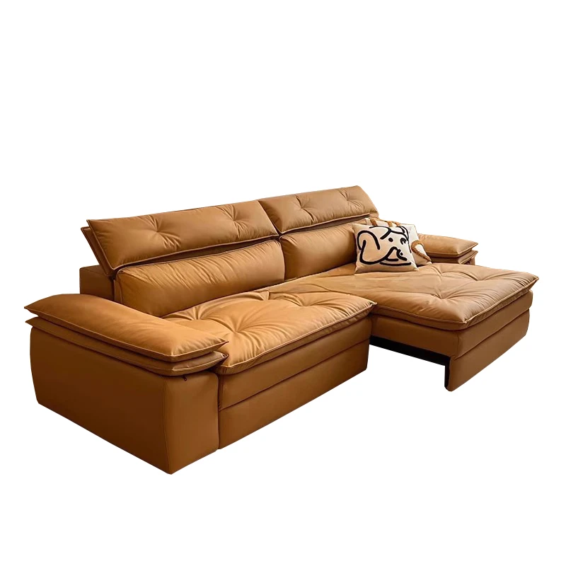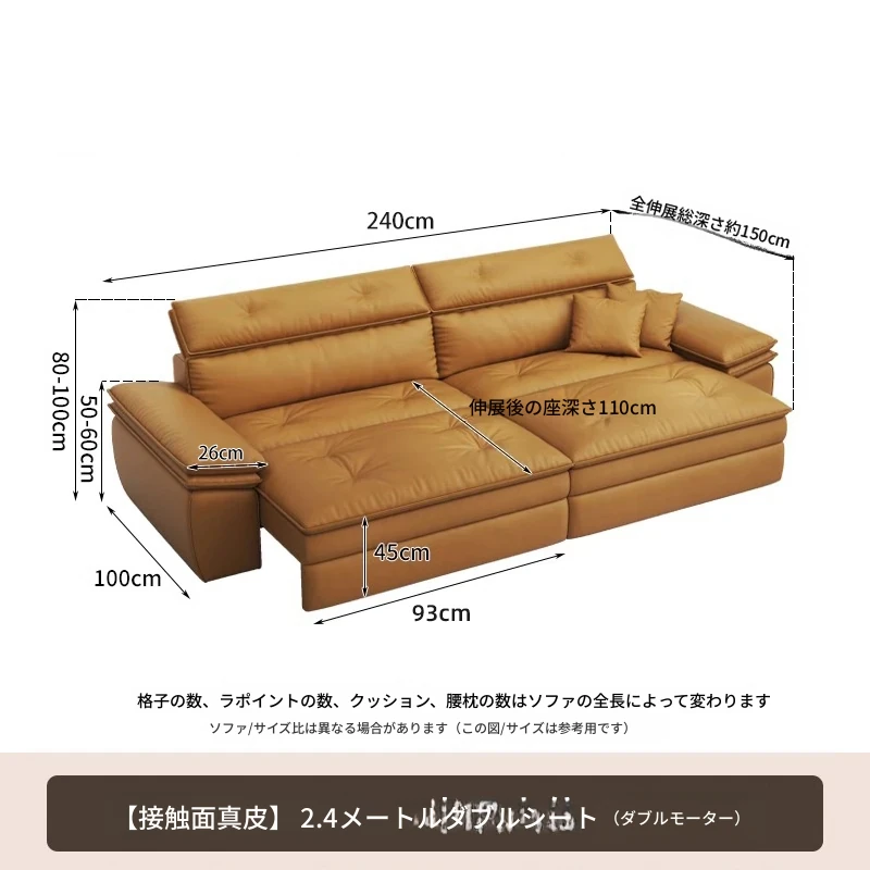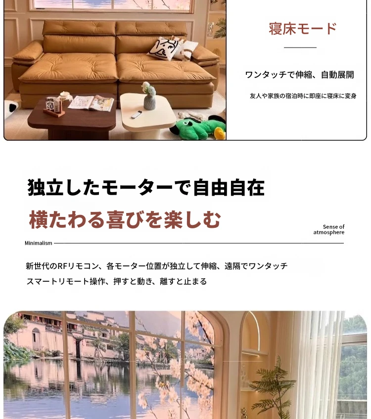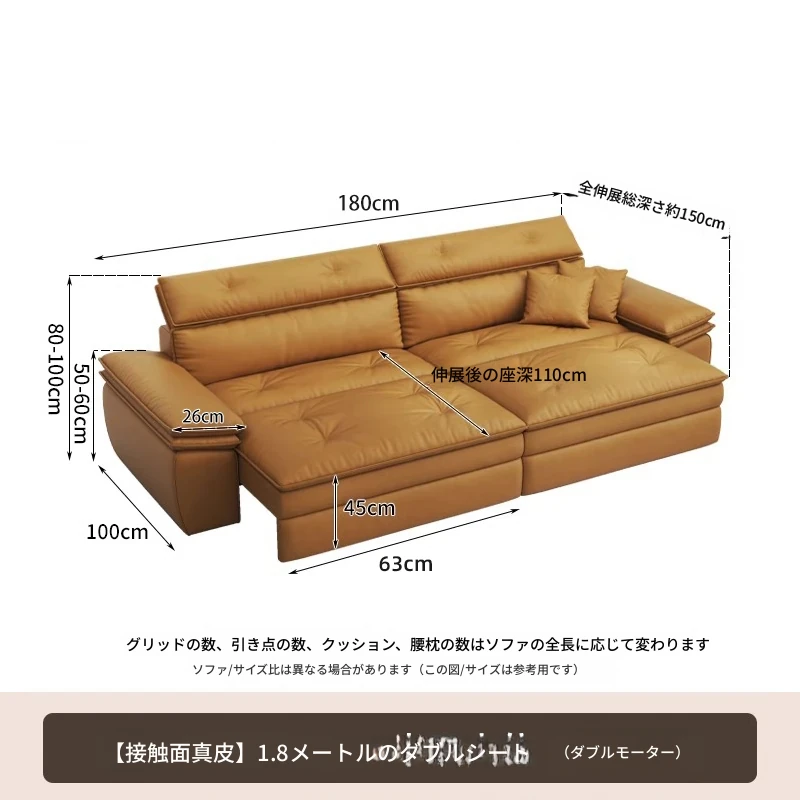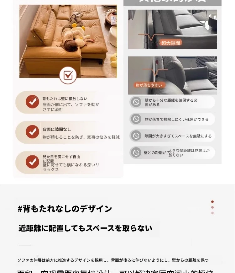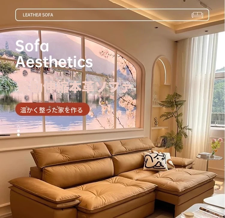壁に寄りかからない!電動レザー機能付きソファベッド - 調整可能なクリーム風デザイン、小スペースにぴったりなリビング用ソファ。快適さとスタイルを両立!