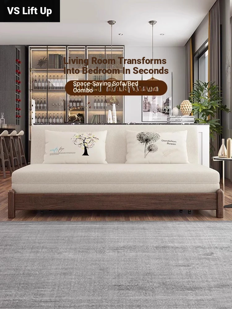 Yisheng Solid Wood Folding Sofa Bed - 1.5m Multifunctional Dual-Use for Living Room, Modern Minimalist Design, Perfect for Home Use, Stylish and Space-Saving Solution for Your Guest Needs!