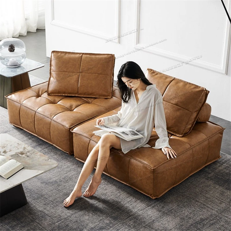 Nordic Genuine Leather Sofa - Piemonte Minimalist Industrial Style Tofu Cube Modular Sofa for Creative Living Room, Perfect for Modern Interiors